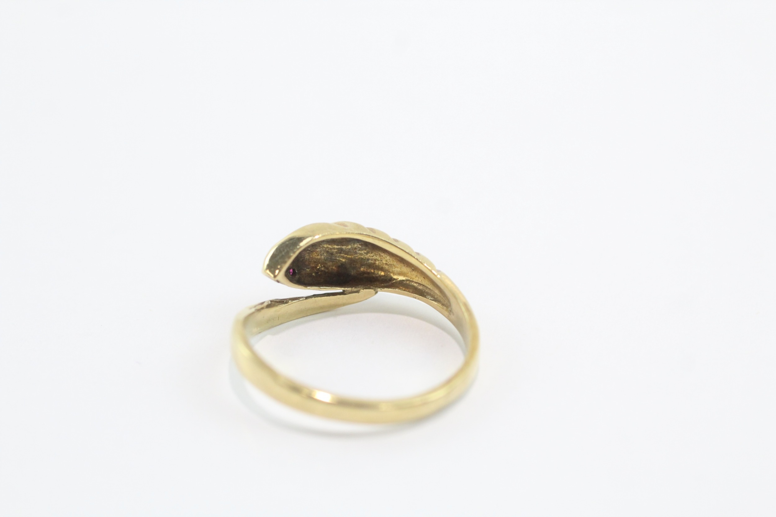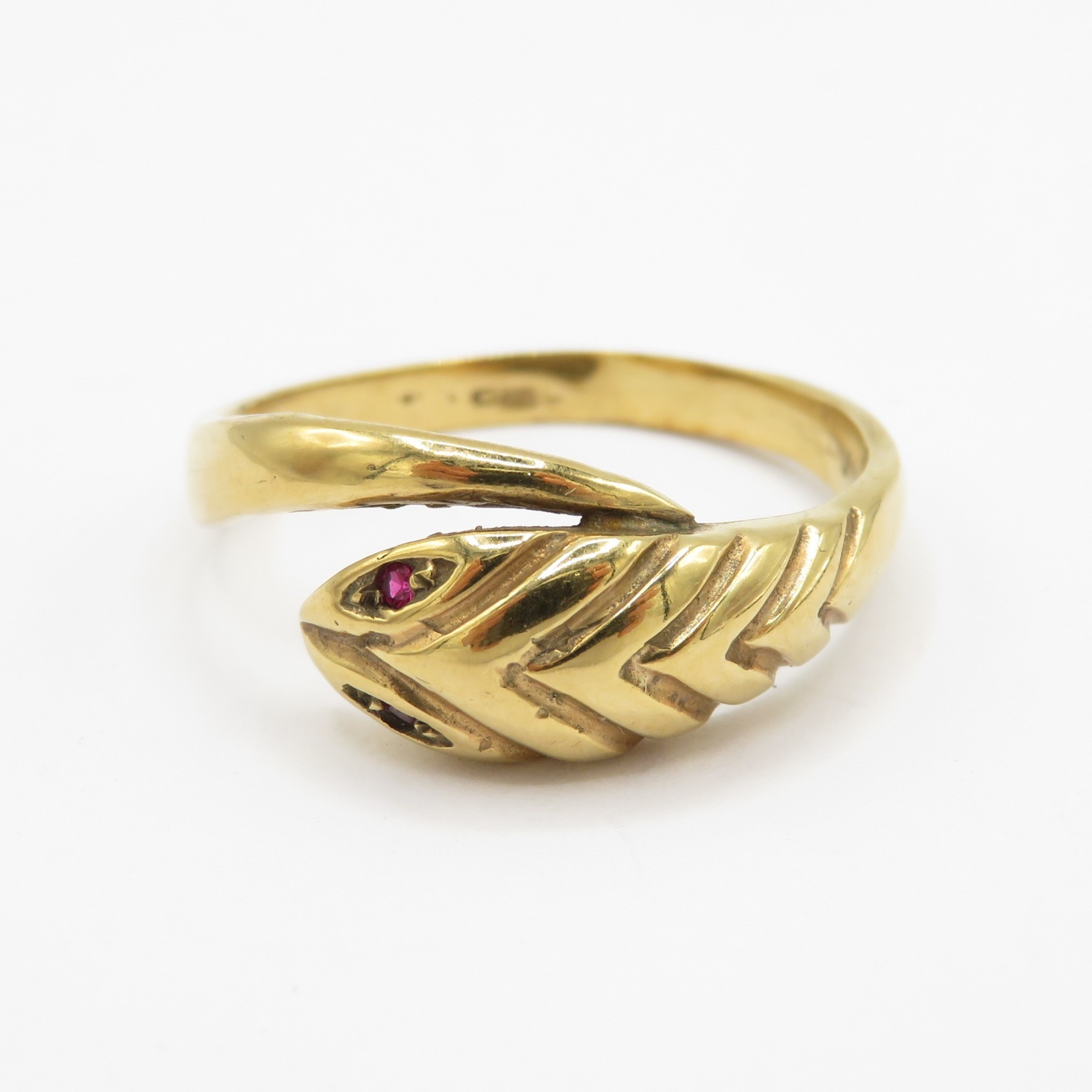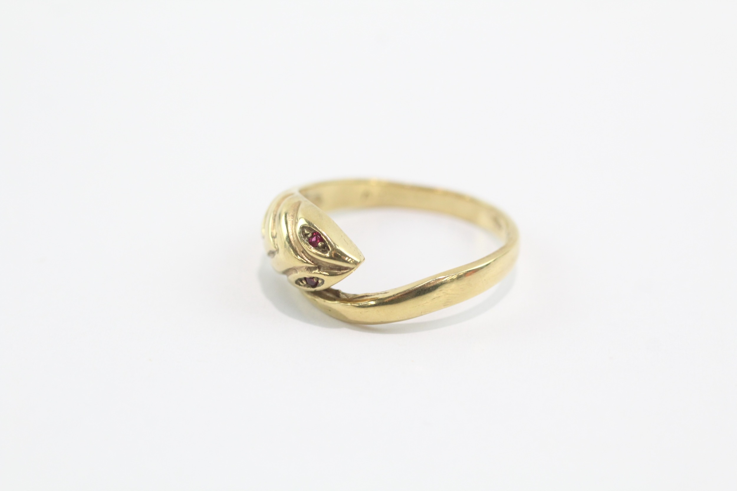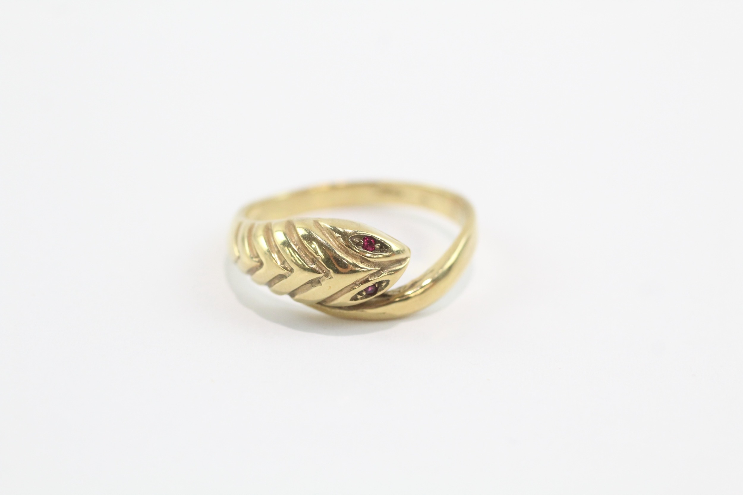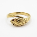 9ct gold ruby eyes snake ring (3.8g) Size S