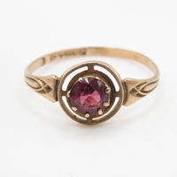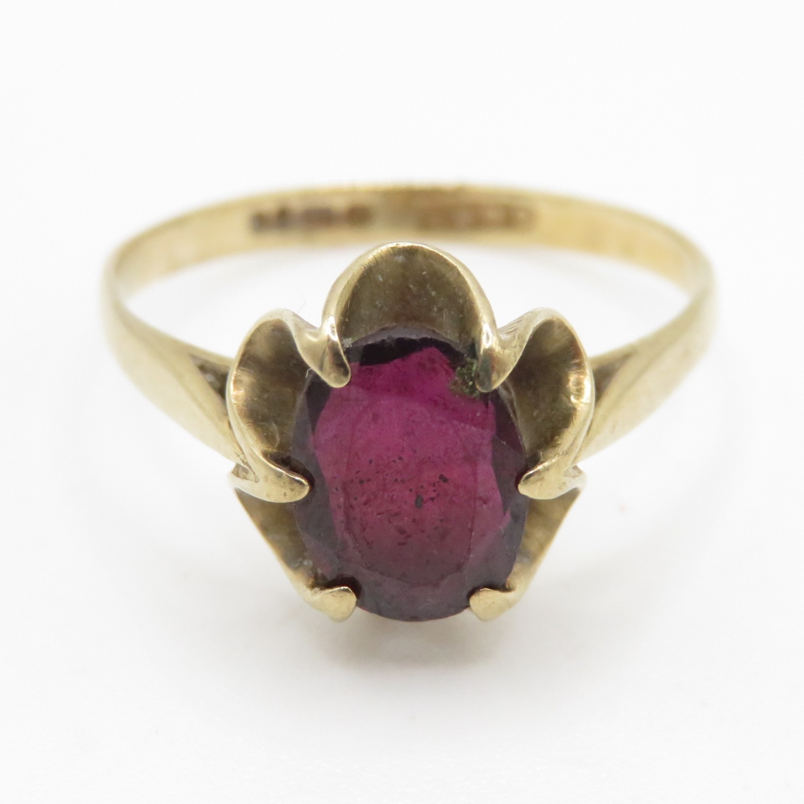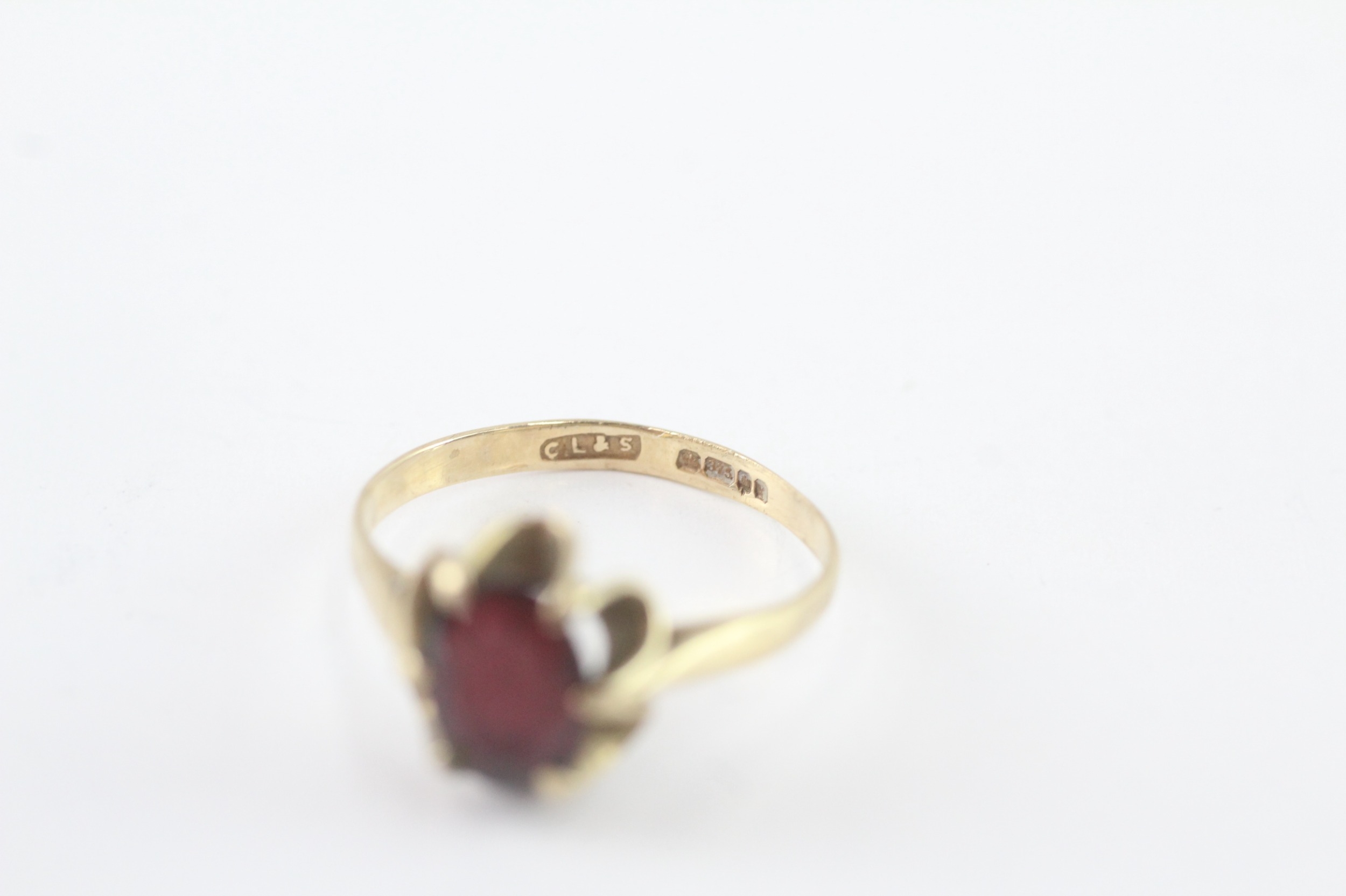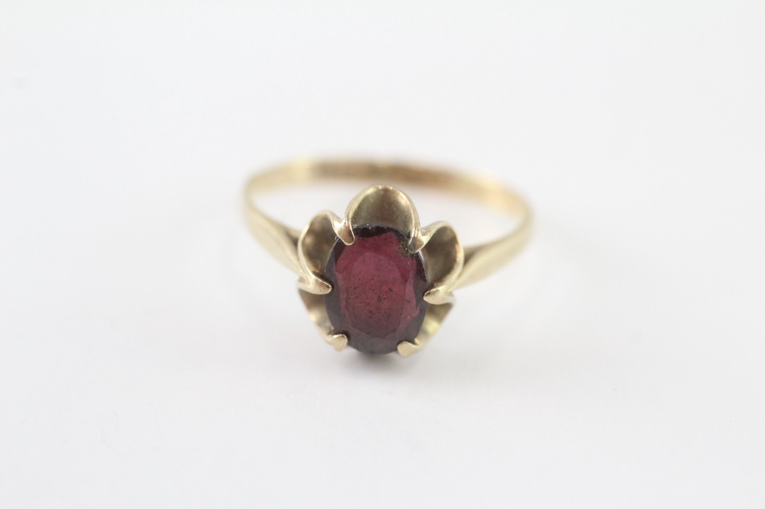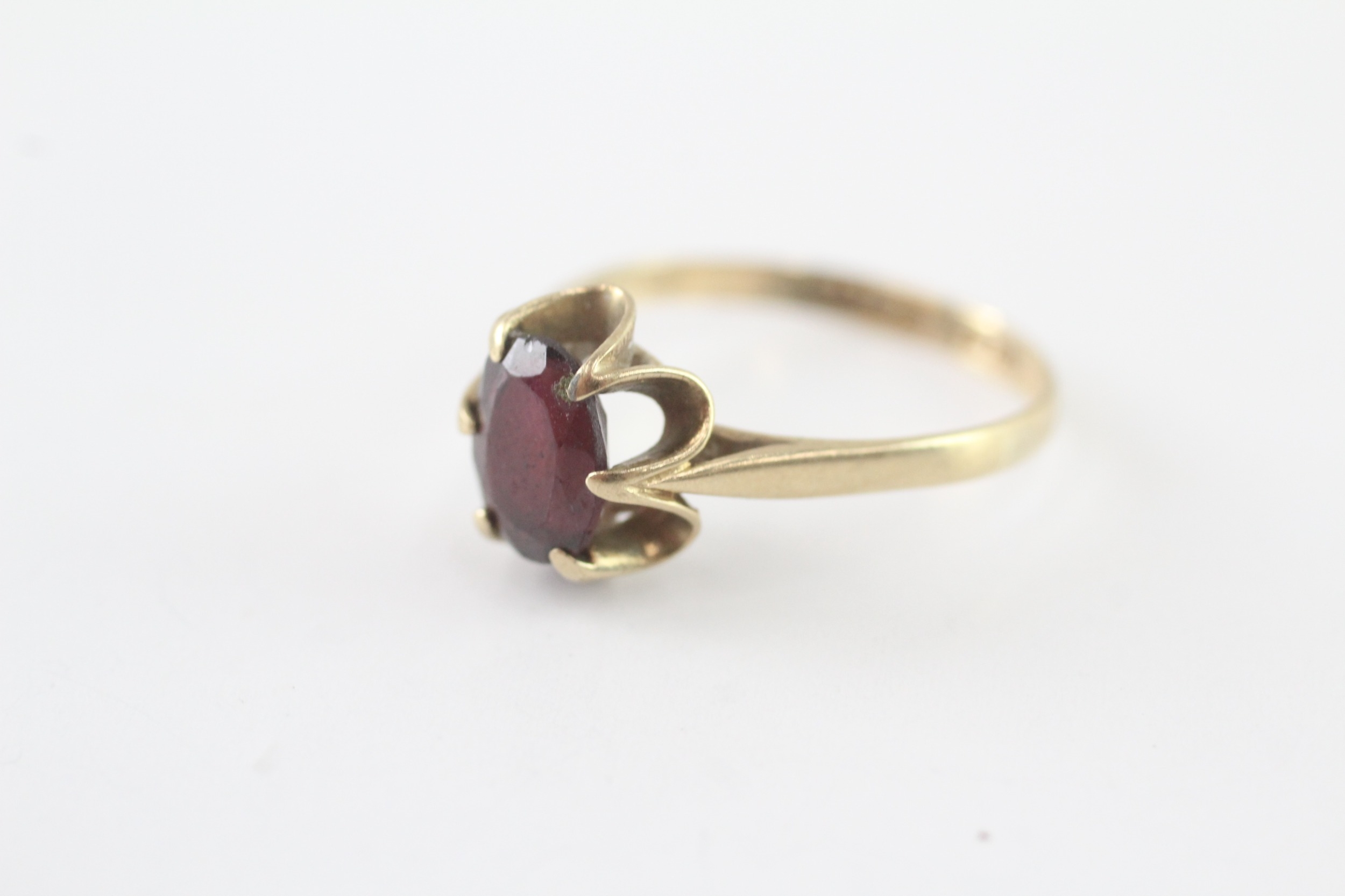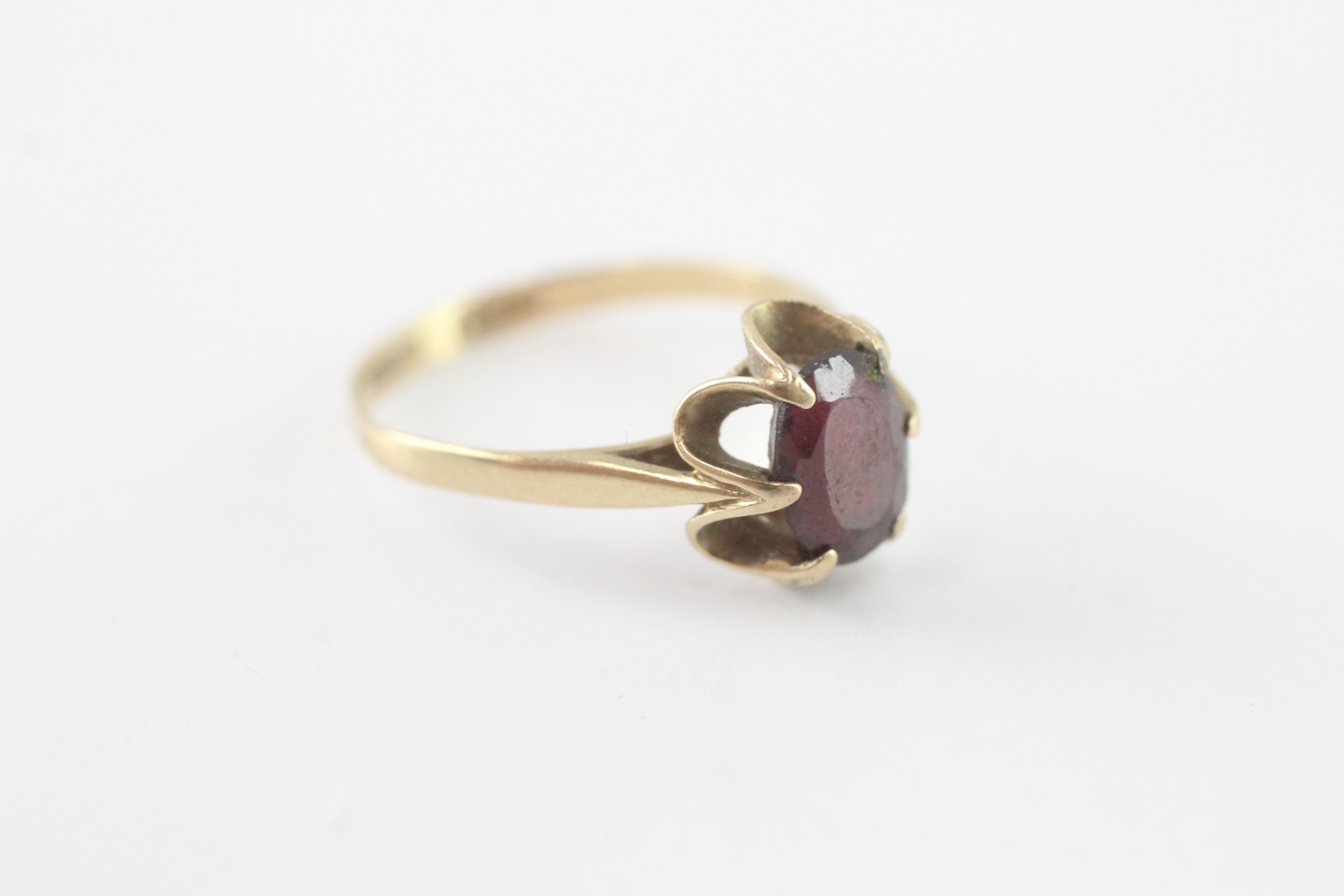 9ct gold garnet single stone ring (1.9g) Size O 1/2
