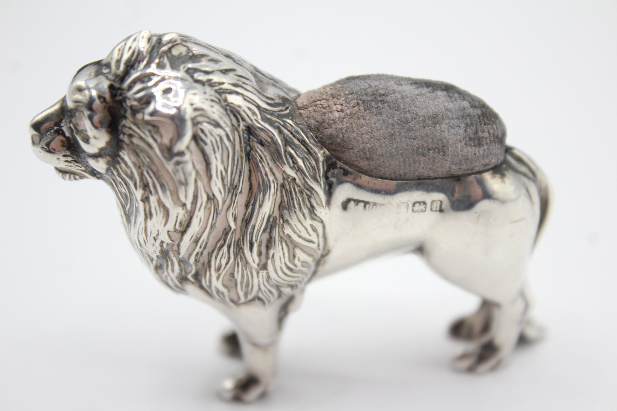 Edwardian .925 Sterling Silver Novelty Lion Form Pin Cushion, 30g