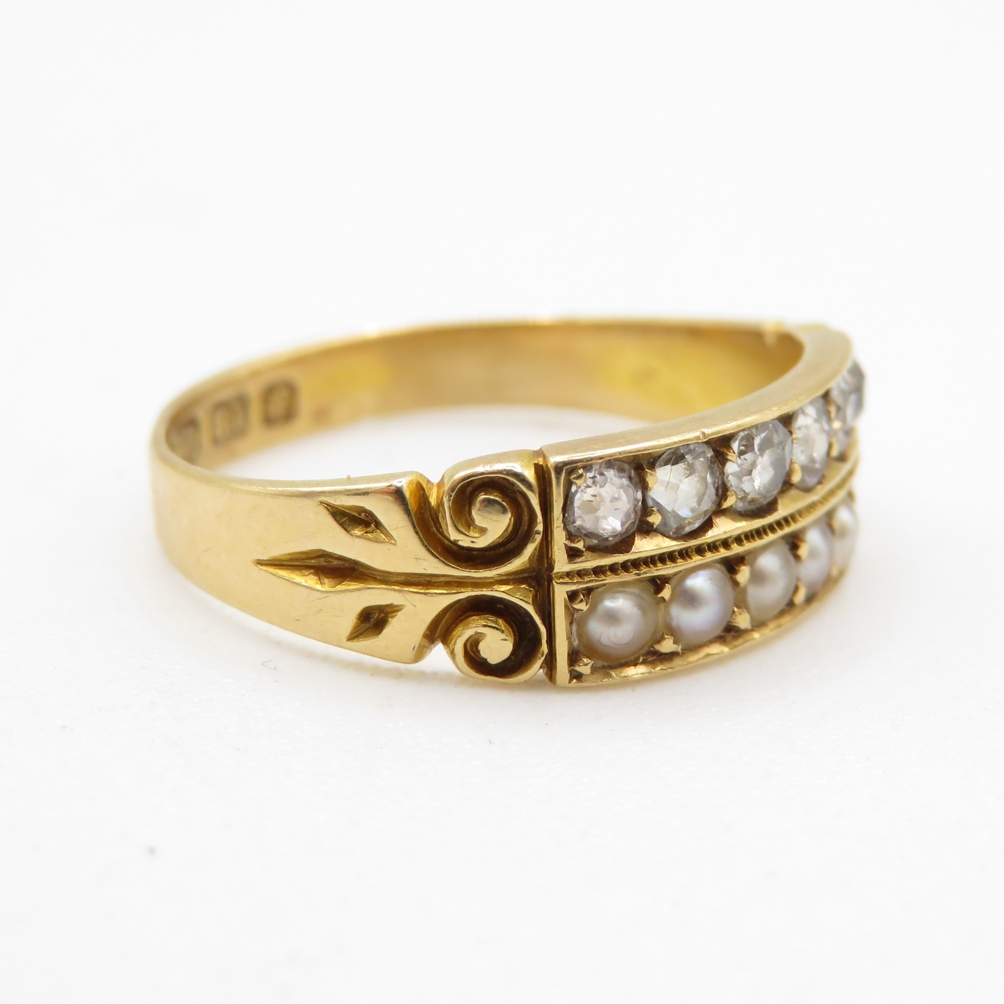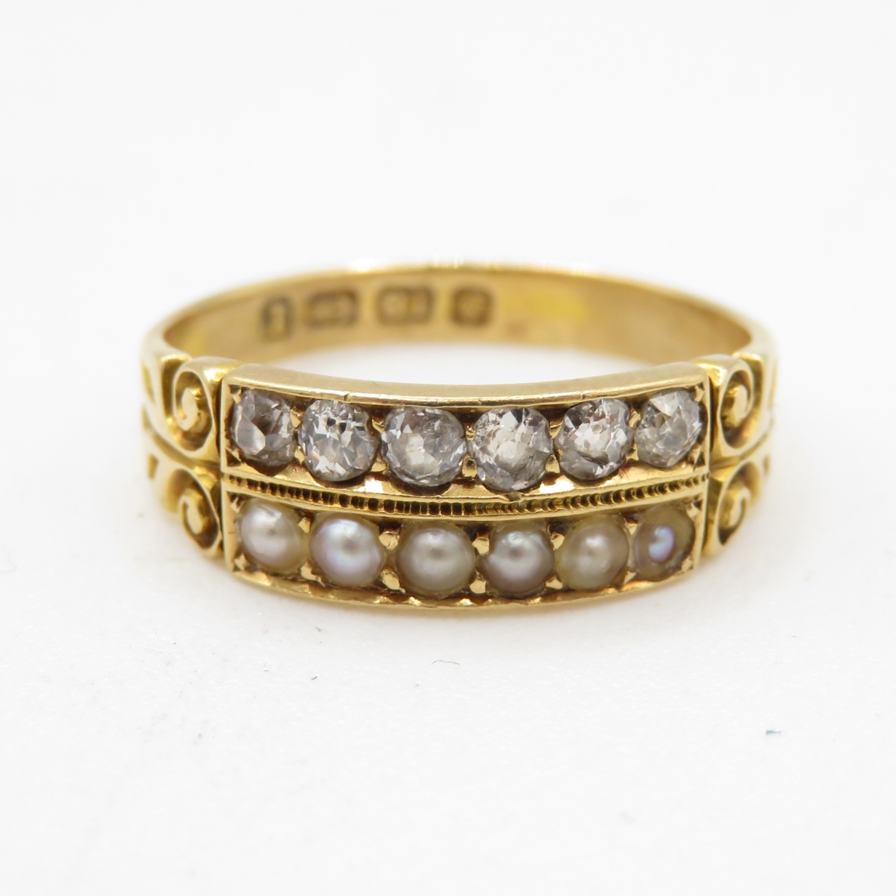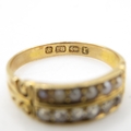 18ct gold antique old cut diamond & seed pearl two row ring (2.8g) Size M