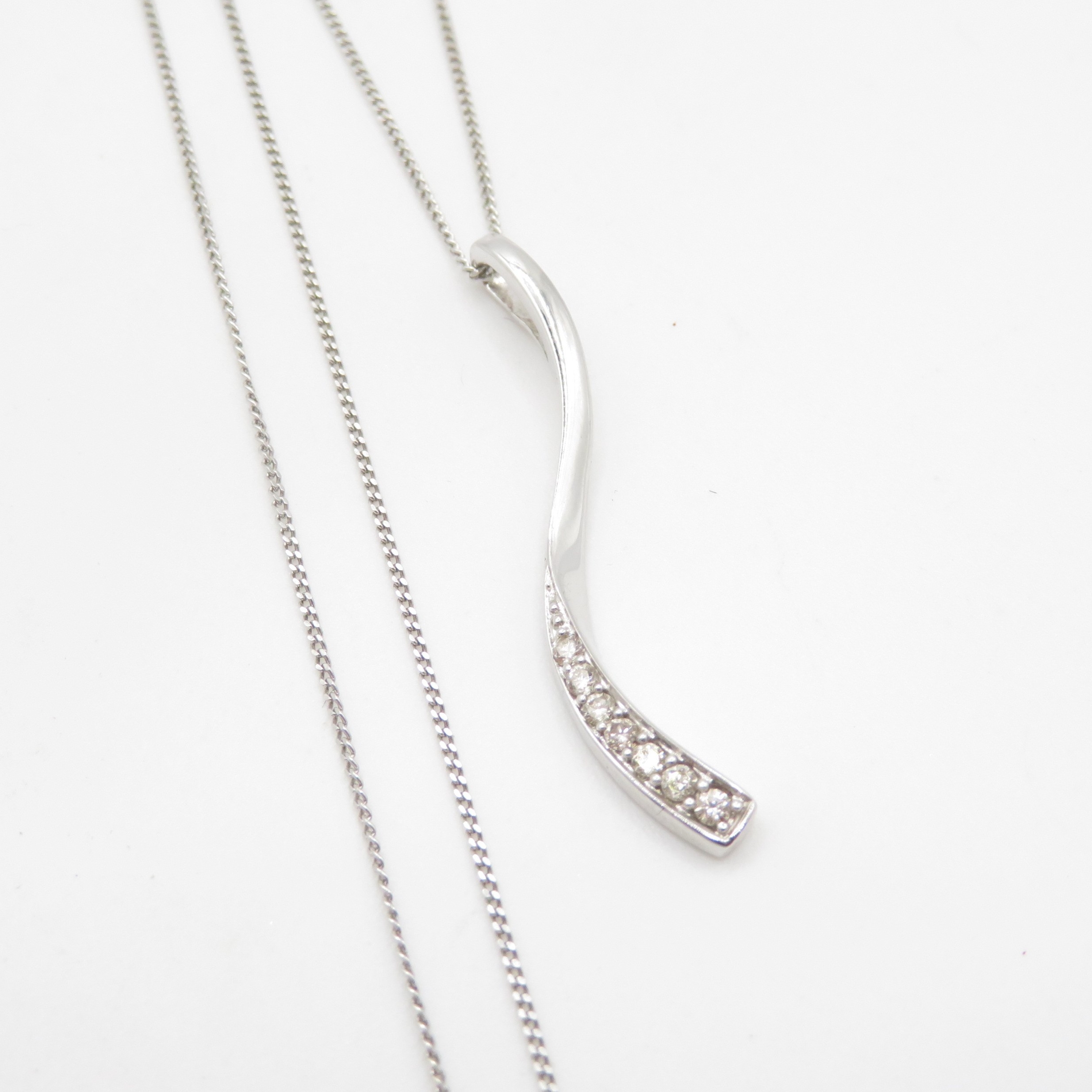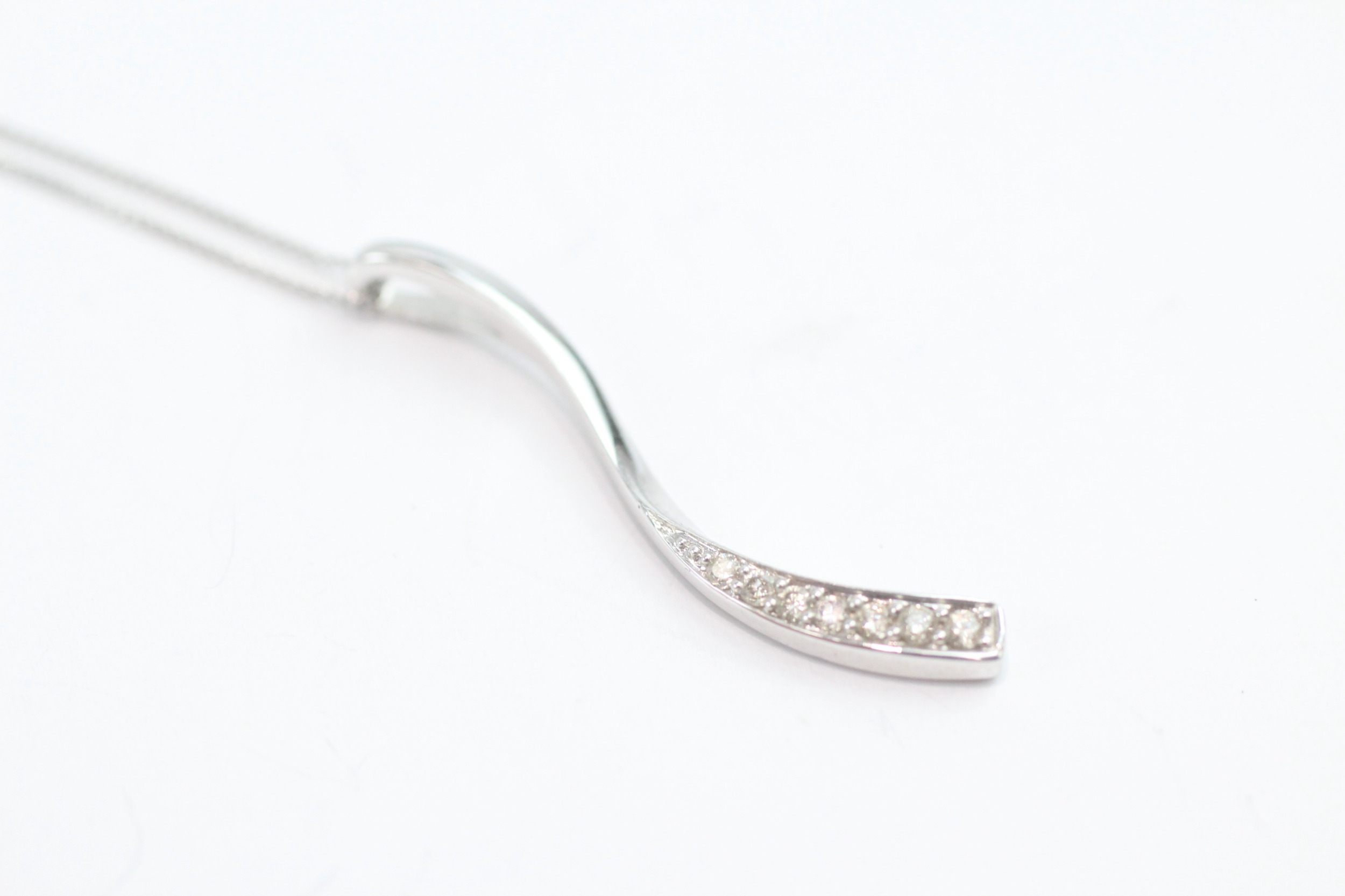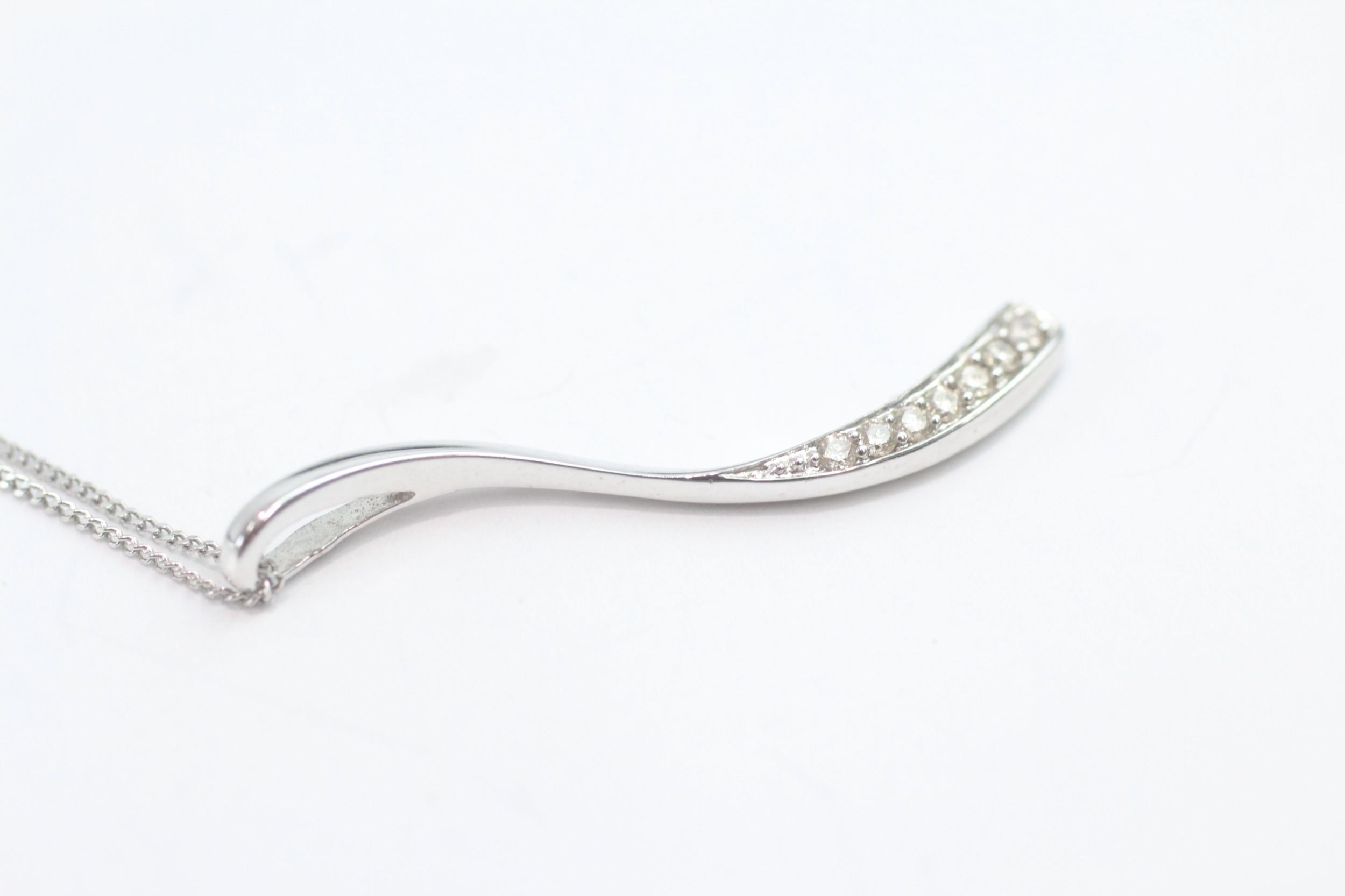 9ct white gold diamond set wave pendant necklace (1.6g)