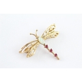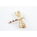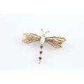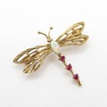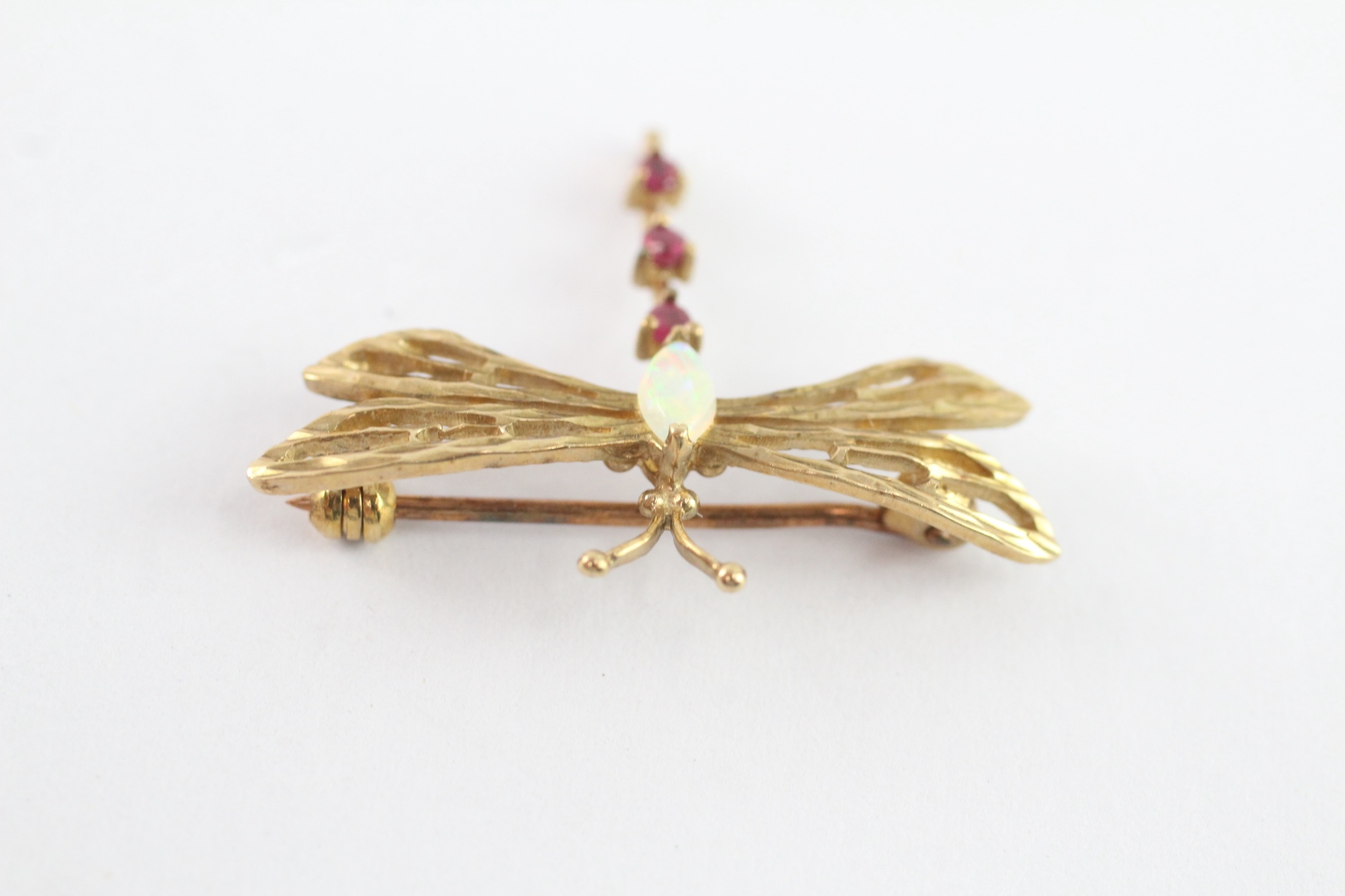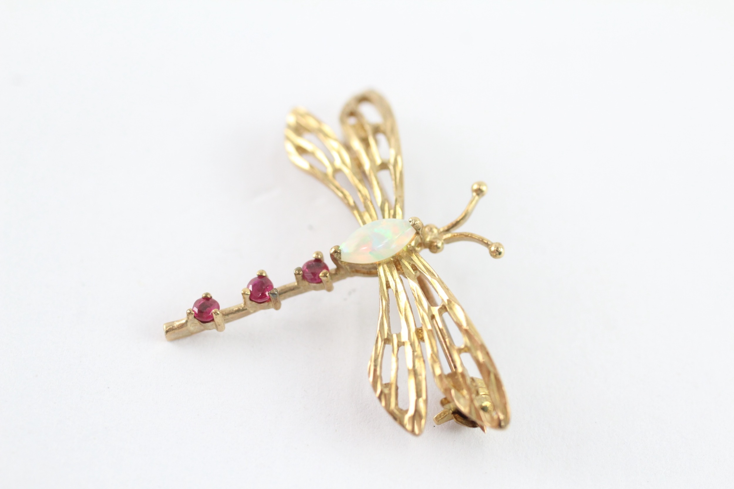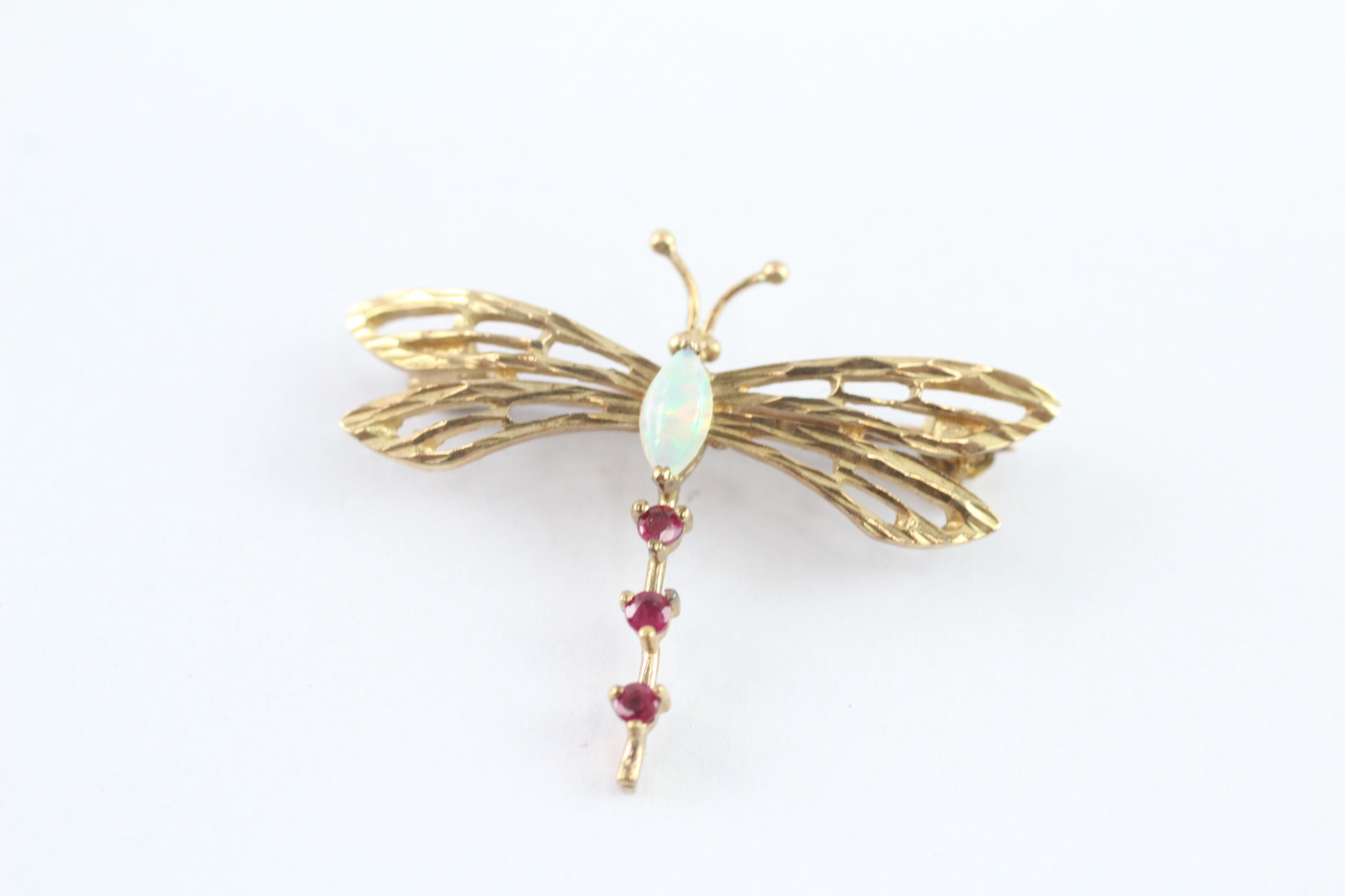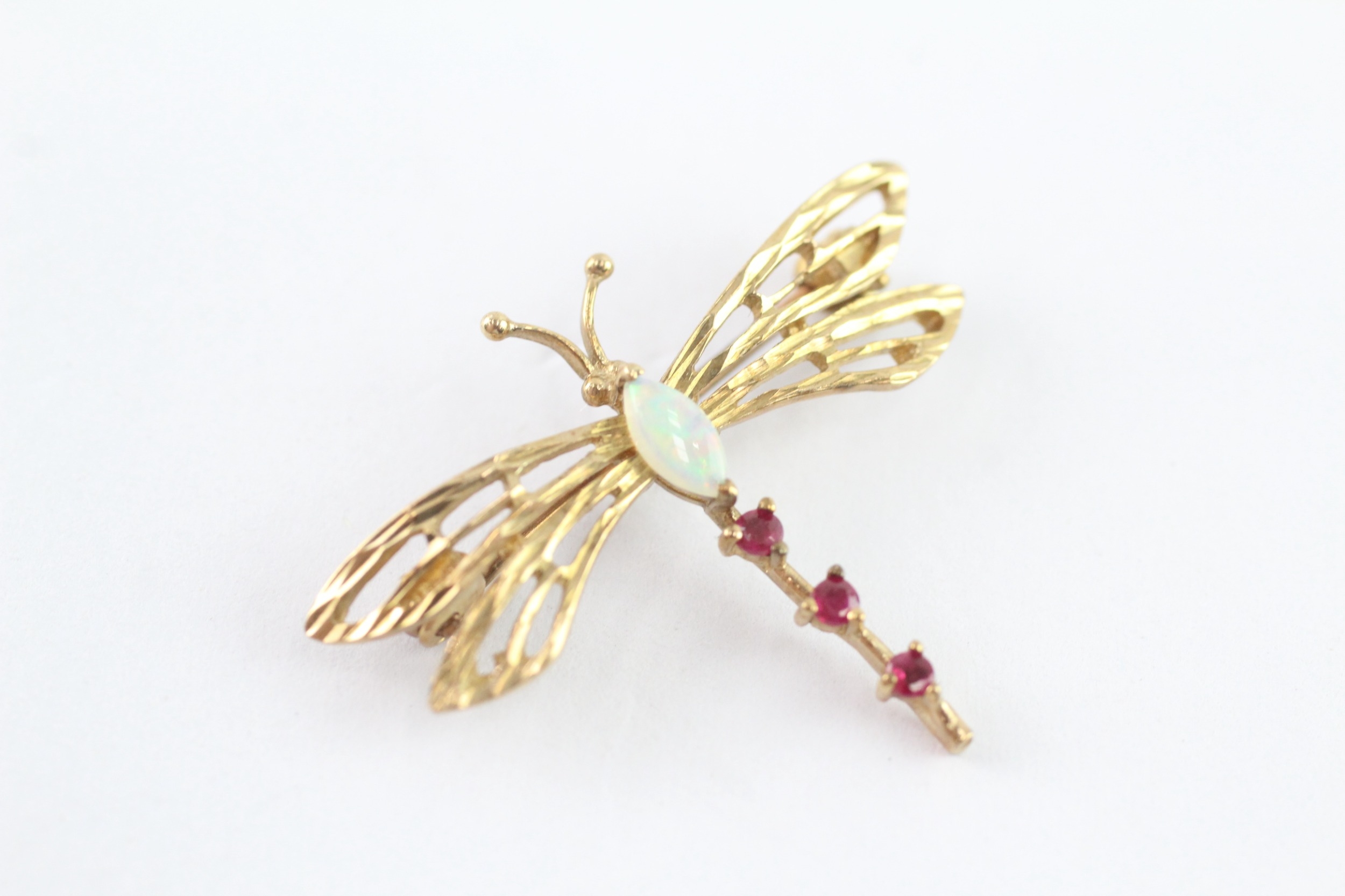 9ct gold vintage ruby and opal dragonfly brooch (2.1g)