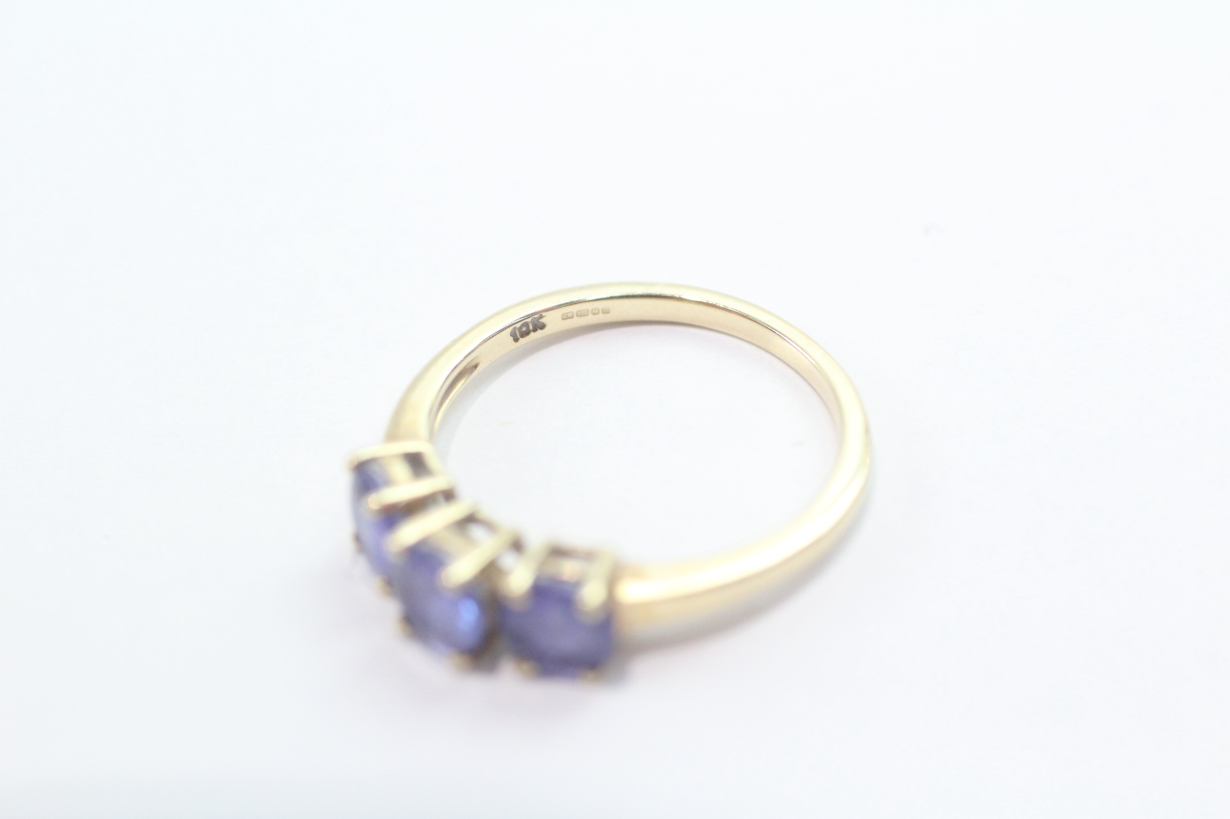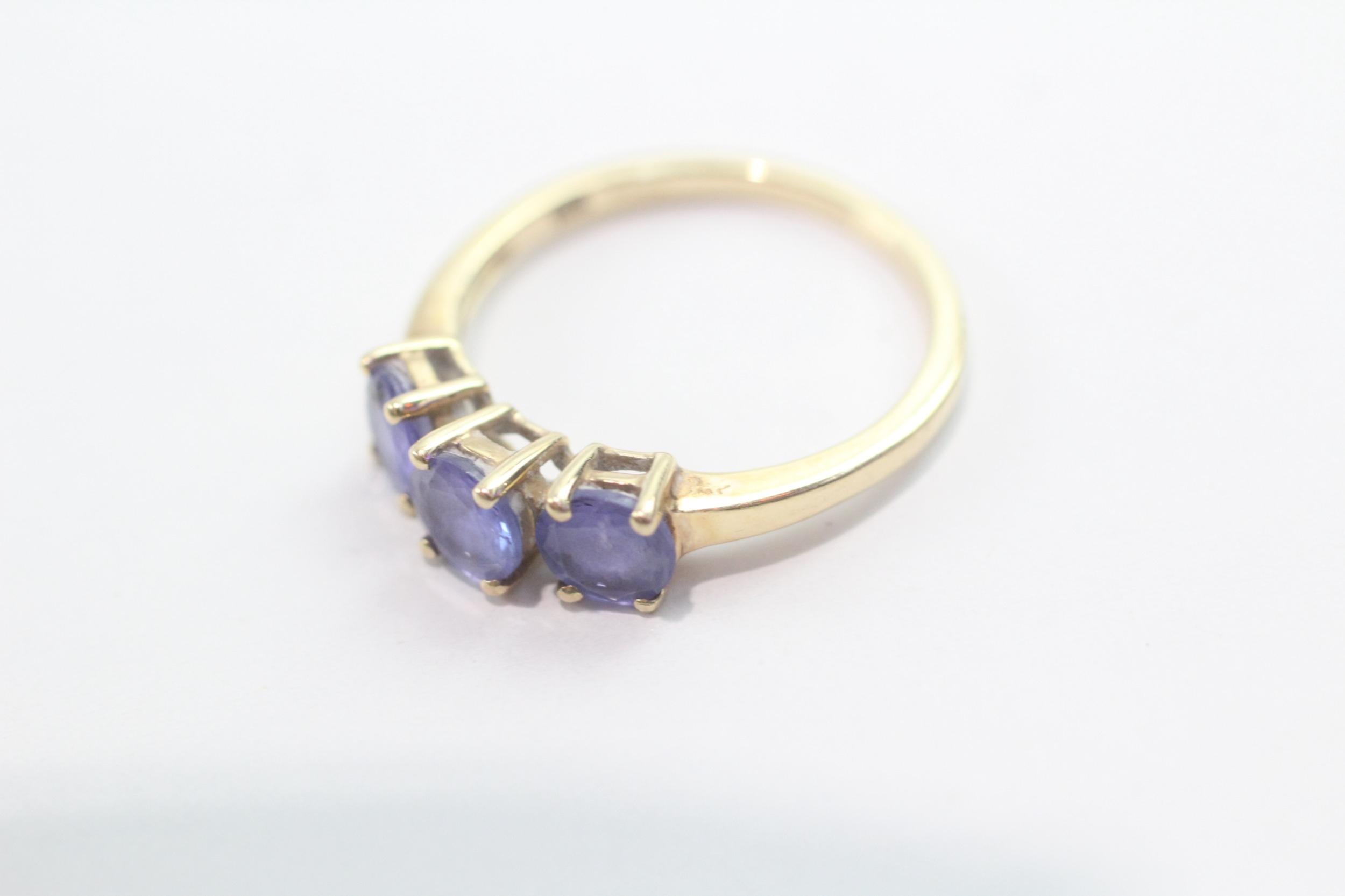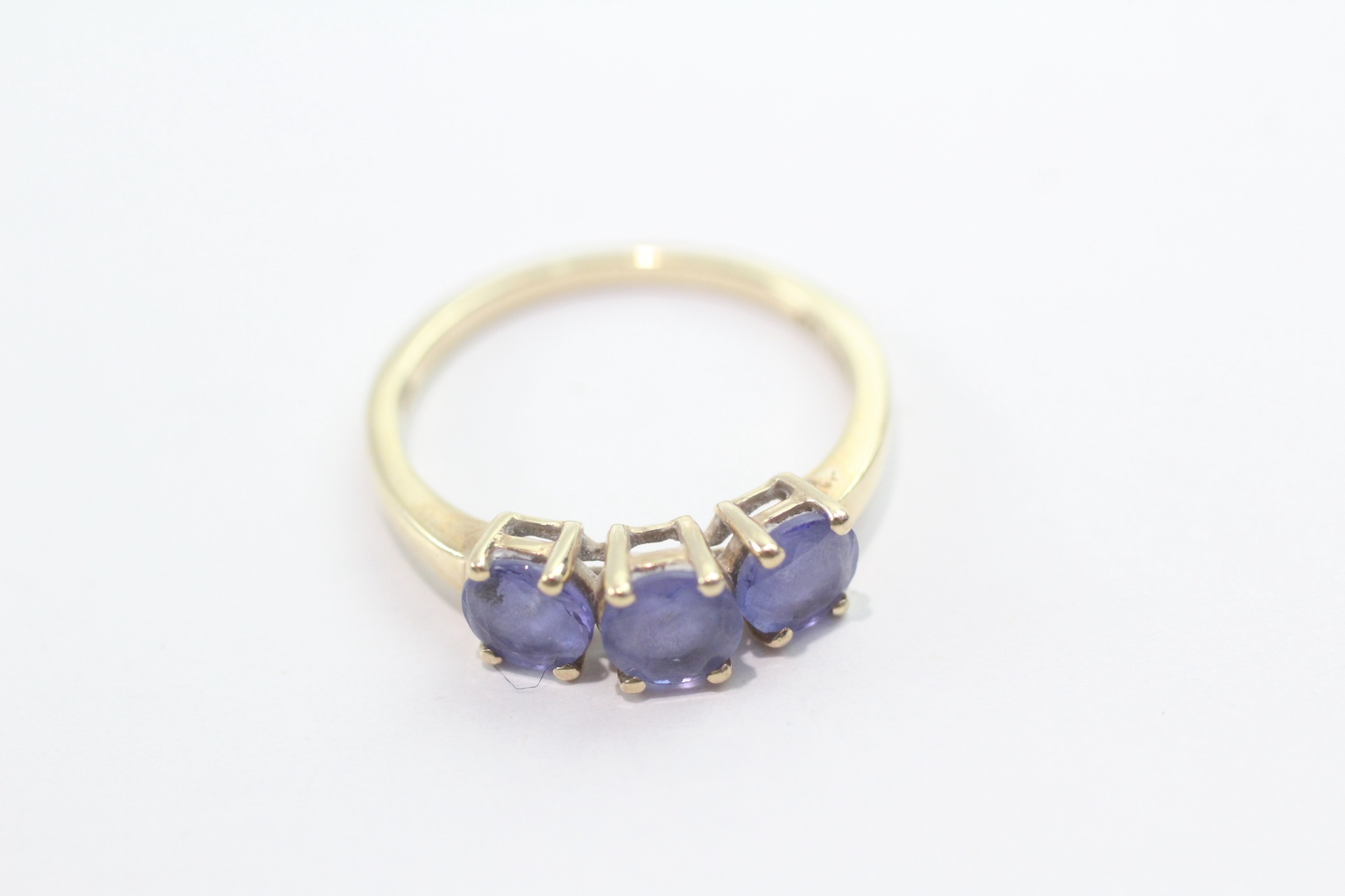 9ct gold tanzanite three-stone ring (1.9g) Size L 1/2