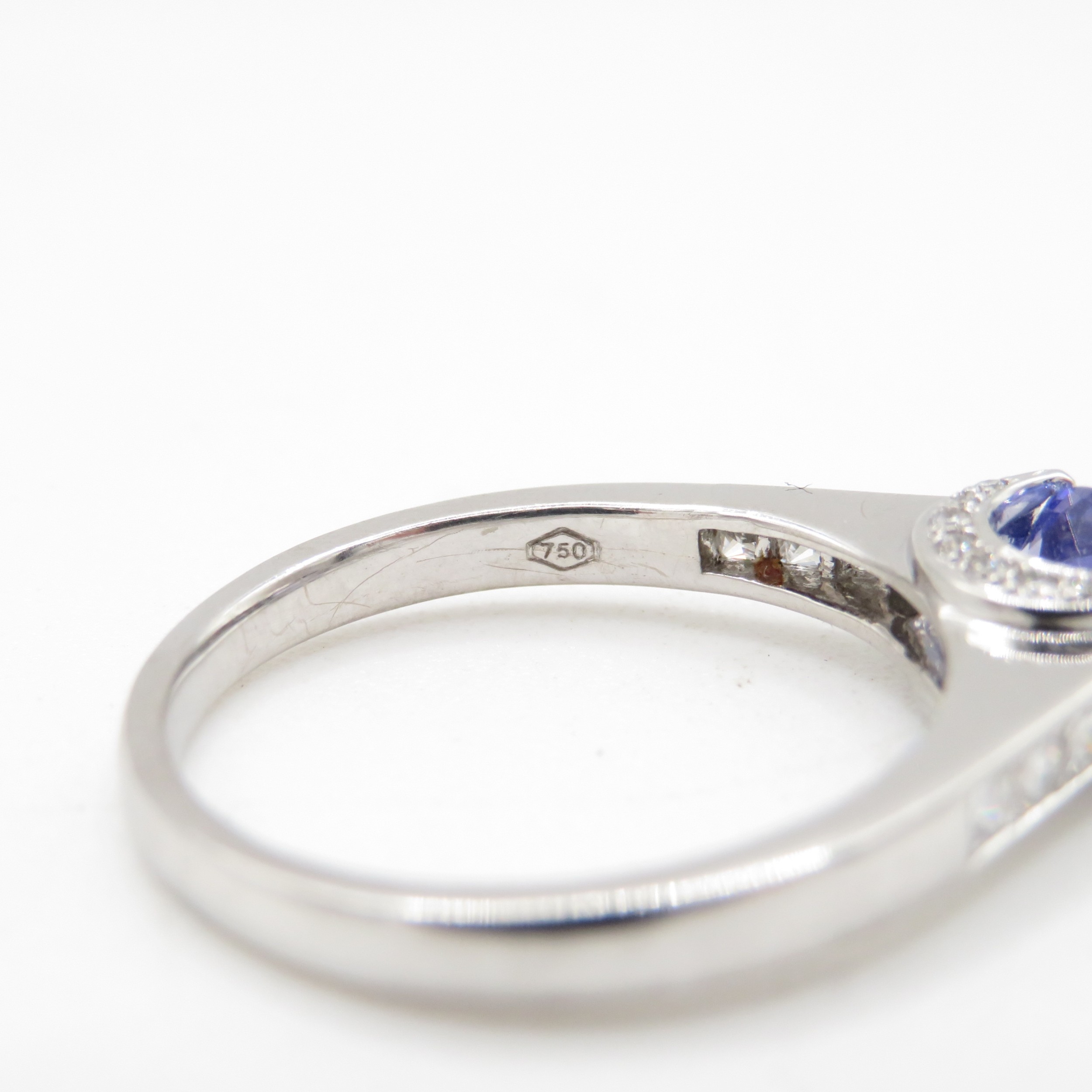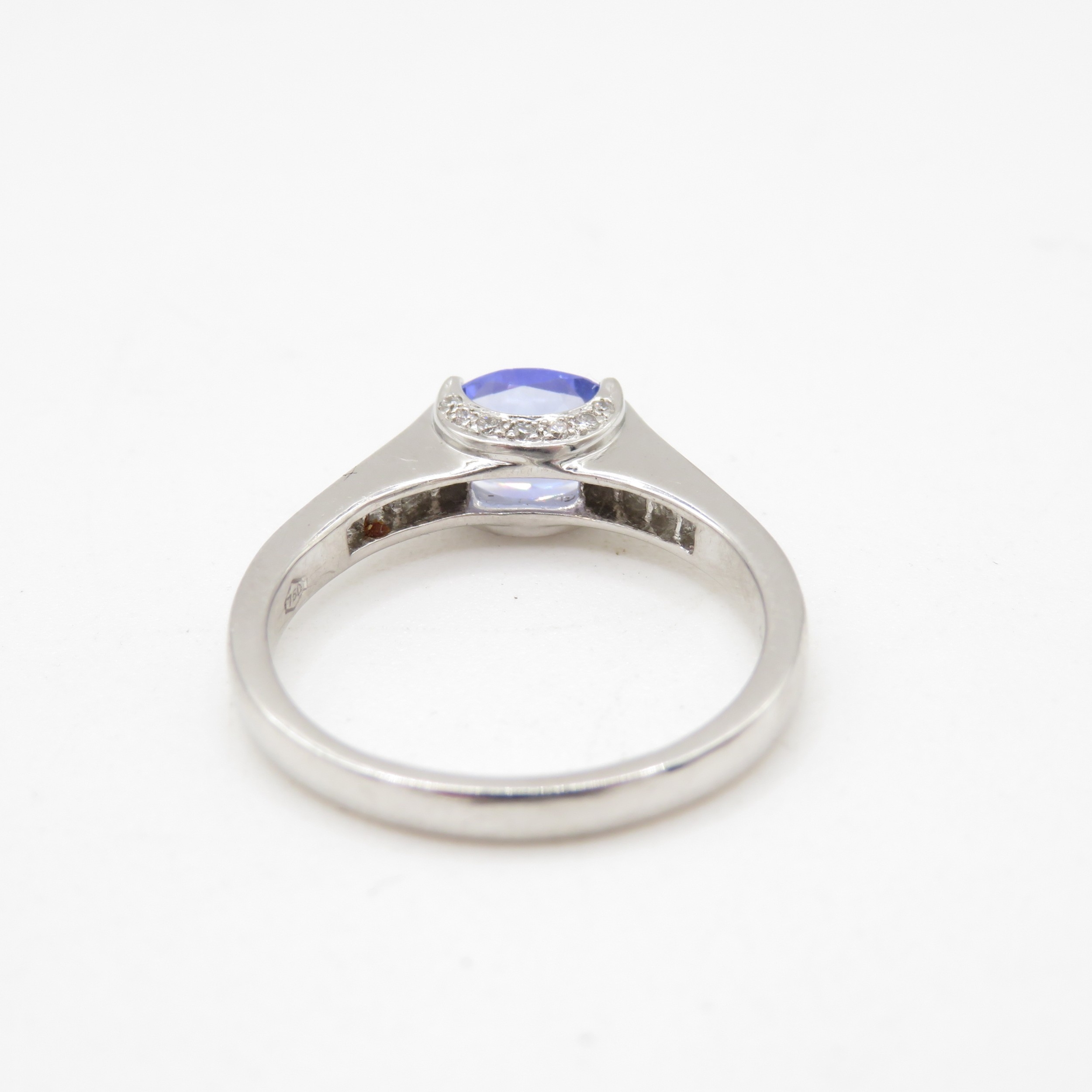 18ct white gold diamond and tanzanite shoulder setting ring (5.5g) Size R