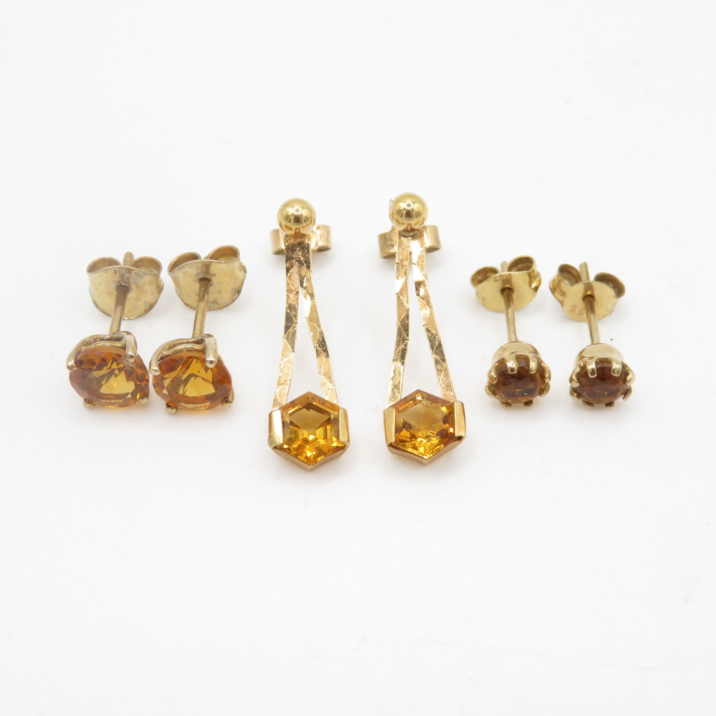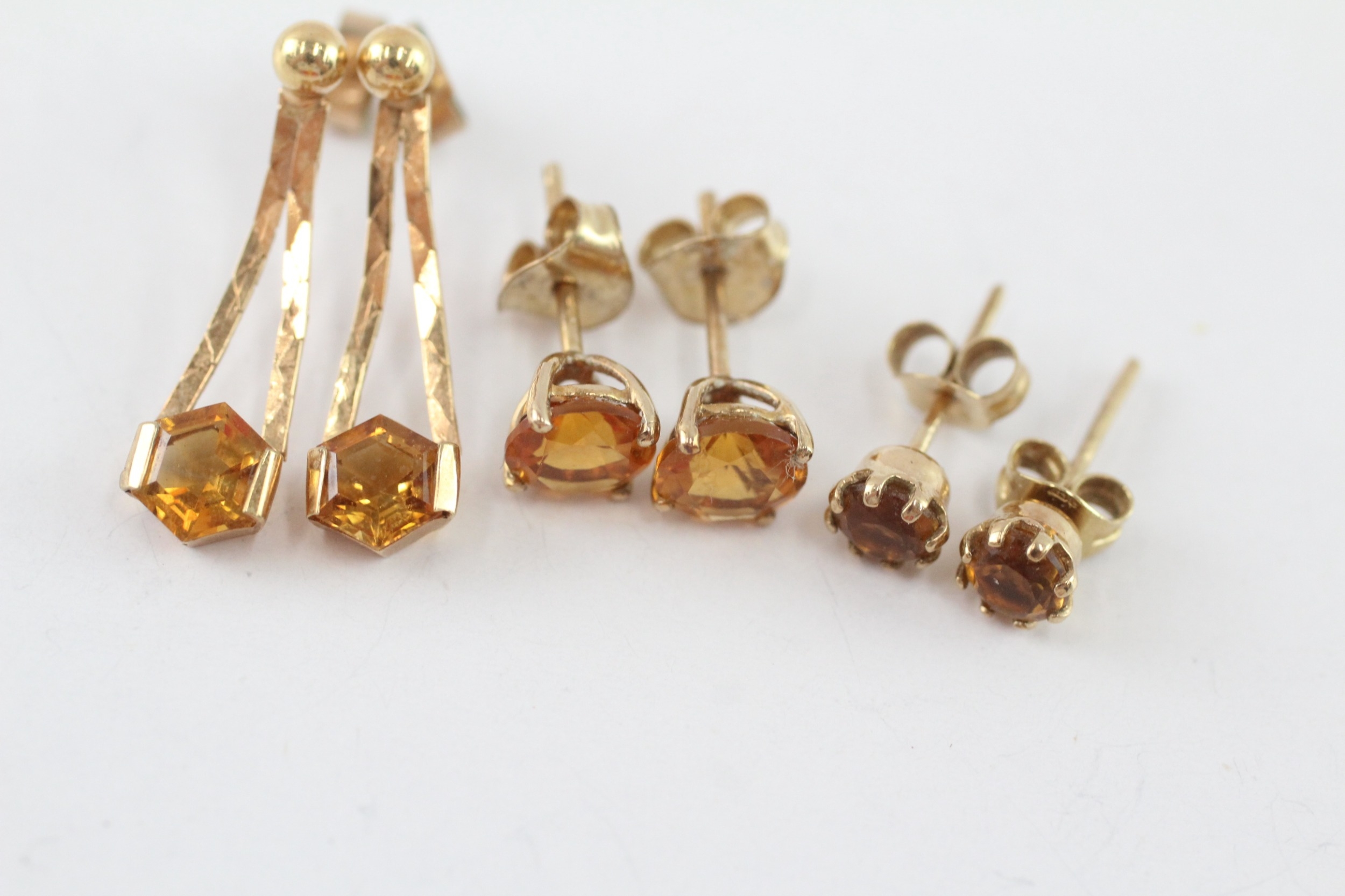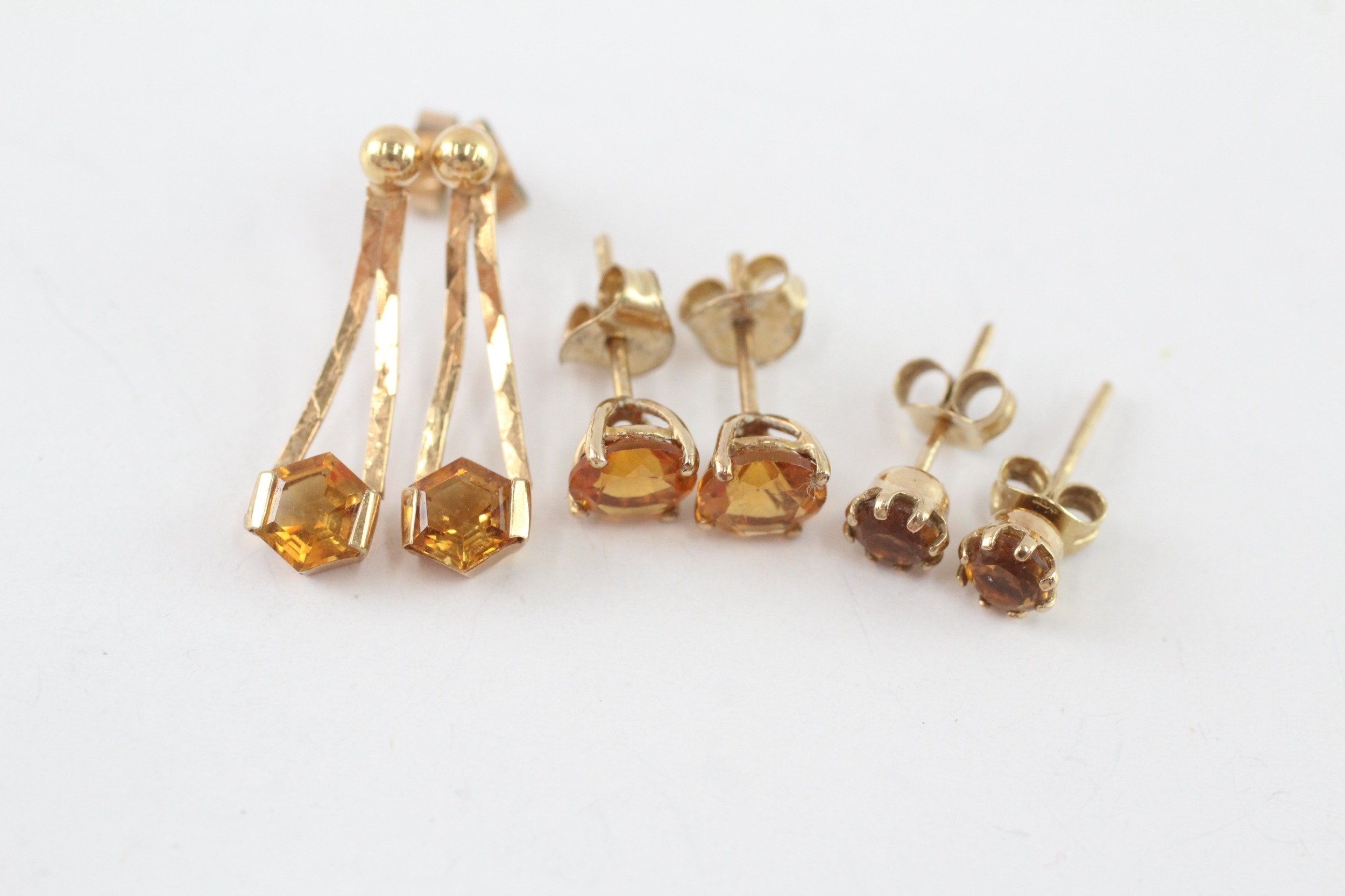 3x 9ct gold citrine earrings (3.2g)