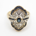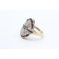 9ct gold diamond and sapphire set cocktail ring (3.7g) Size ...