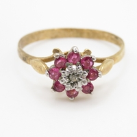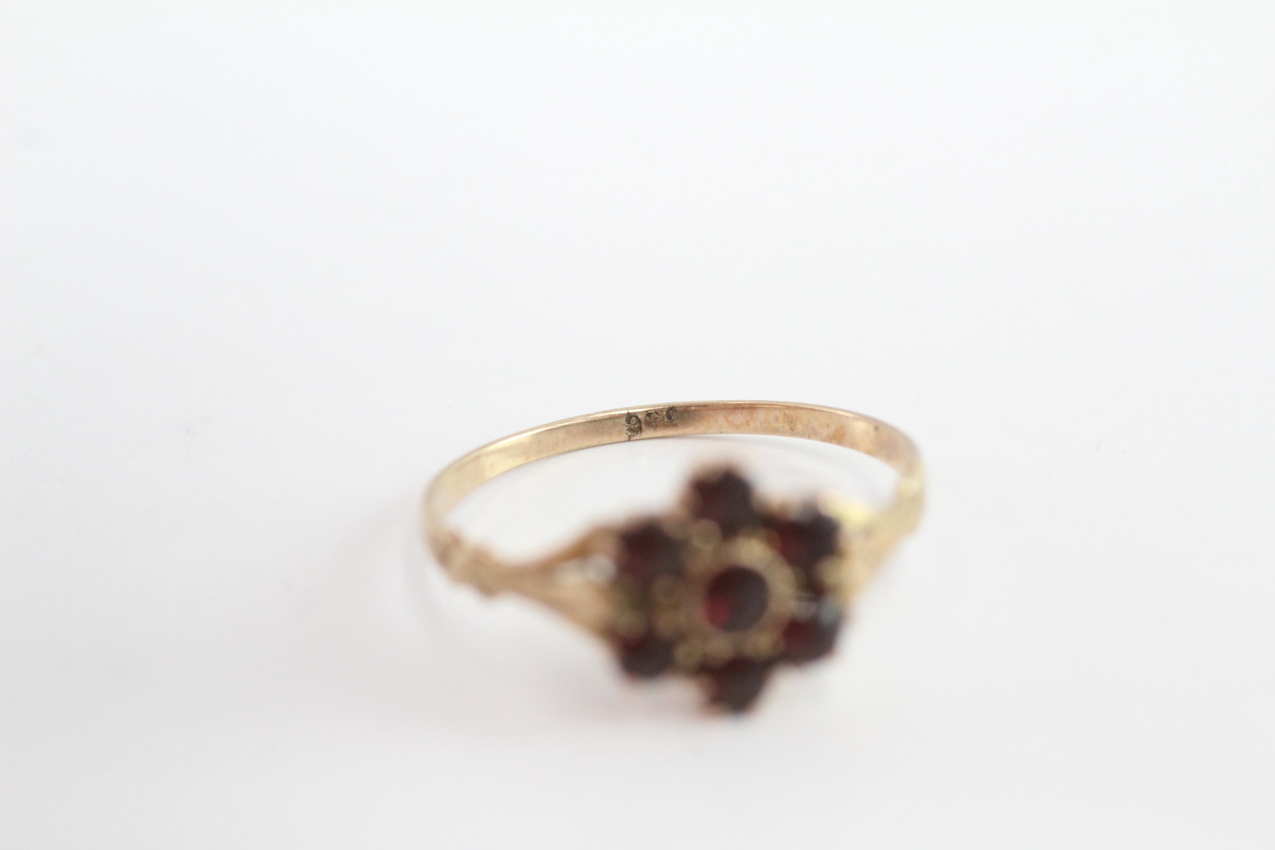 9ct gold vintage garnet cluster ring (1.5g) Size O 1/2