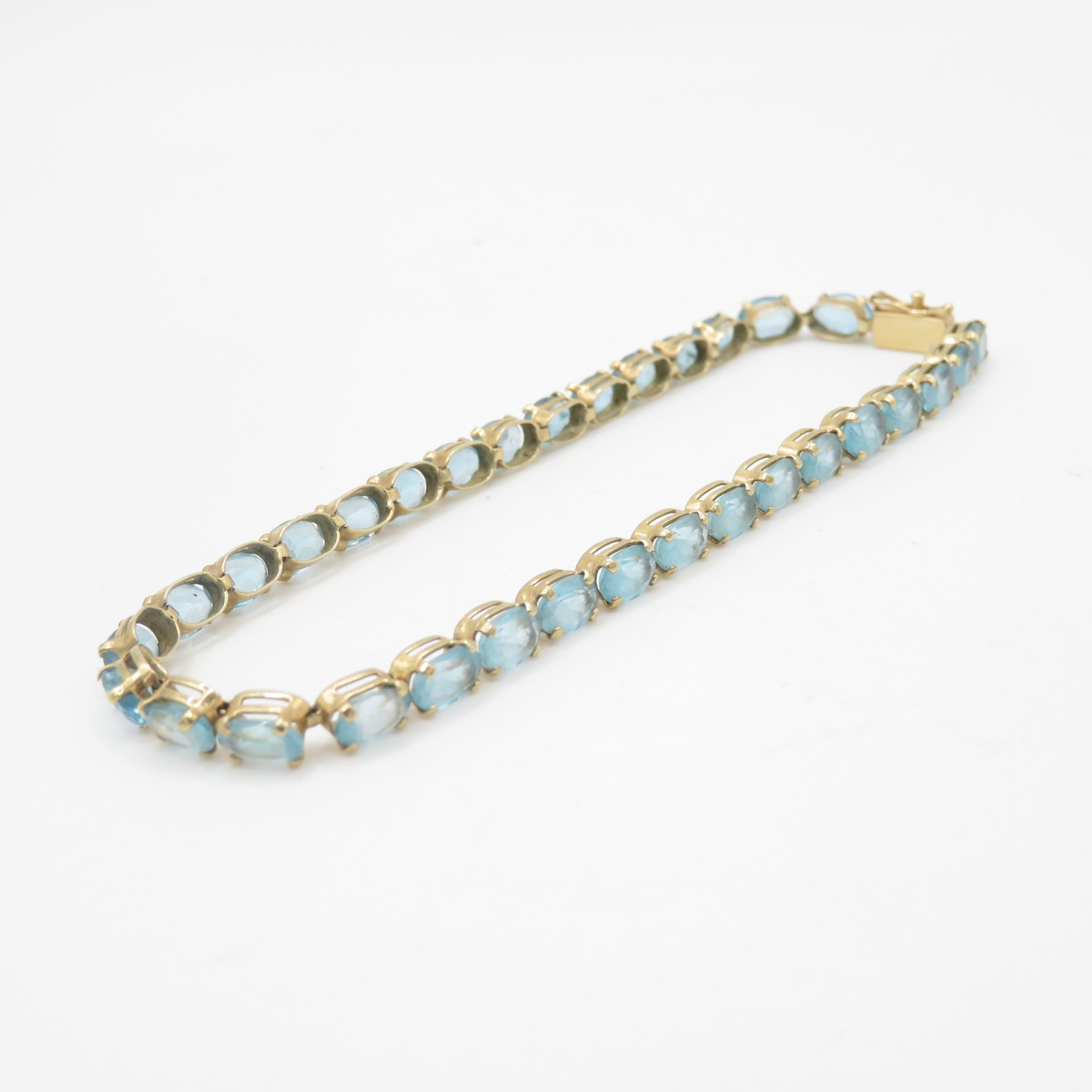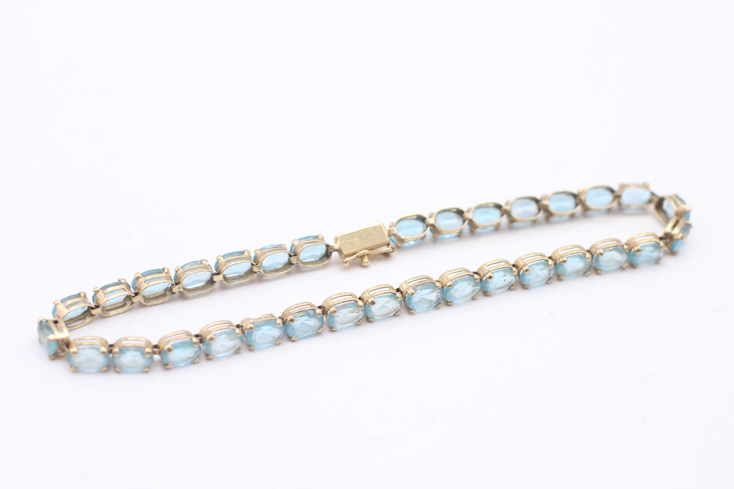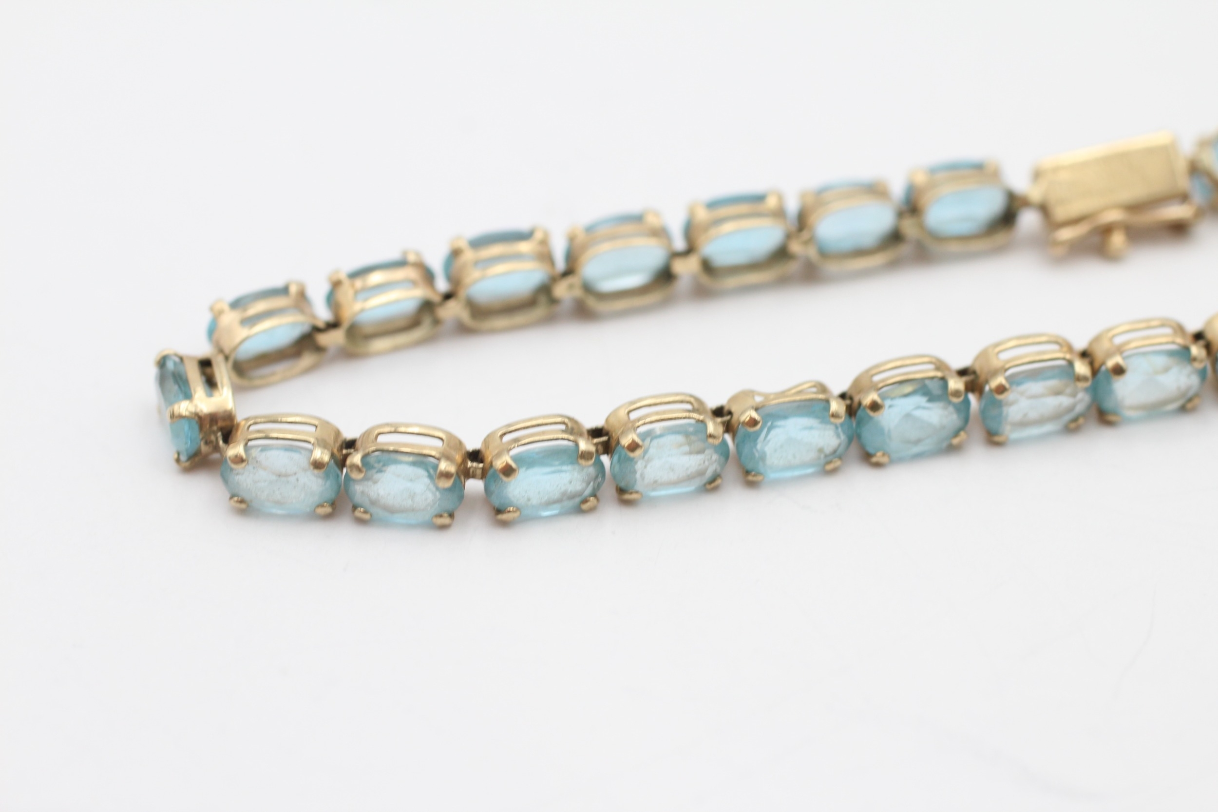 9ct gold blue topaz tennis bracelet (7.6g)