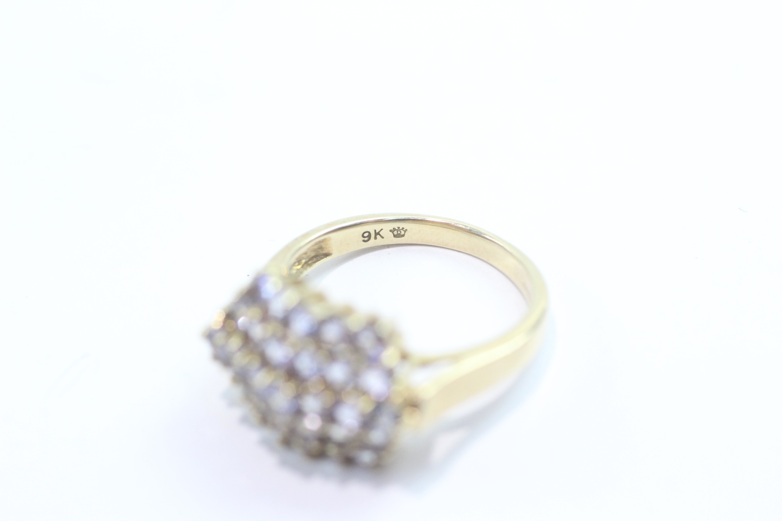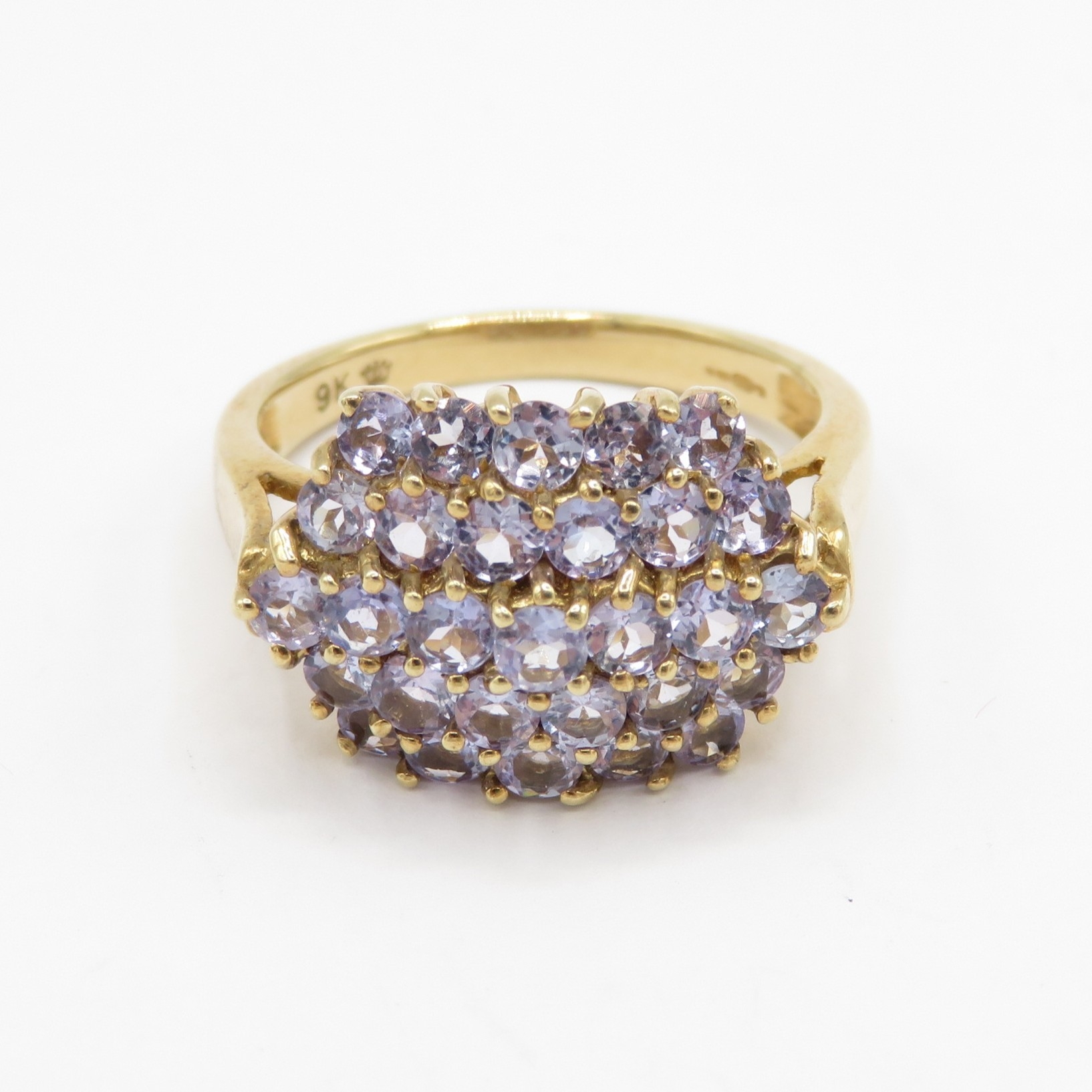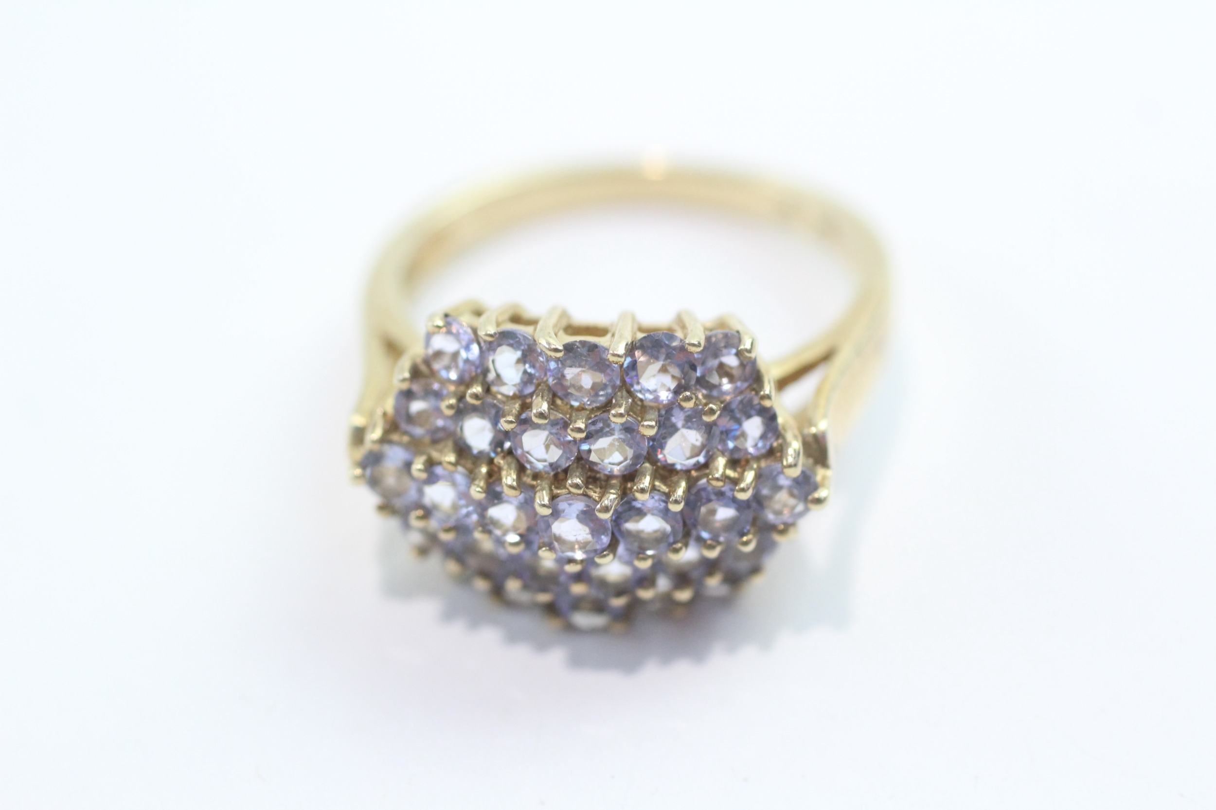 9ct gold tanzanite cluster ring (4.7g) Size Q
