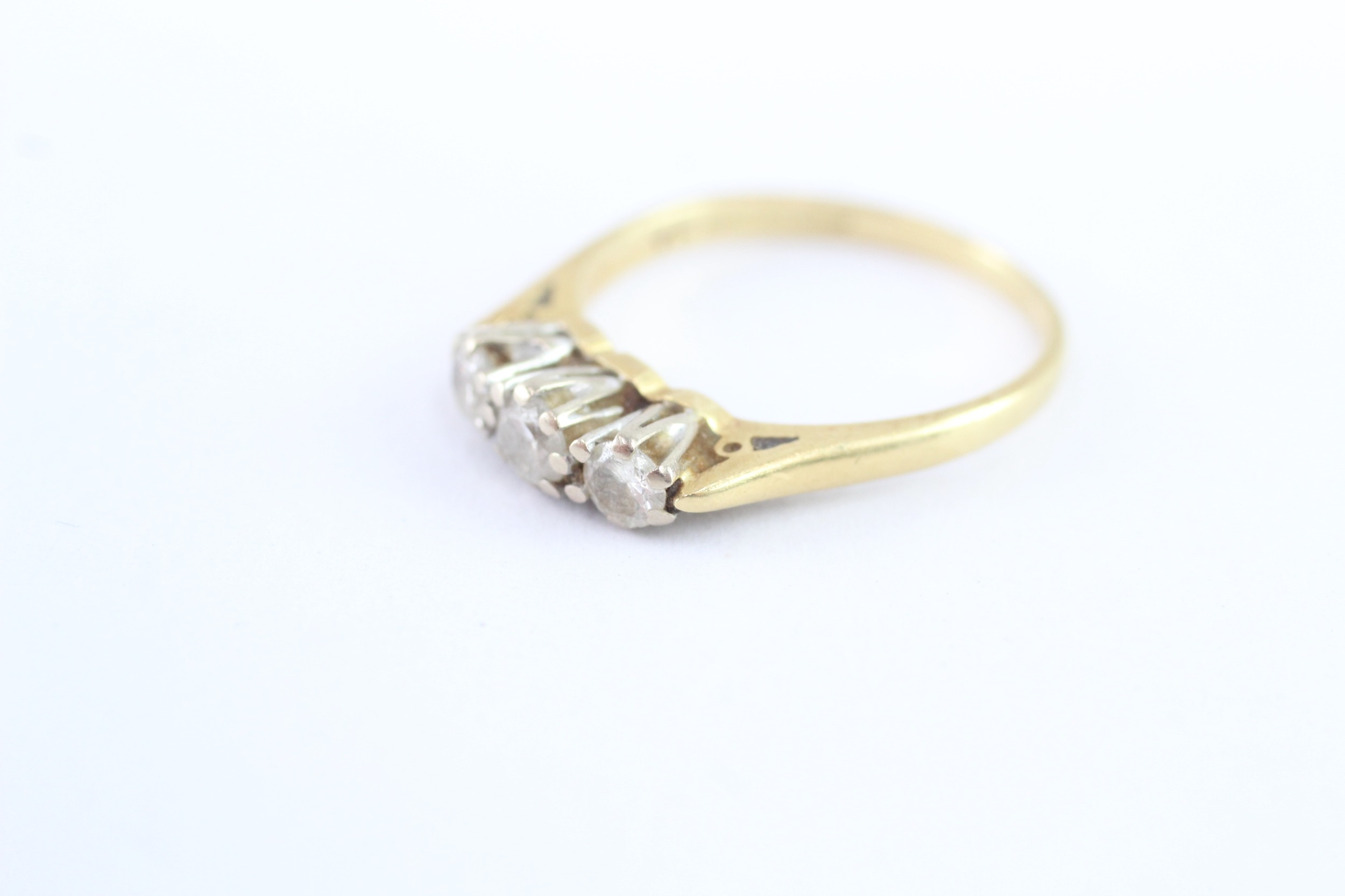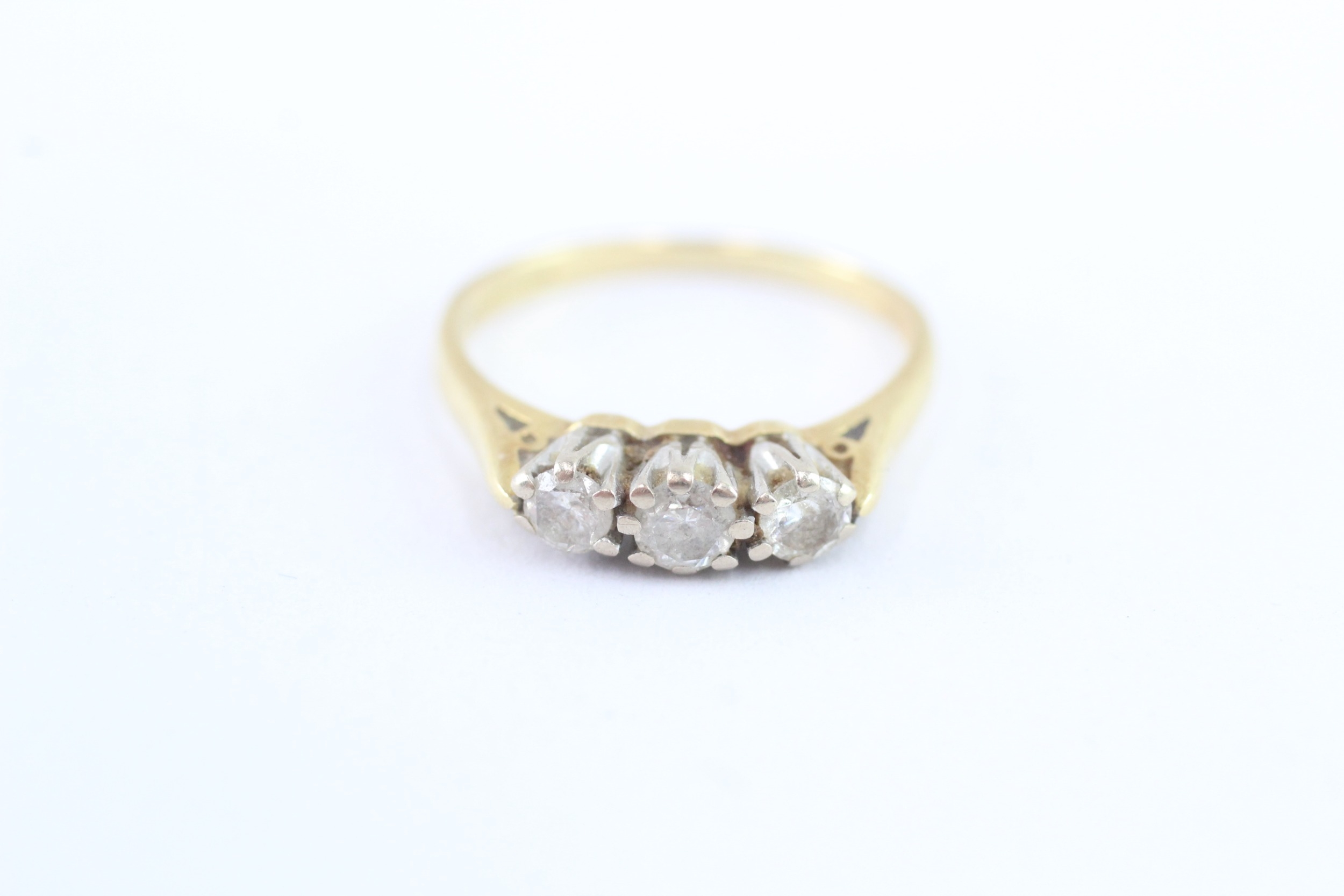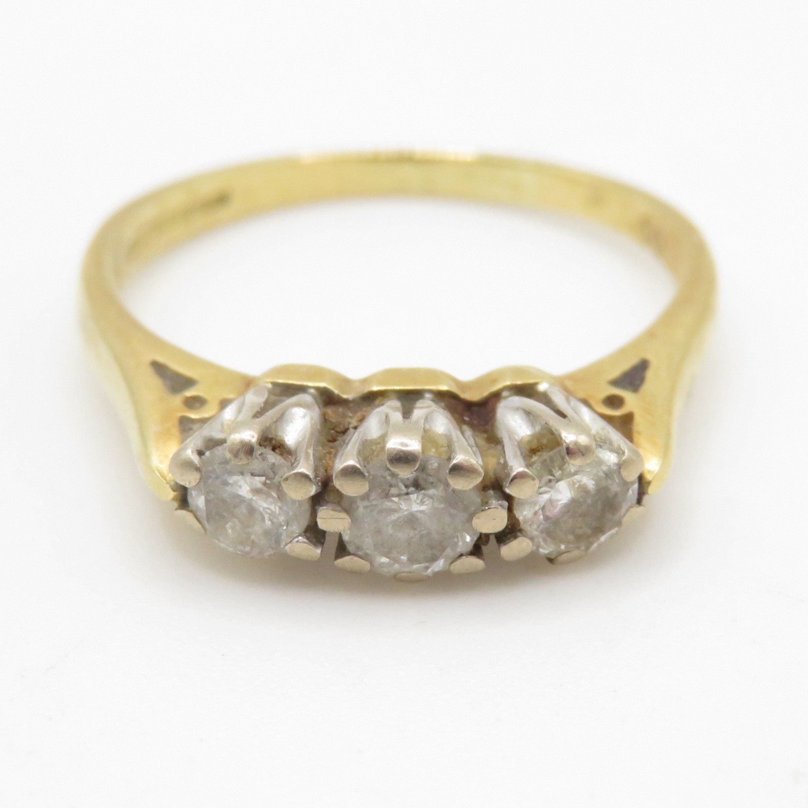 18ct gold vintage diamond trilogy ring, estimated total diamond weight: 0.50ct (3.8g) Size P