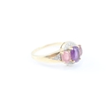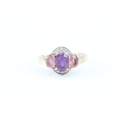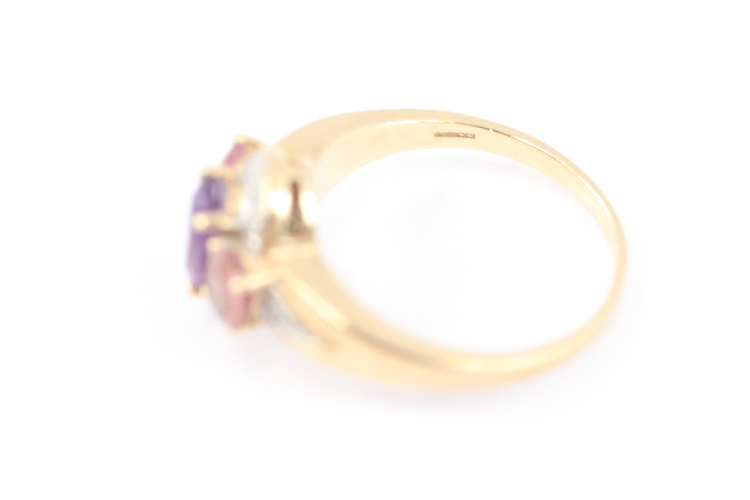 9ct gold diamond, amethyst & pink tourmaline dress ring (3.7...
