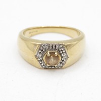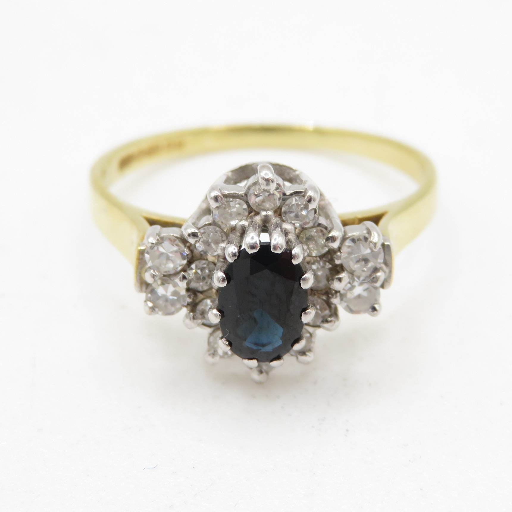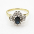 18ct gold diamond and sapphire halo ring (2.9g) Size L