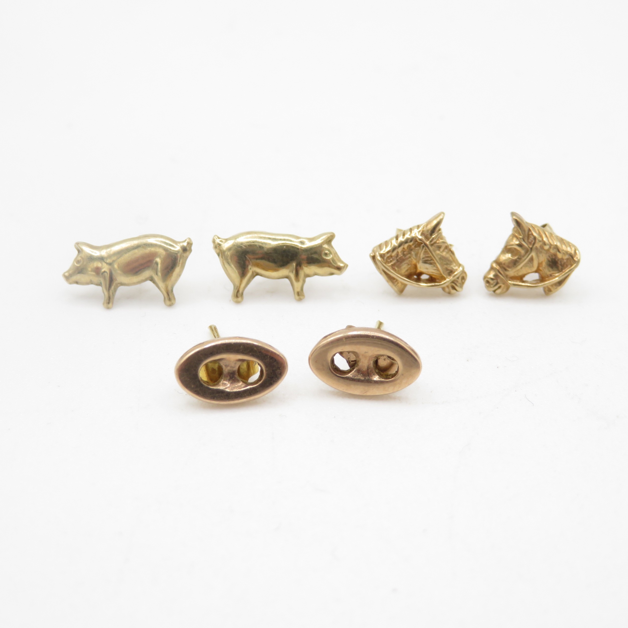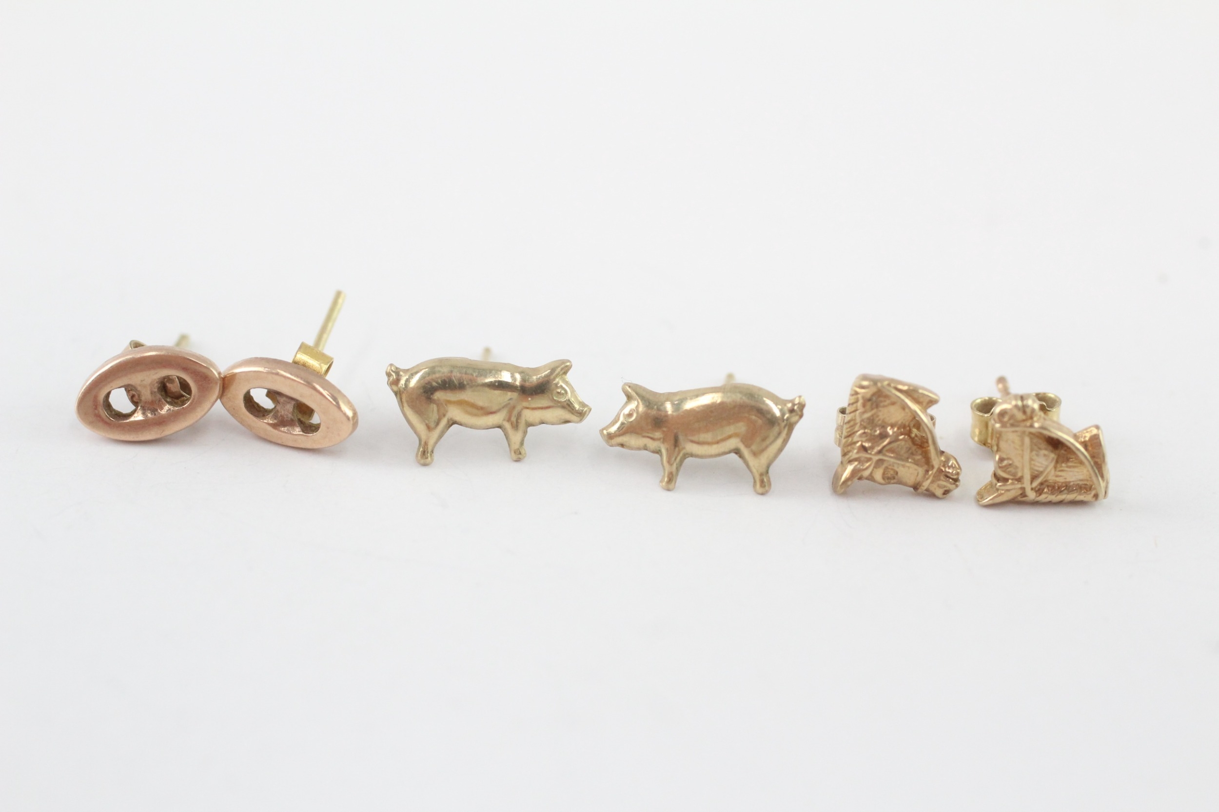 3x 9ct gold animal & button stud earrings (2.4g)