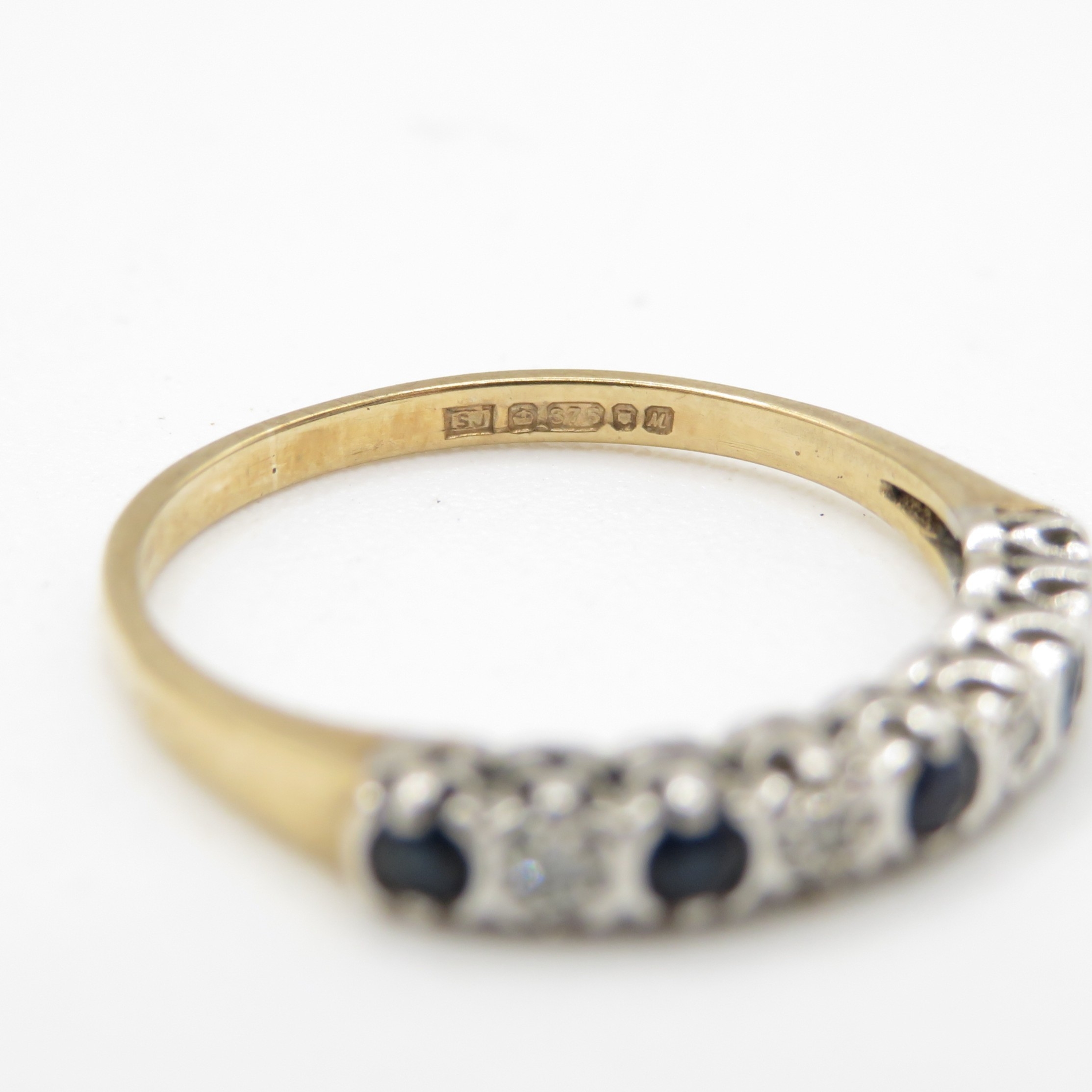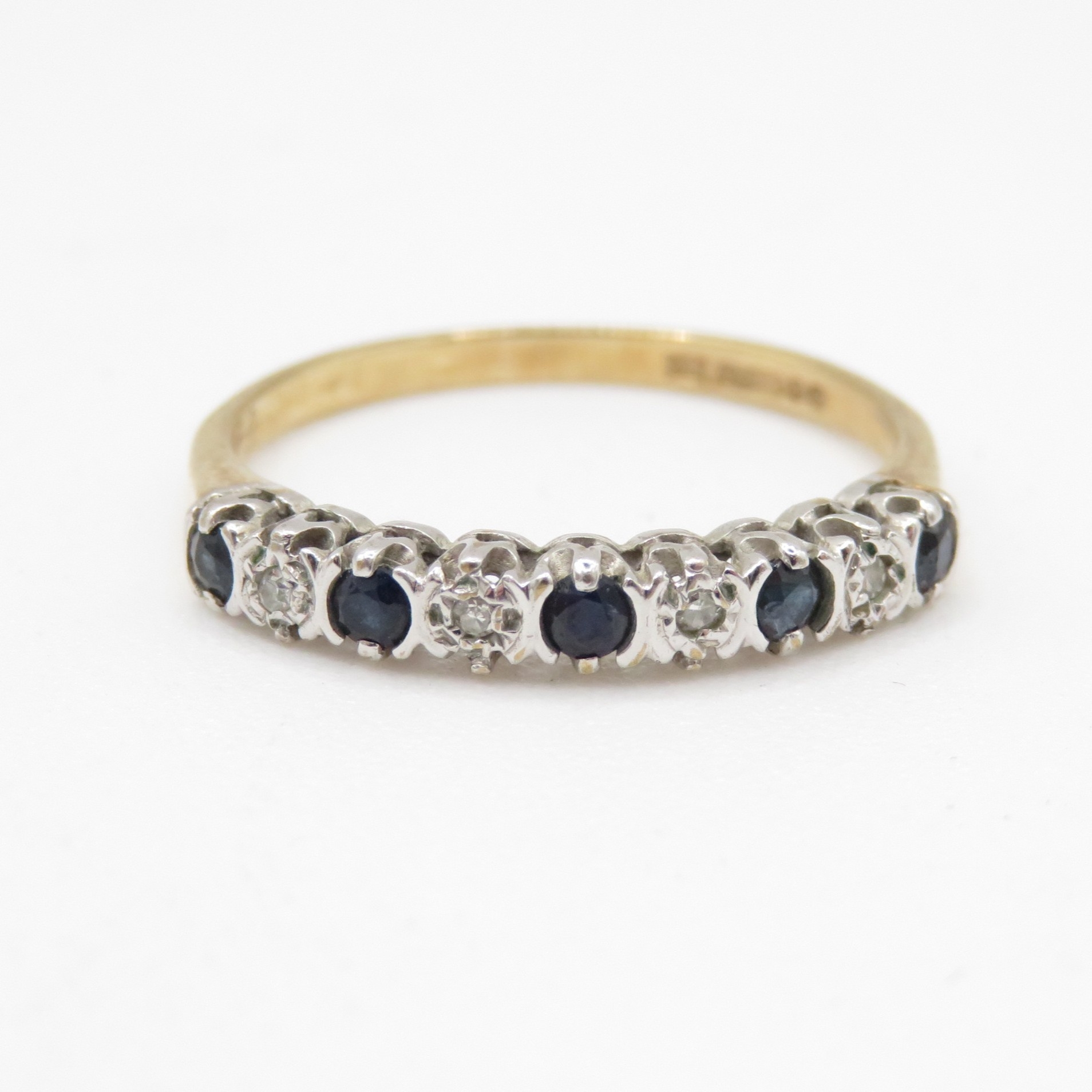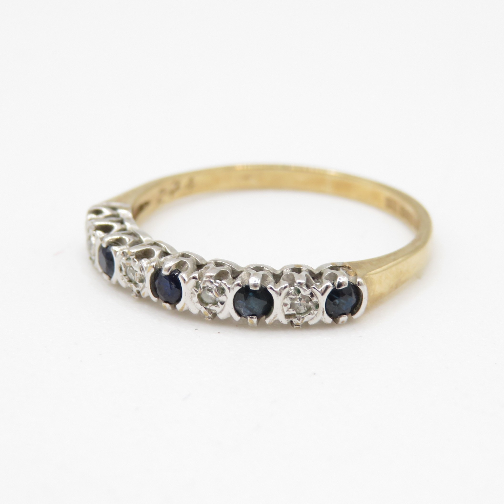 18ct gold diamond and sapphire alternating row ring (1.3g) Size L 1/2