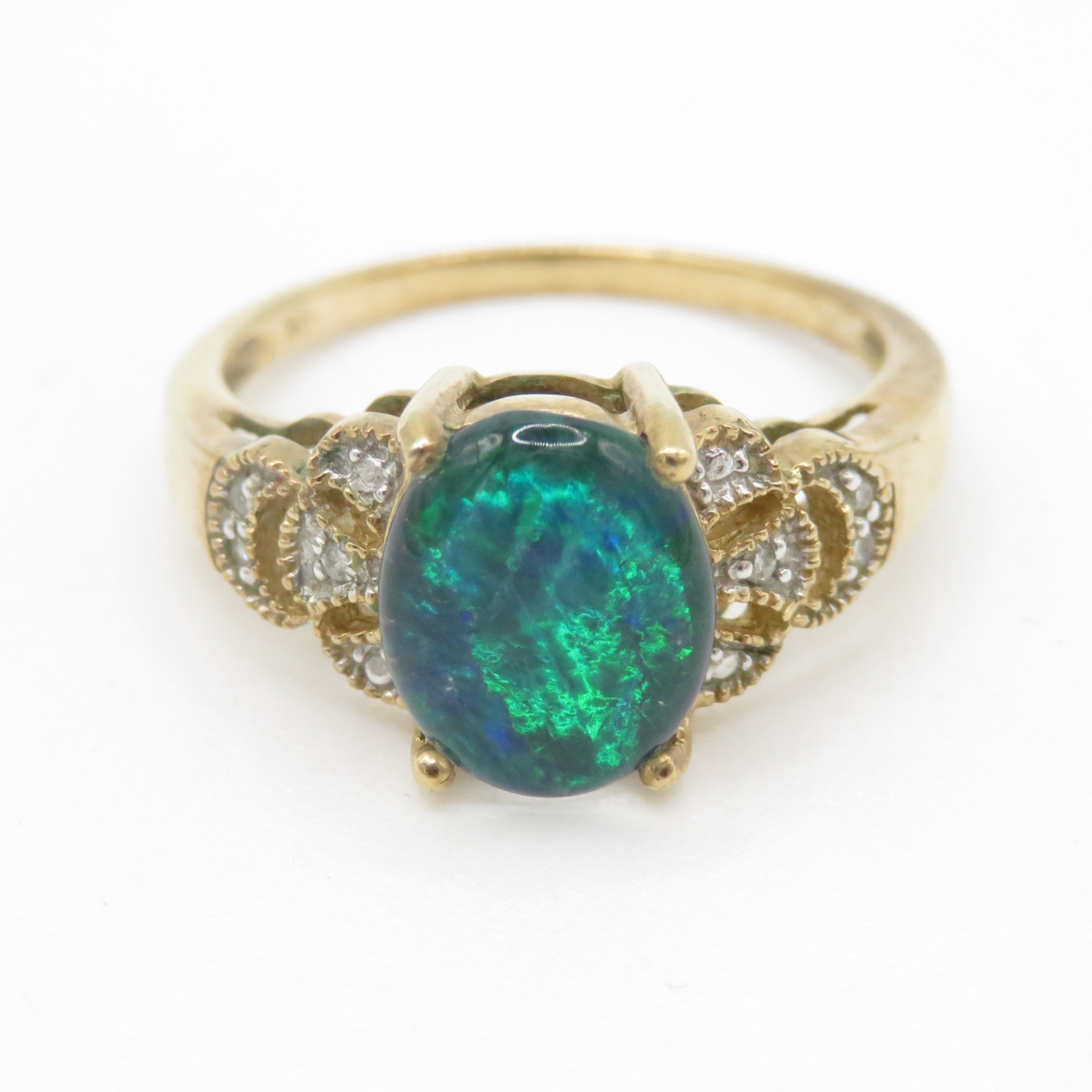 9ct gold opal triplet diamond dress ring (3.2g) Size P