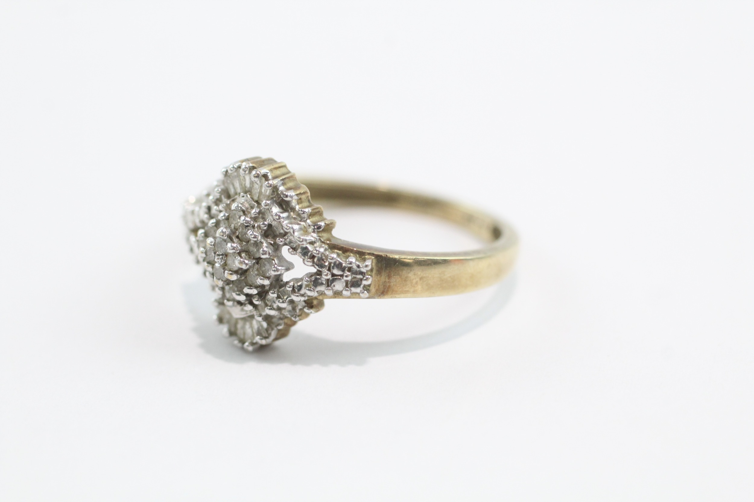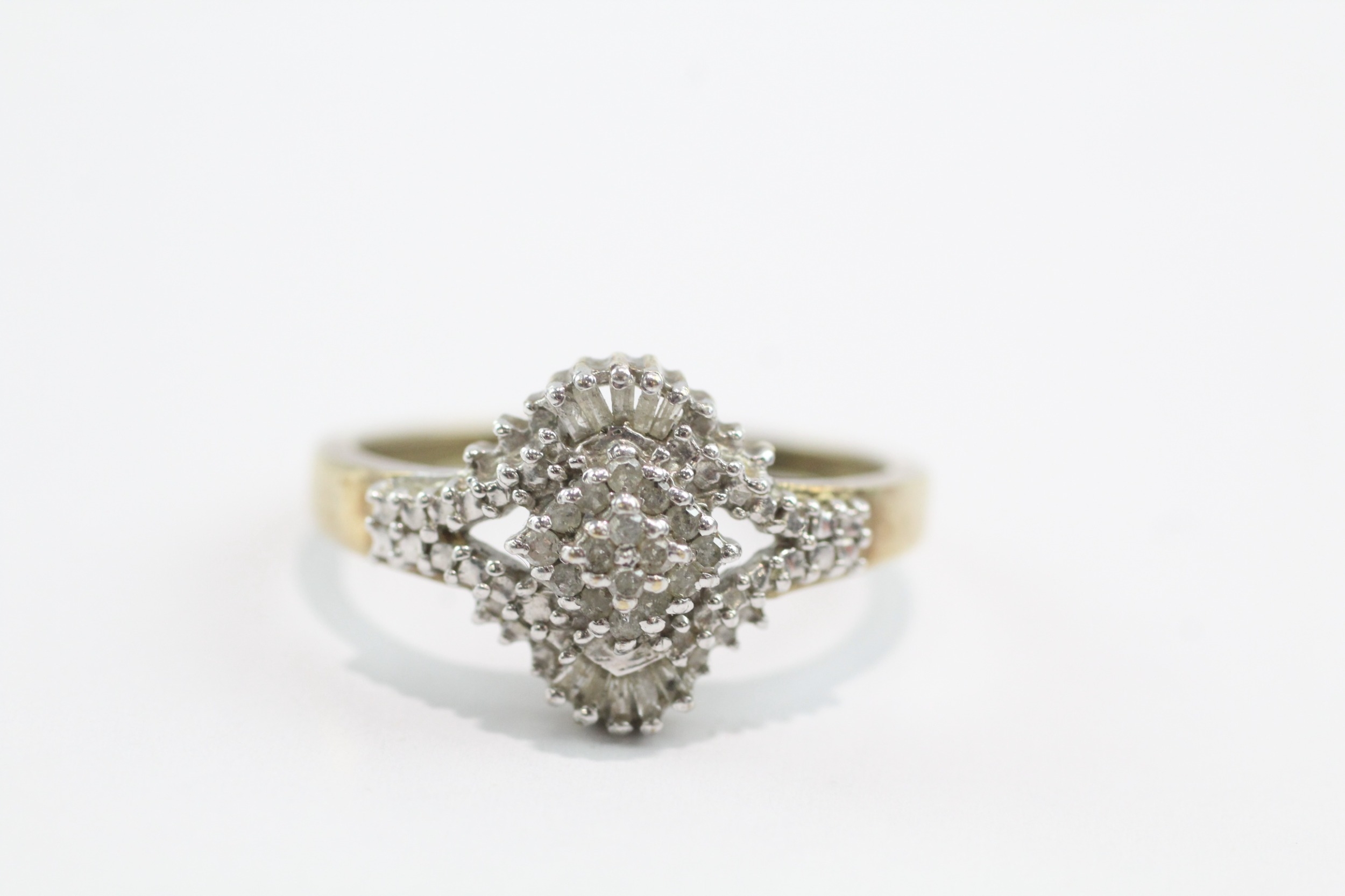 9ct gold baguette and round cut diamond ring (3.4g) Size V