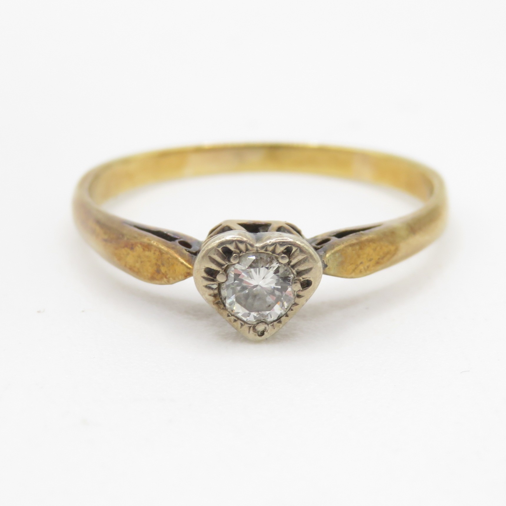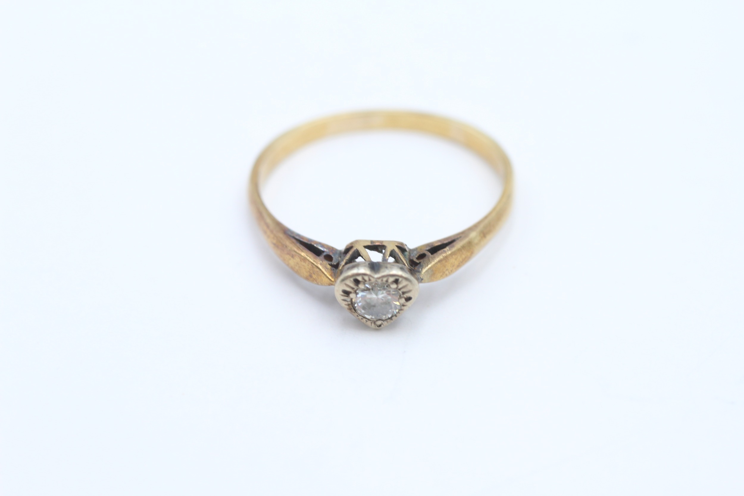 9ct gold diamond heart solitaire ring (2.6g) Size Q