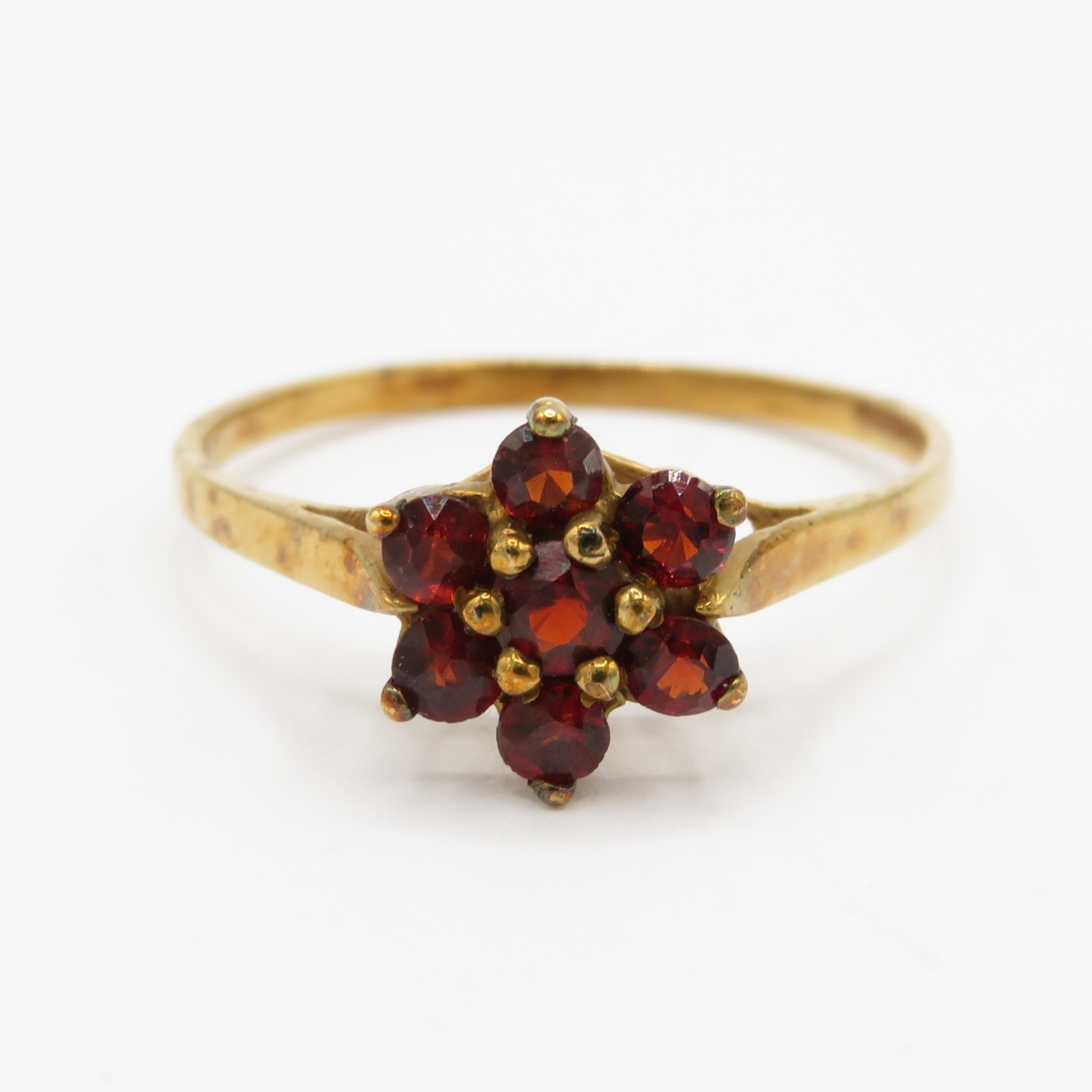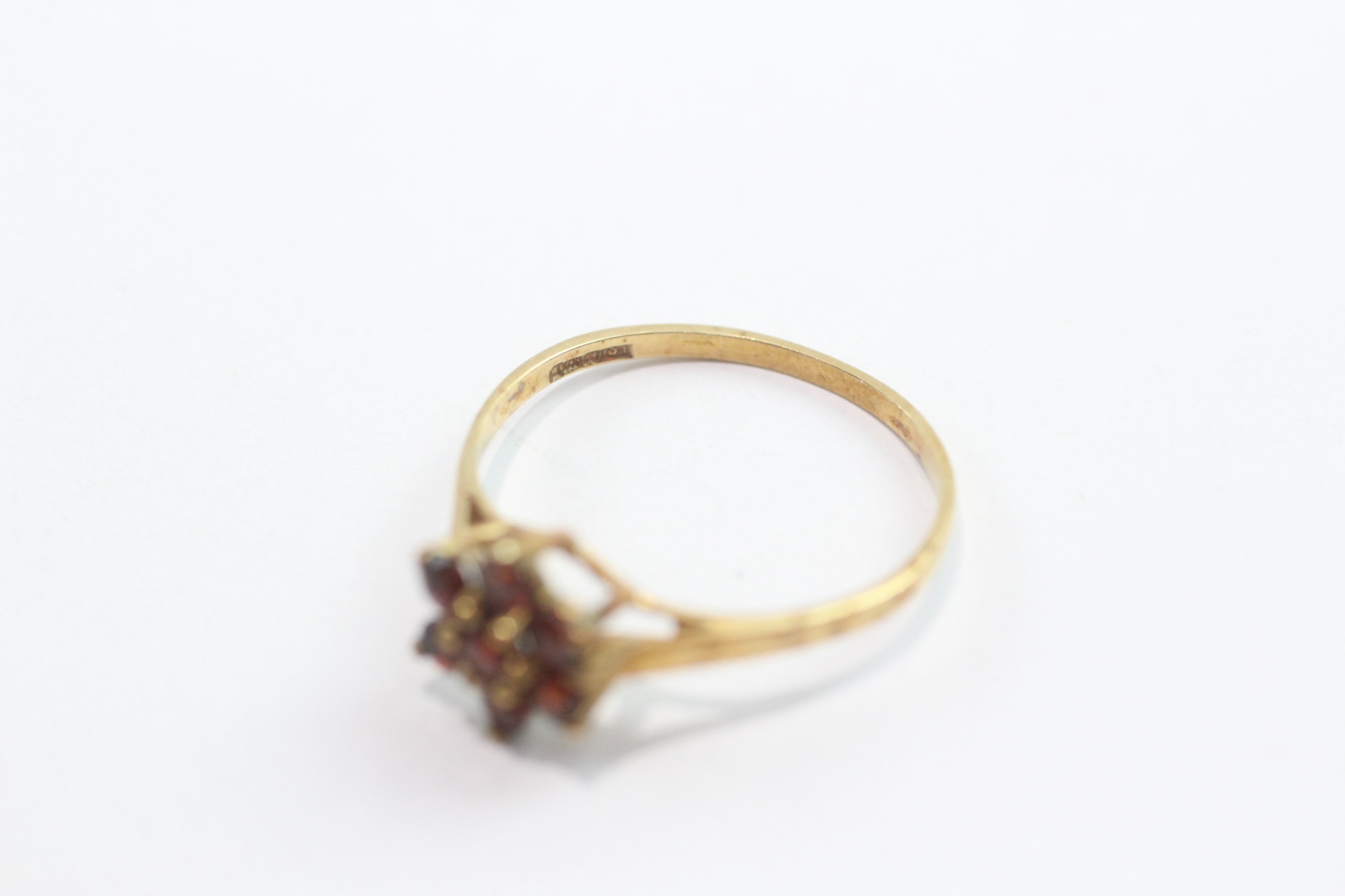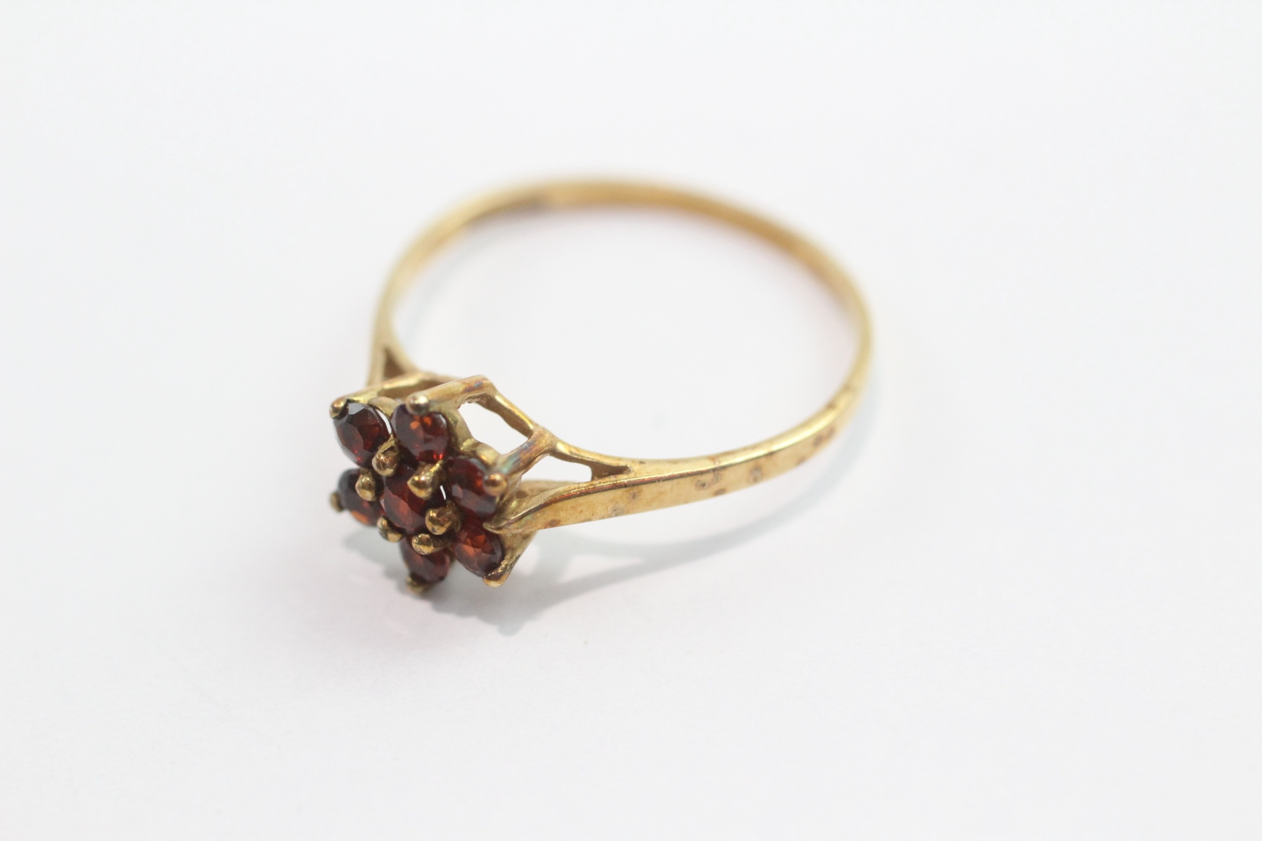 9ct gold garnet cluster ring (1.2g) Size N