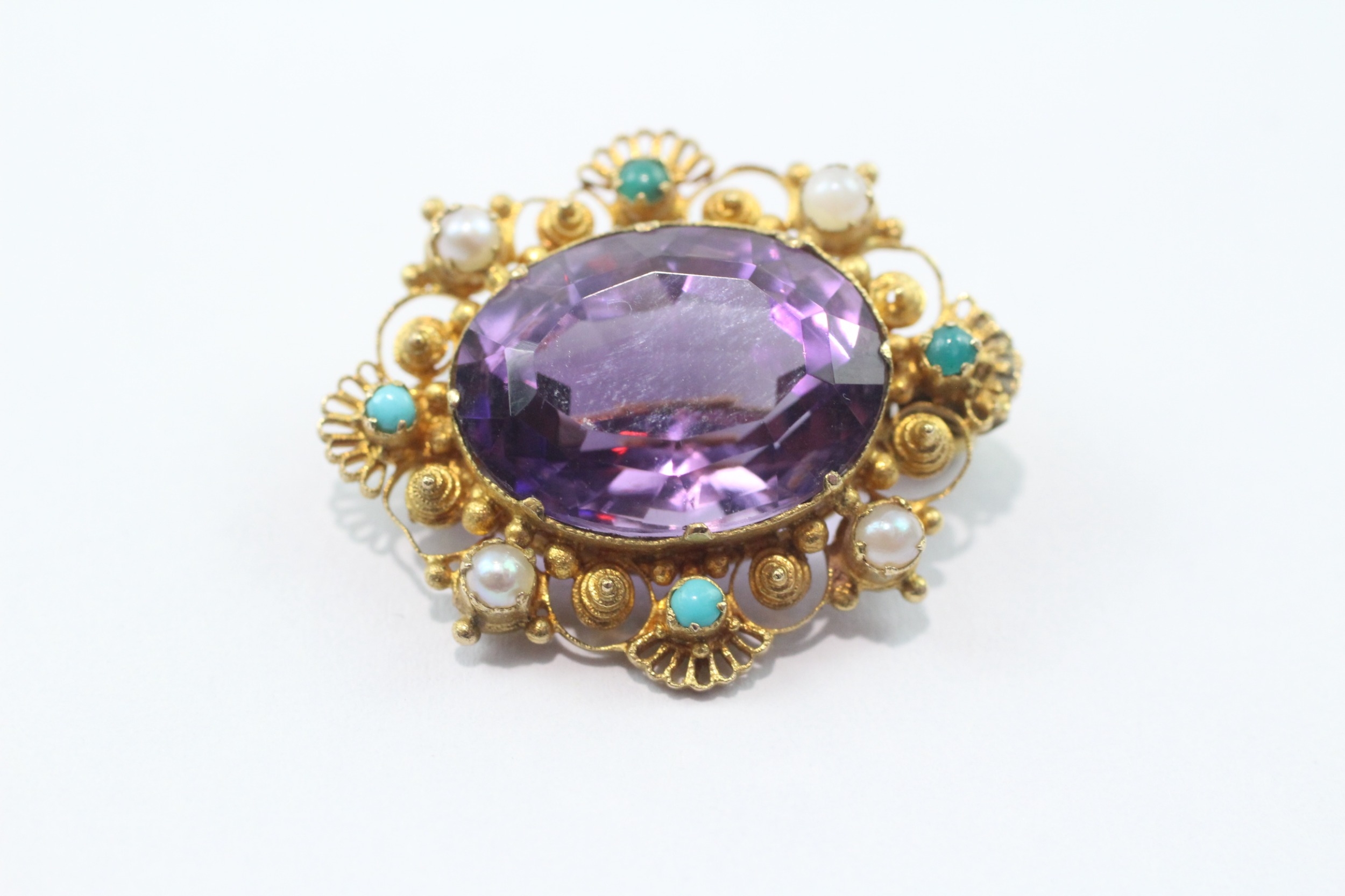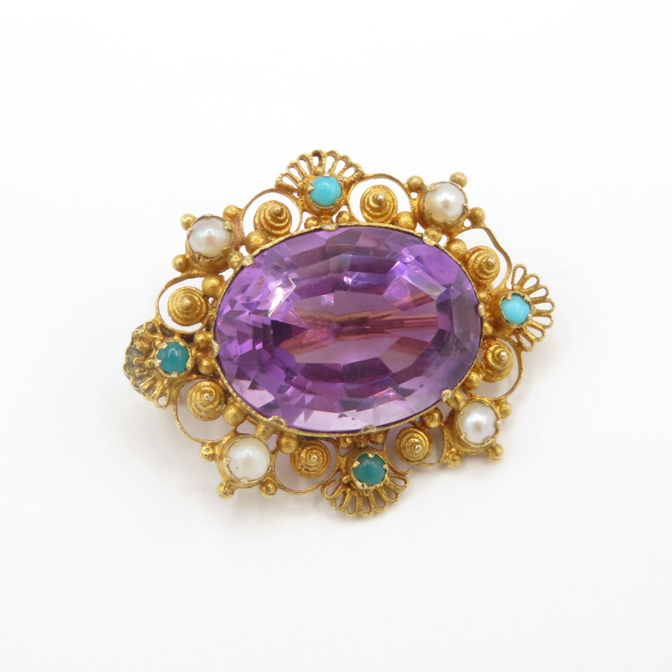 Antique 9ct gold amethyst, pearl and turquoise brooch conversion (4.8g)