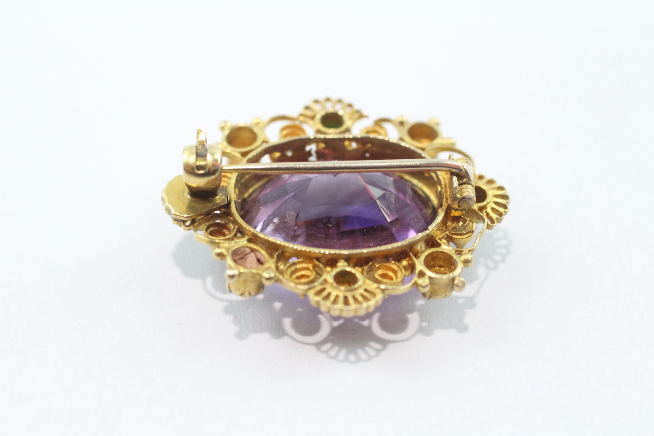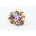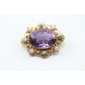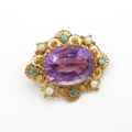 Antique 9ct gold amethyst, pearl and turquoise brooch conver...