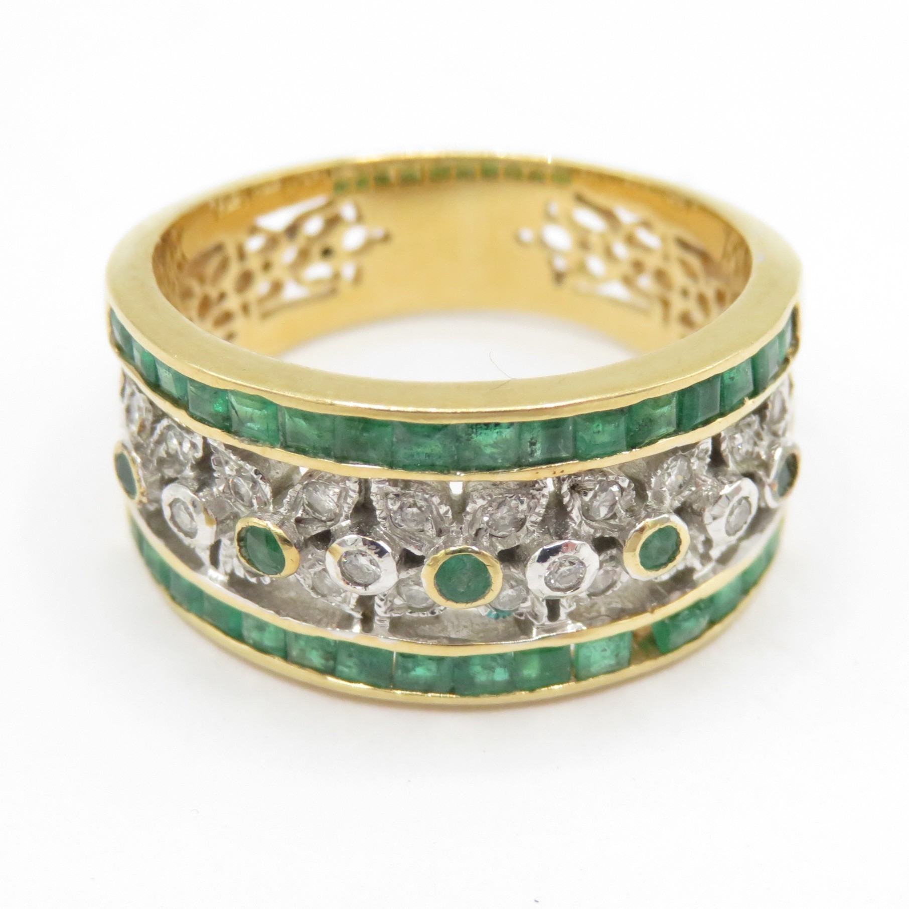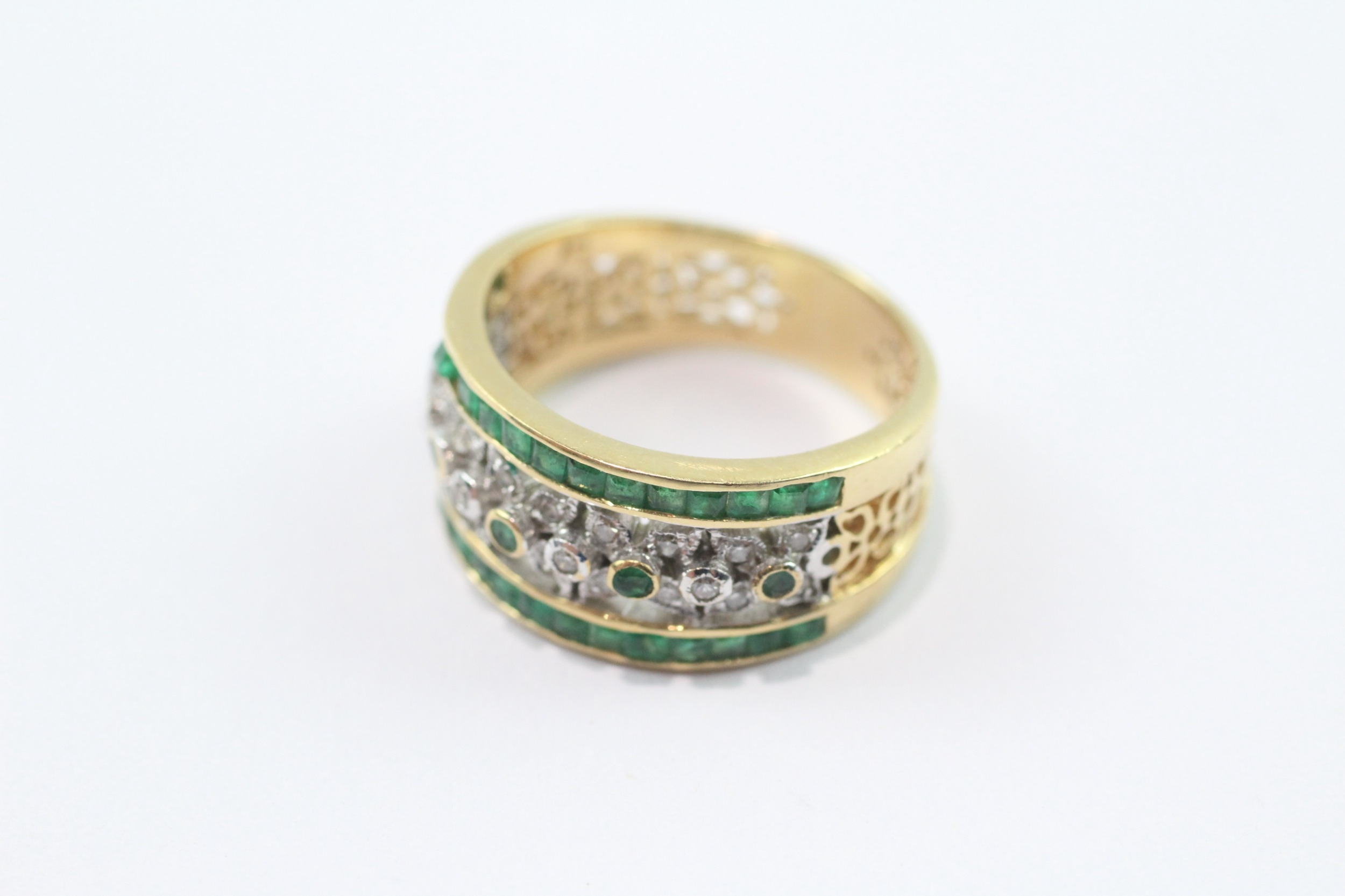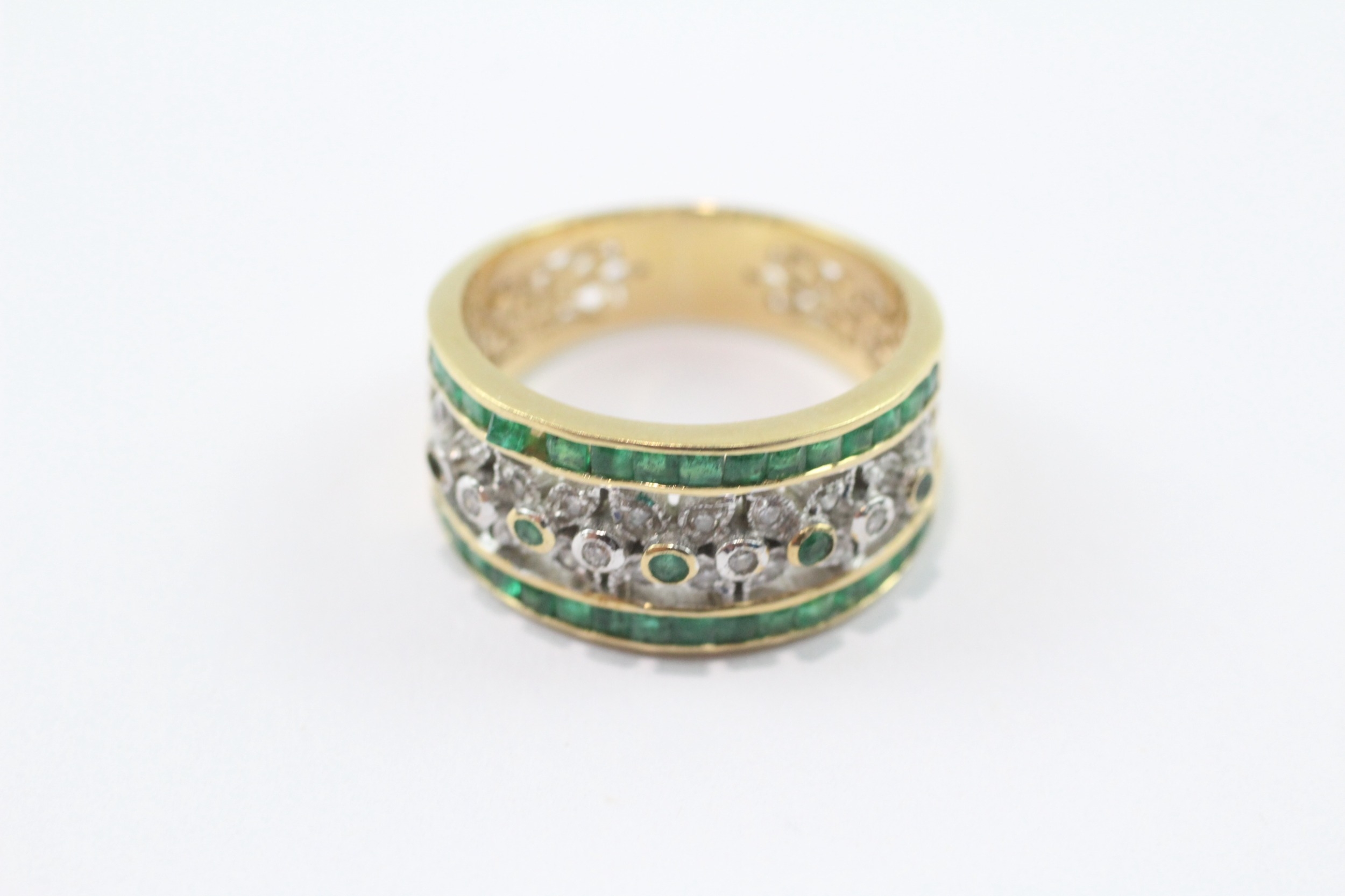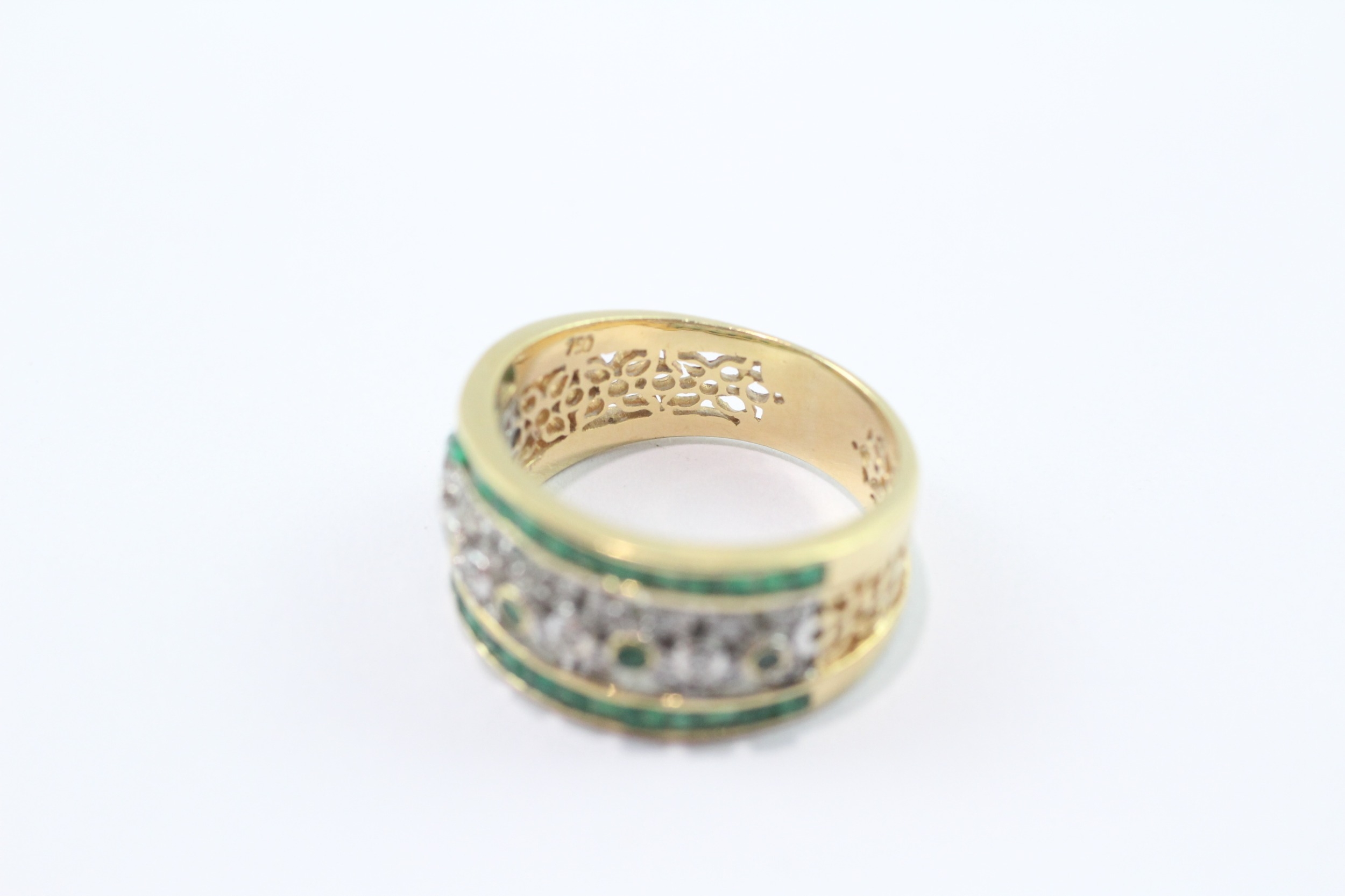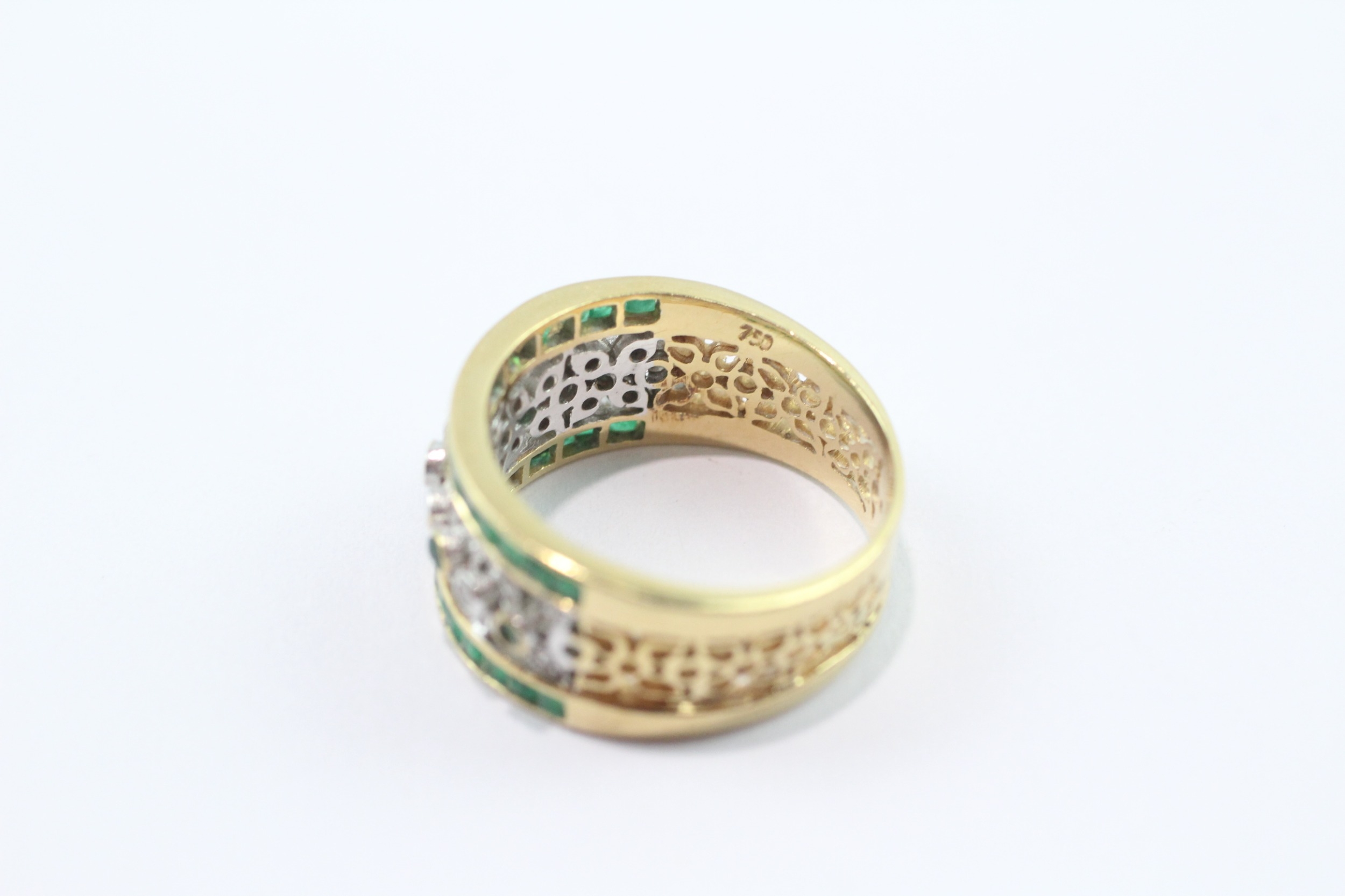 18ct gold emerald and diamond flower ring, as found (5.8g) Size N