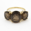 9ct gold smokey quartz set trilogy cocktail ring (4.1g) Size R