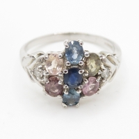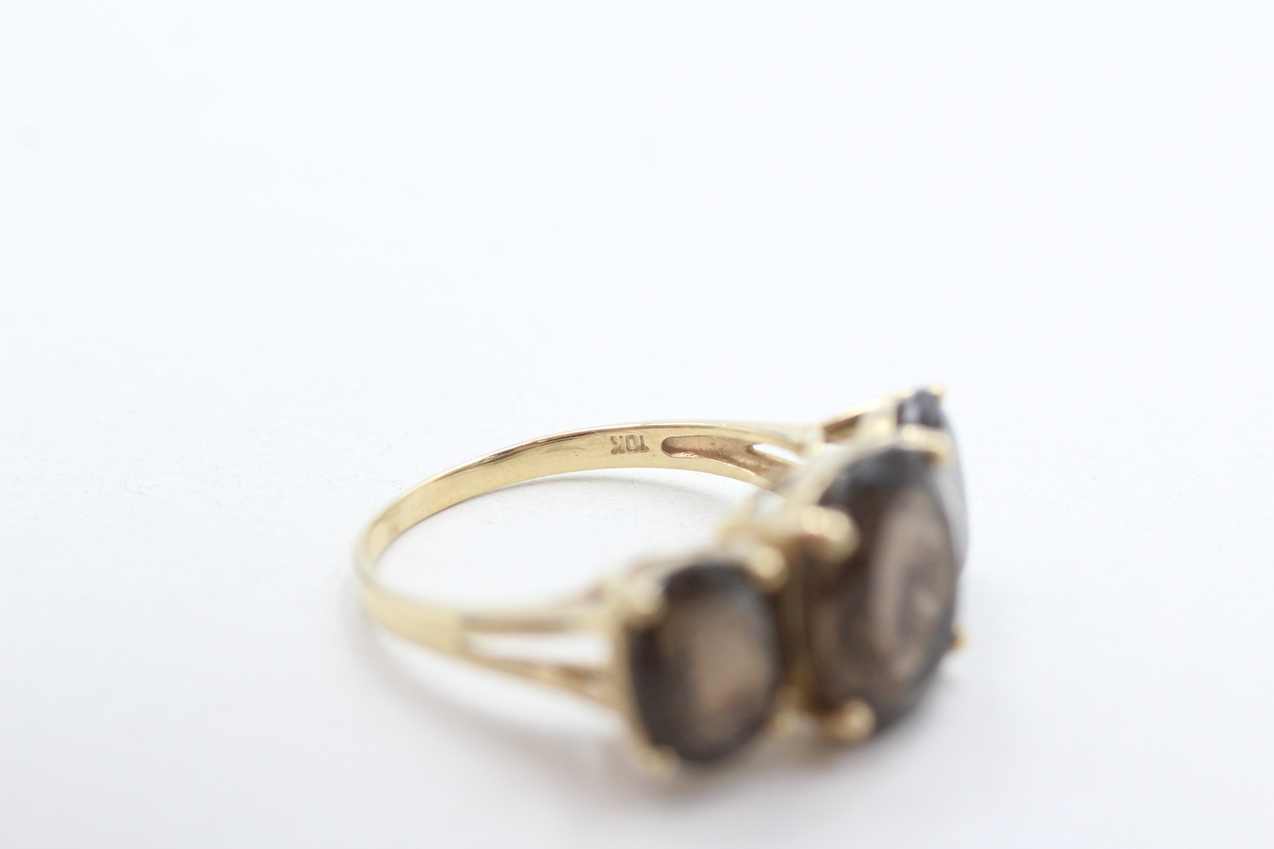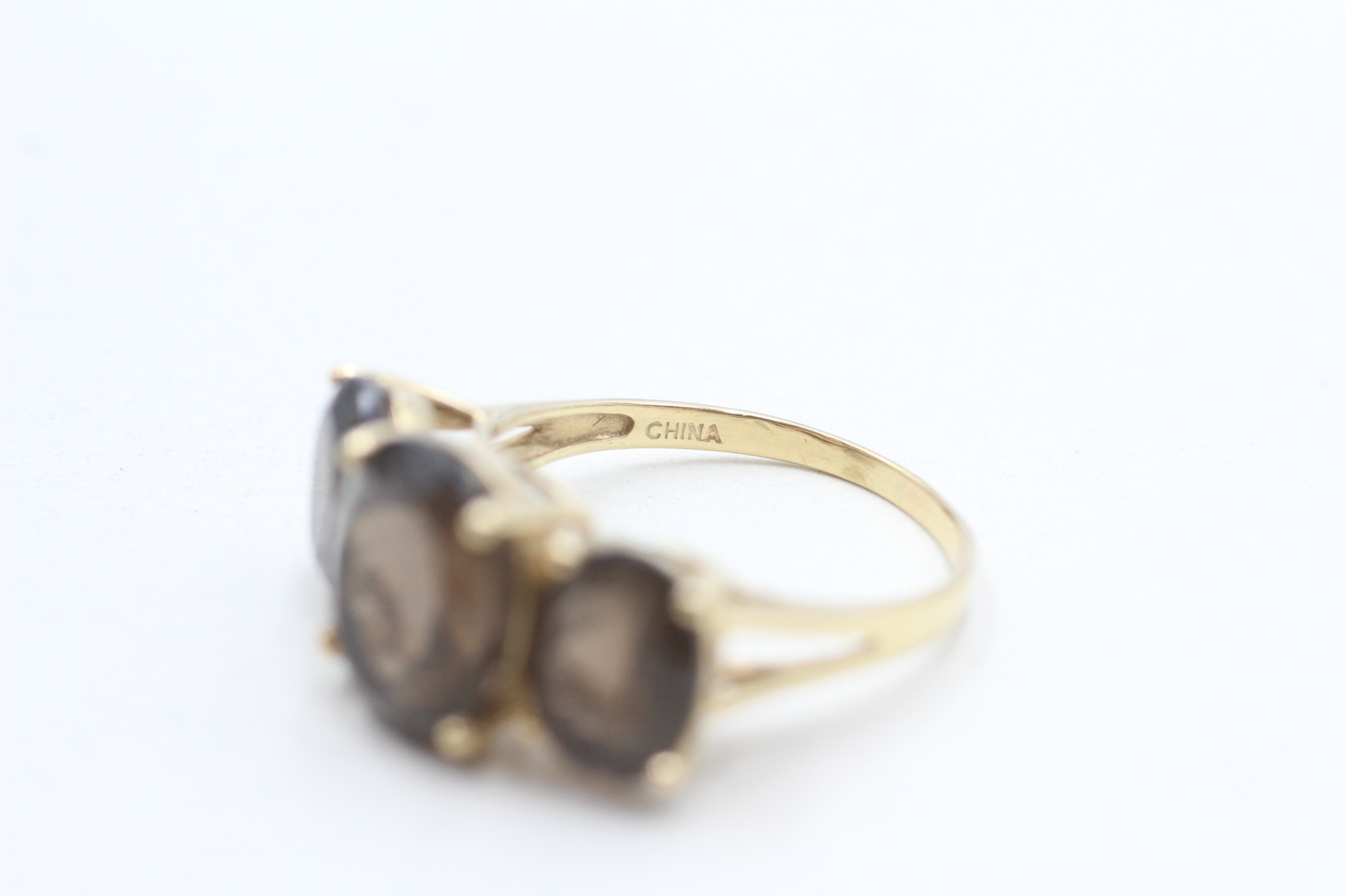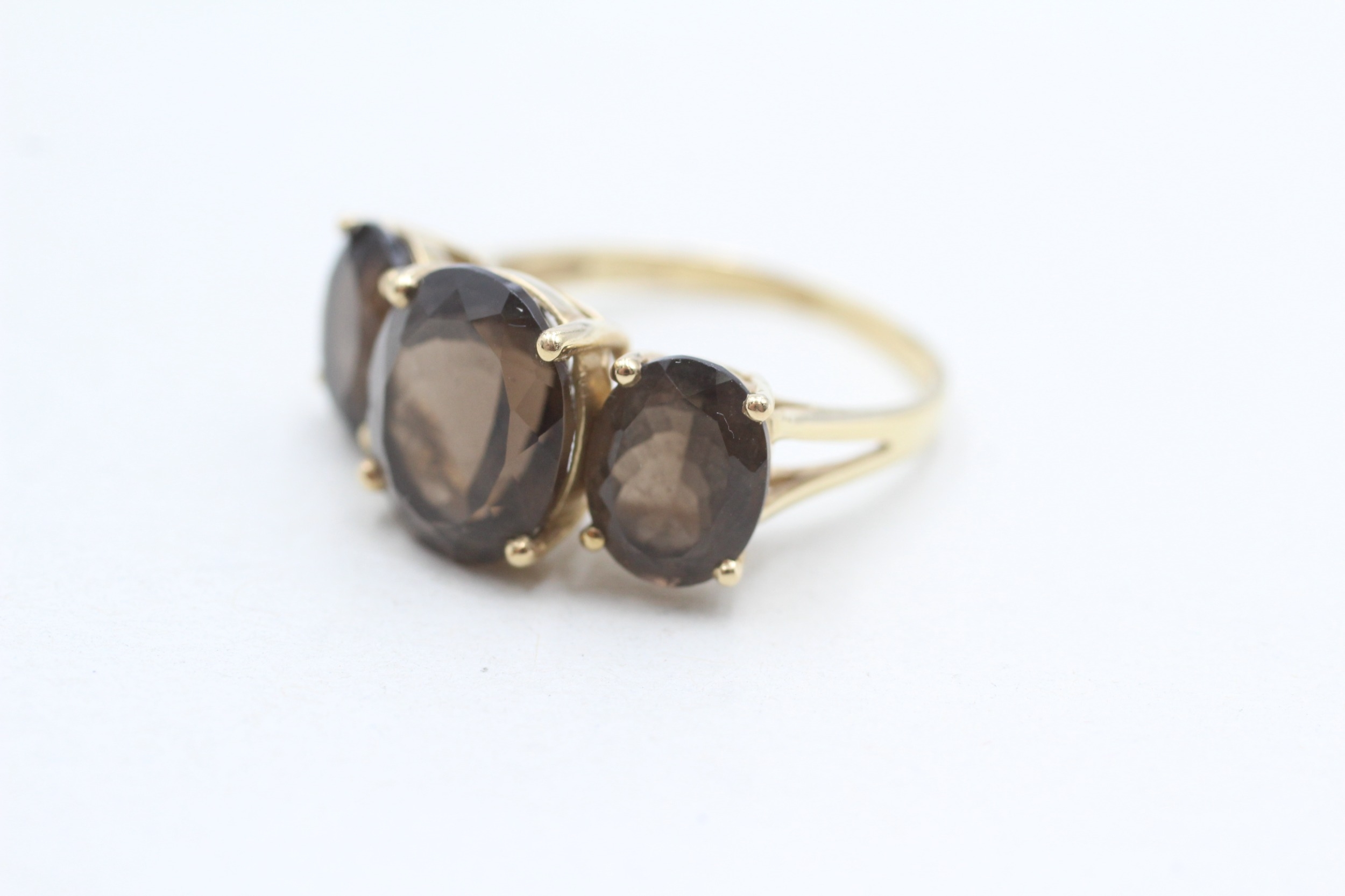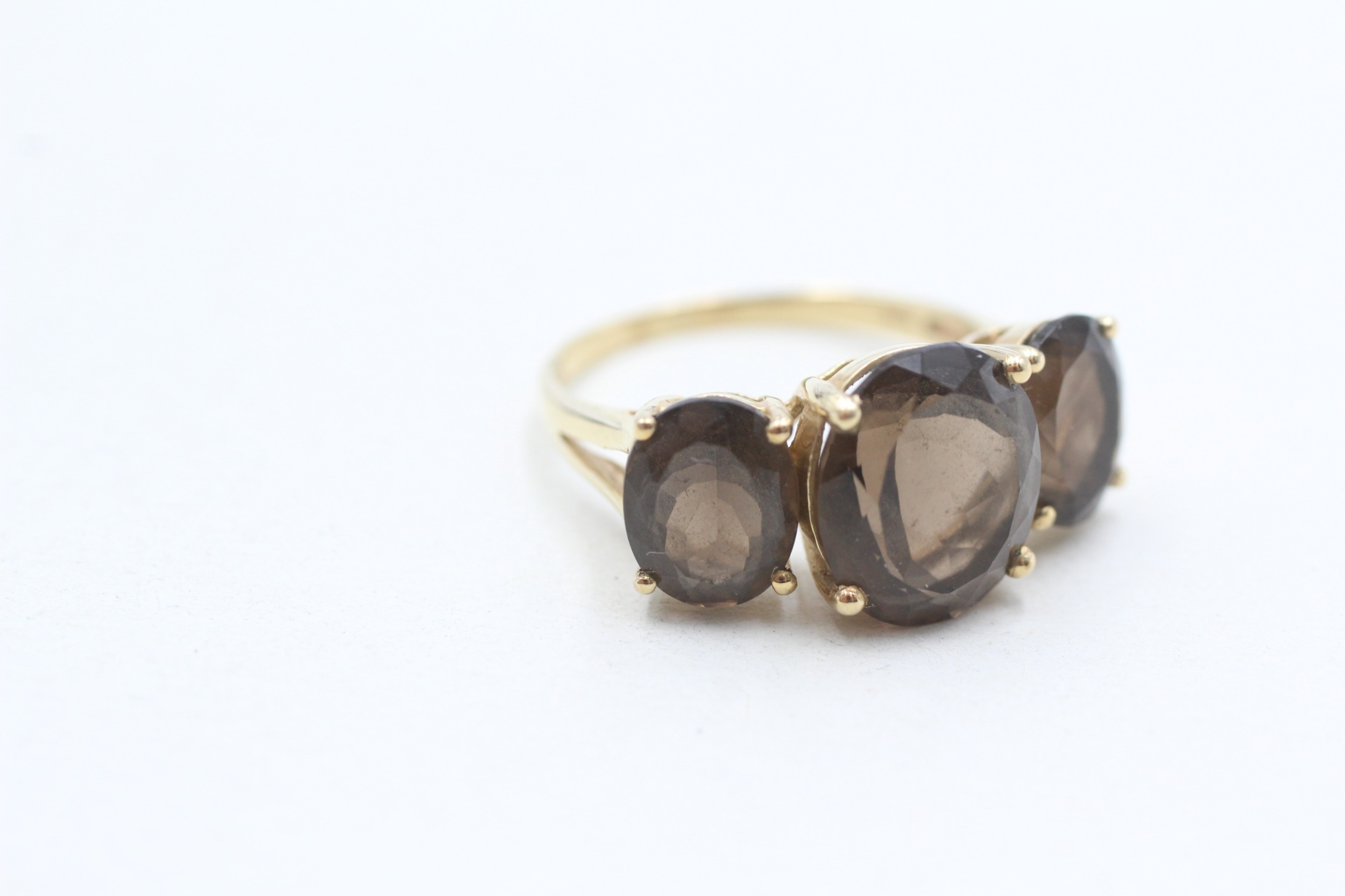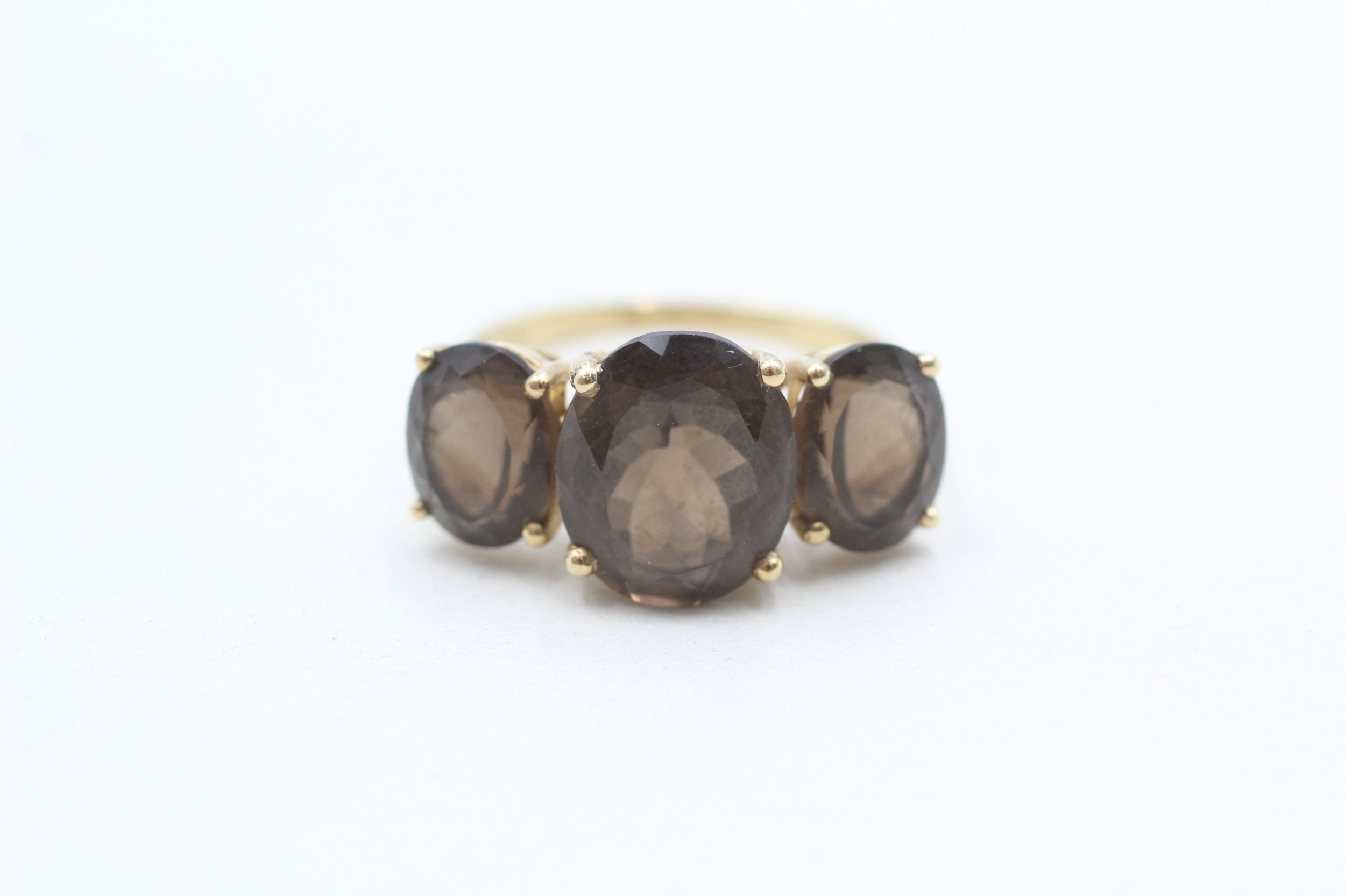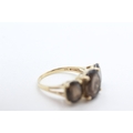 9ct gold smokey quartz set trilogy cocktail ring (4.1g) Size...
