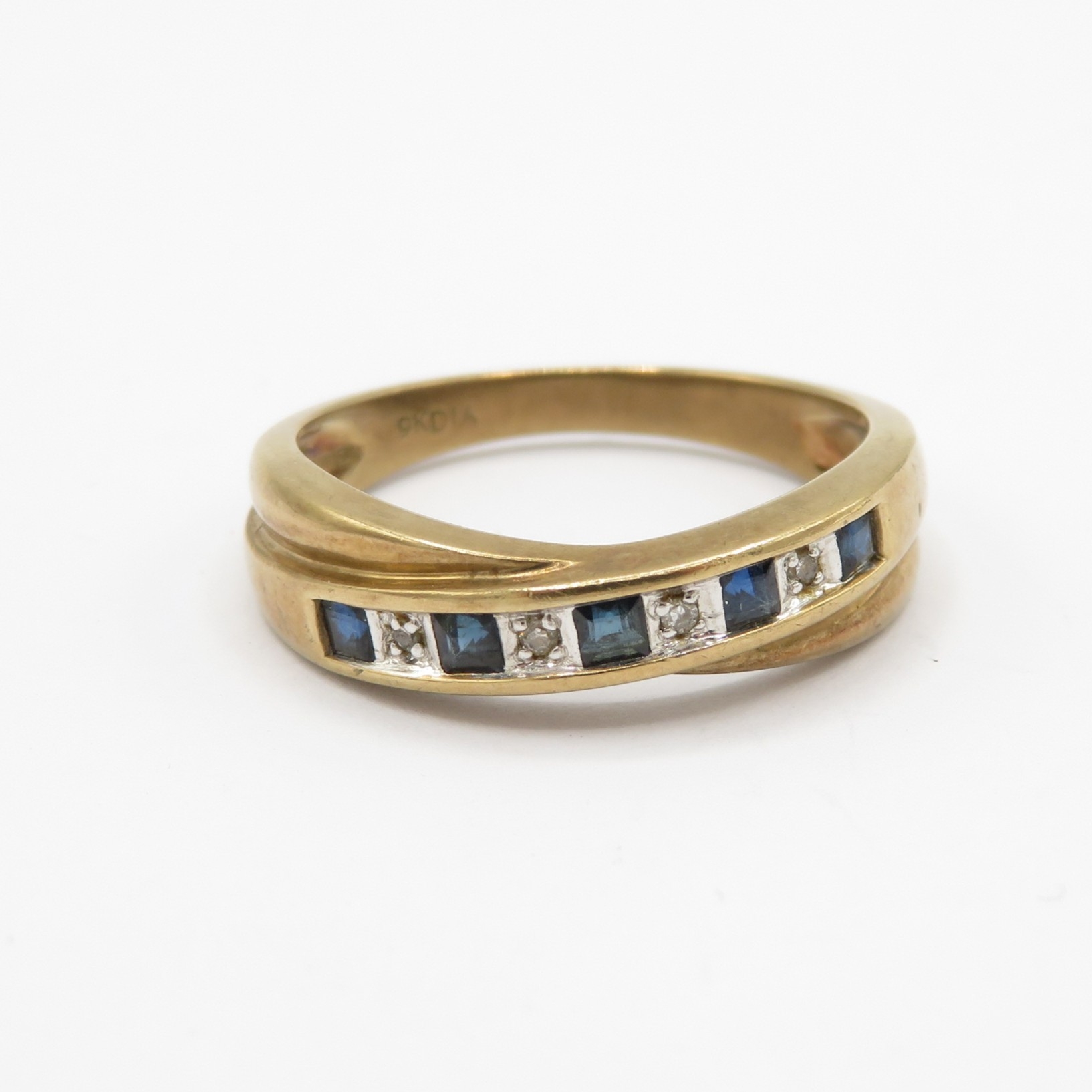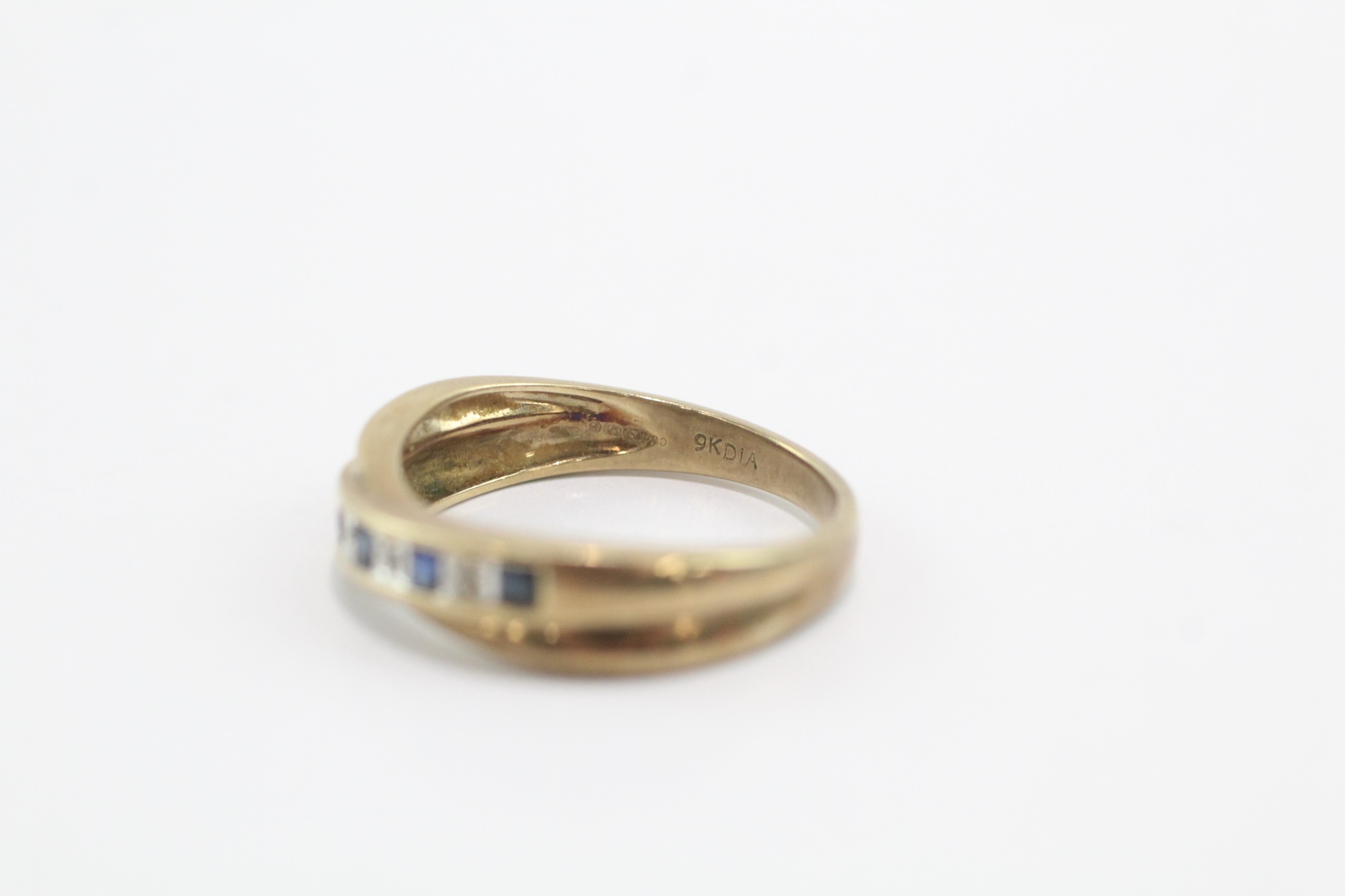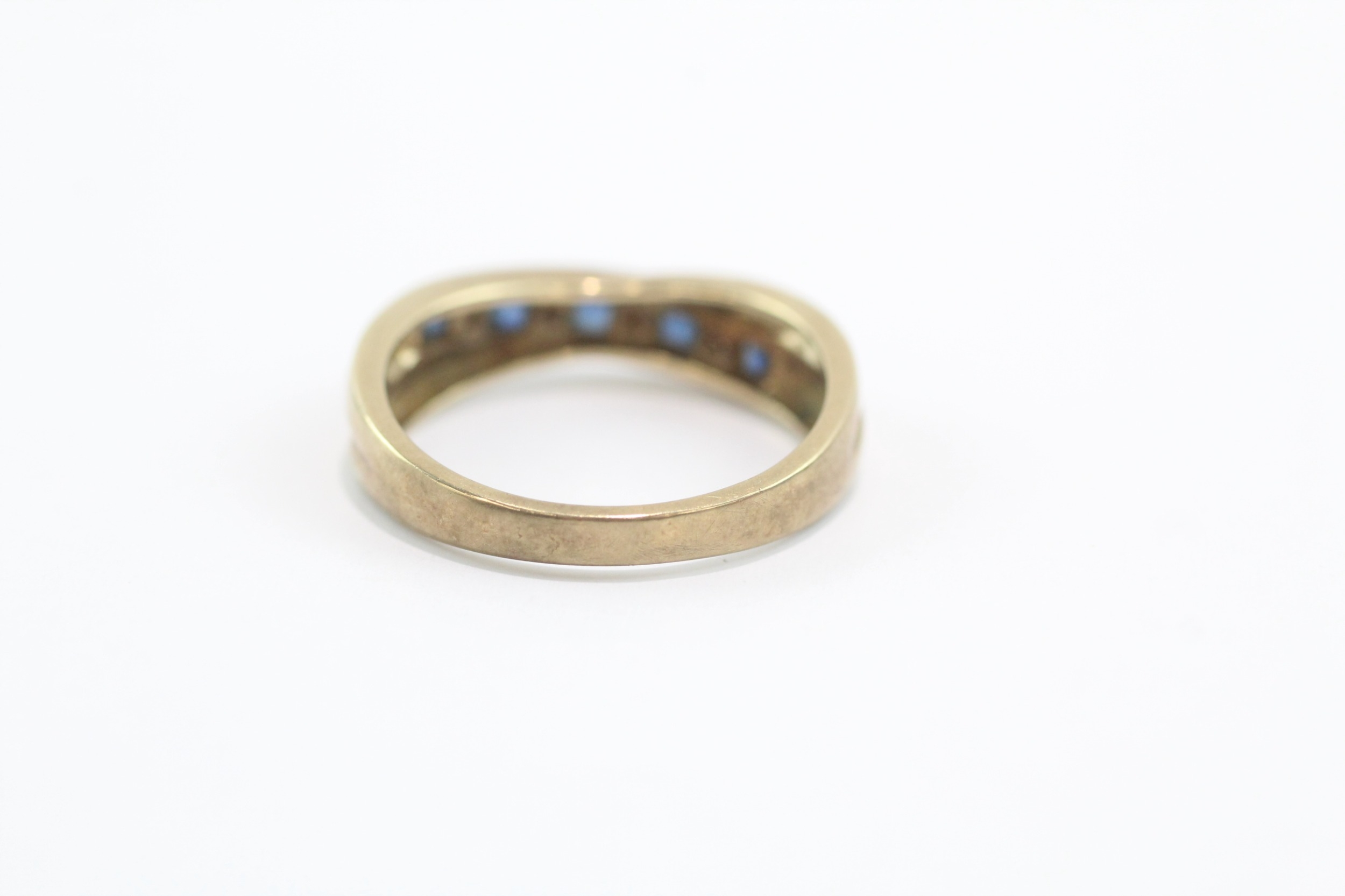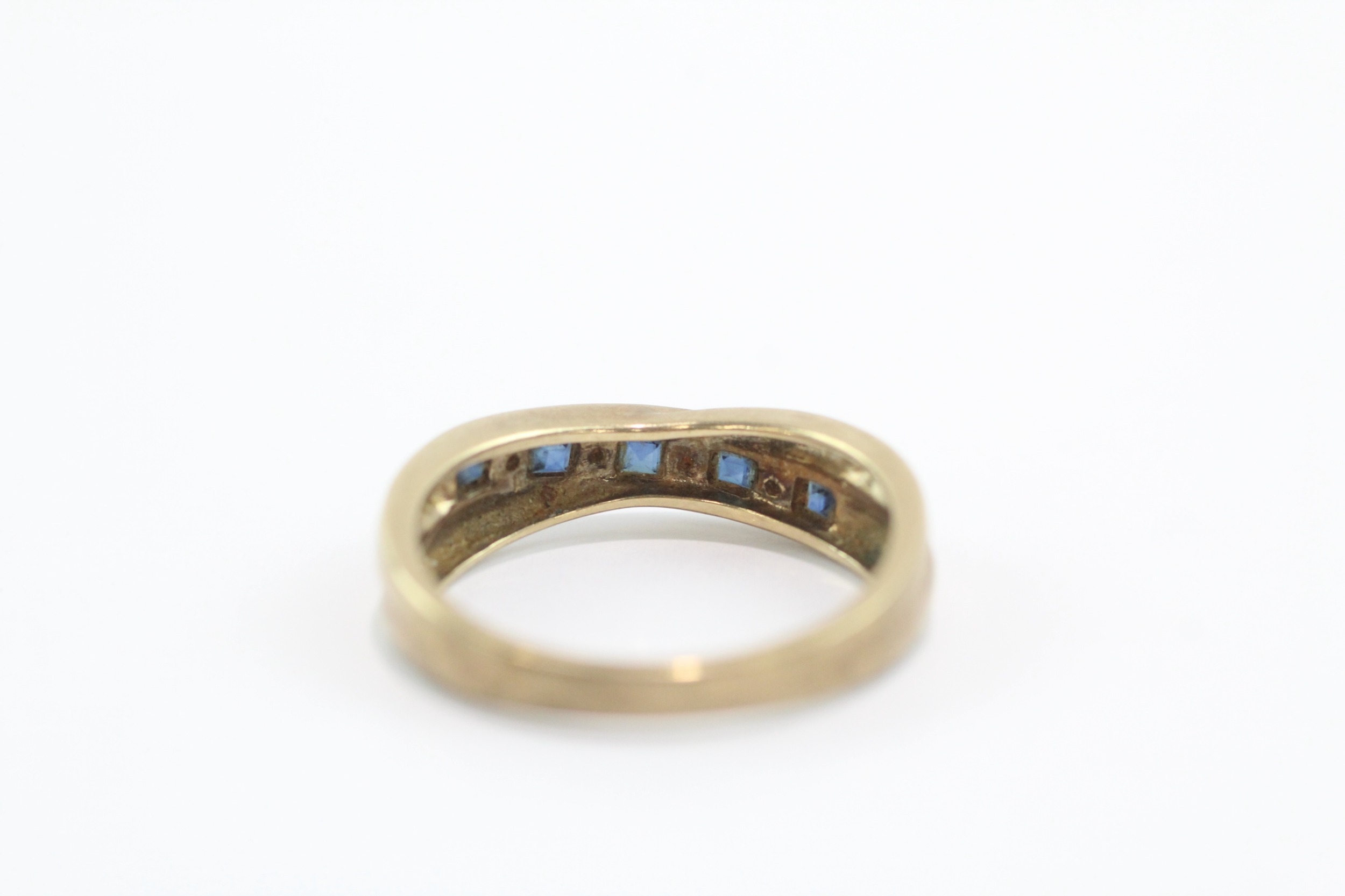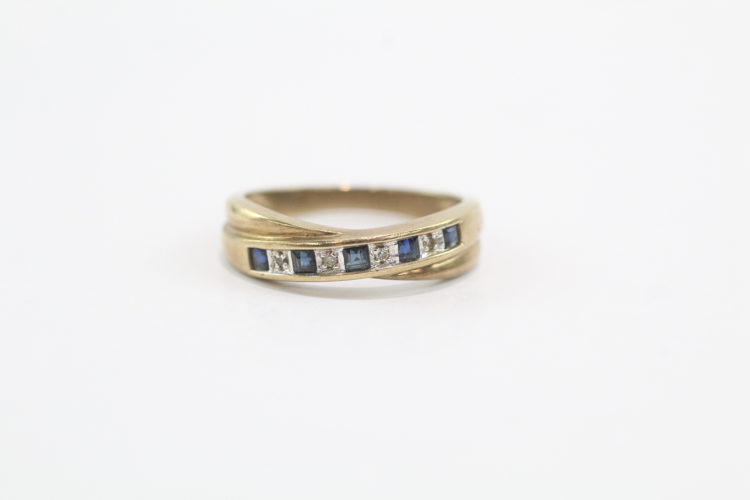9ct gold sapphire diamond half eternity crossover ring (3.1g) Size O