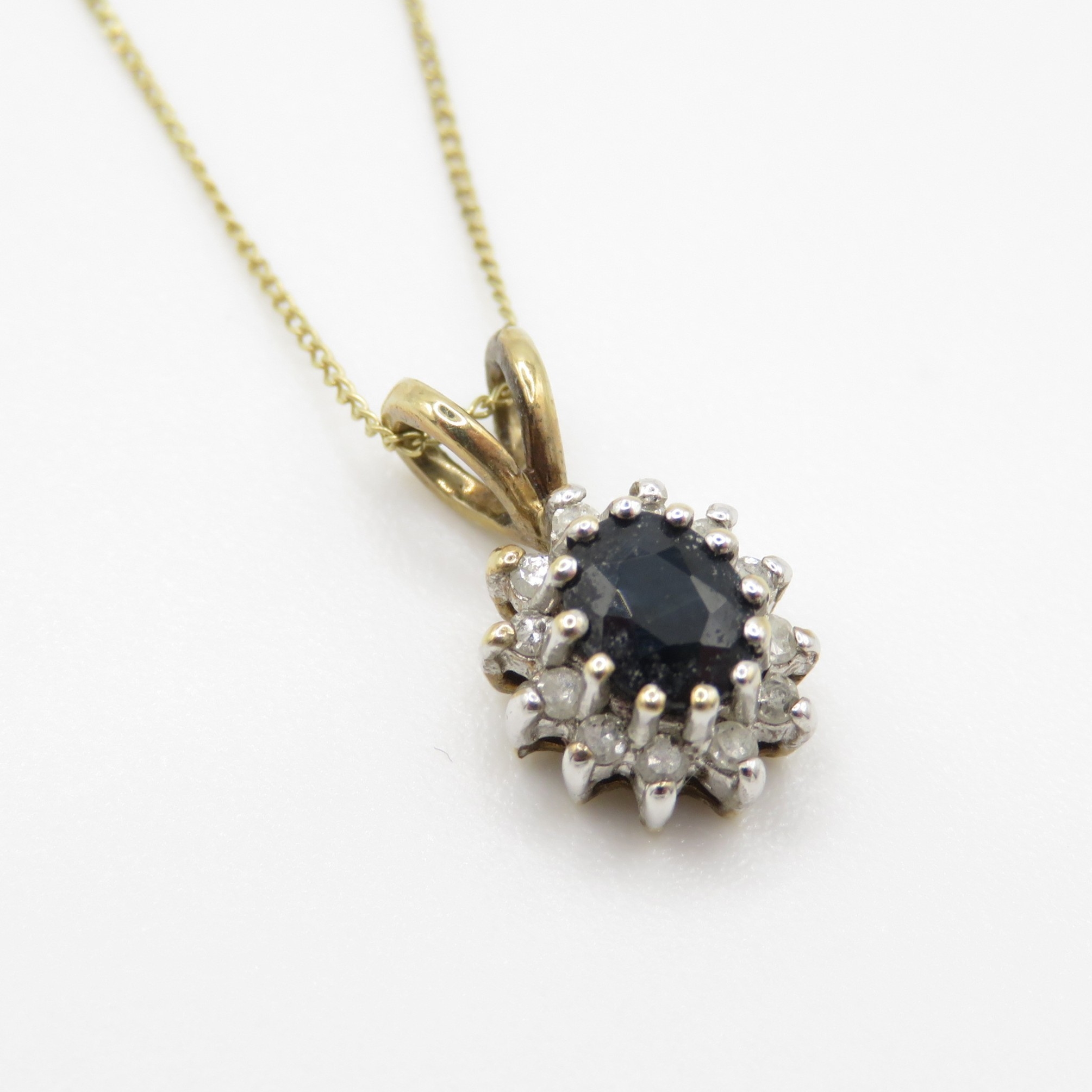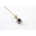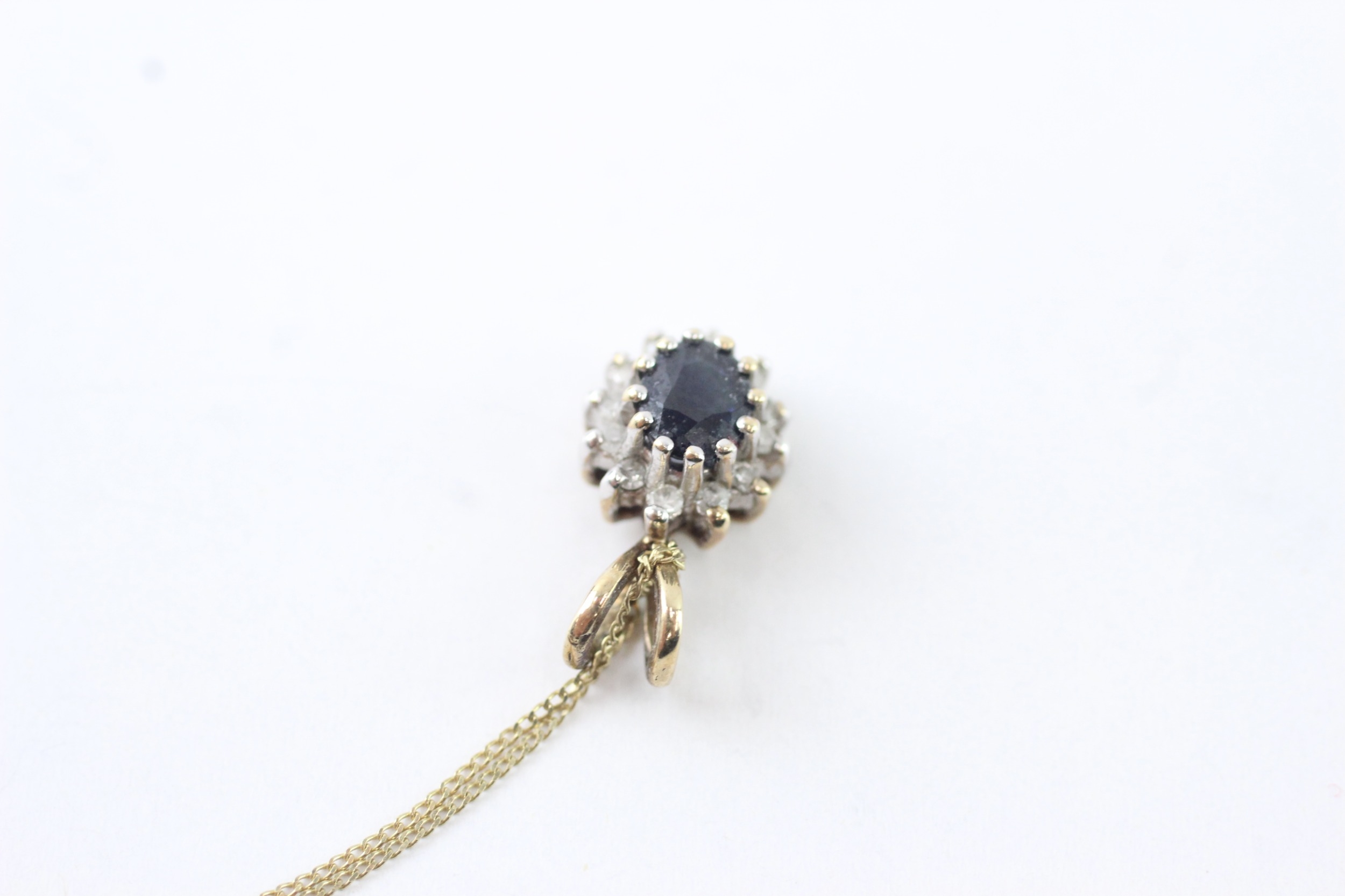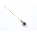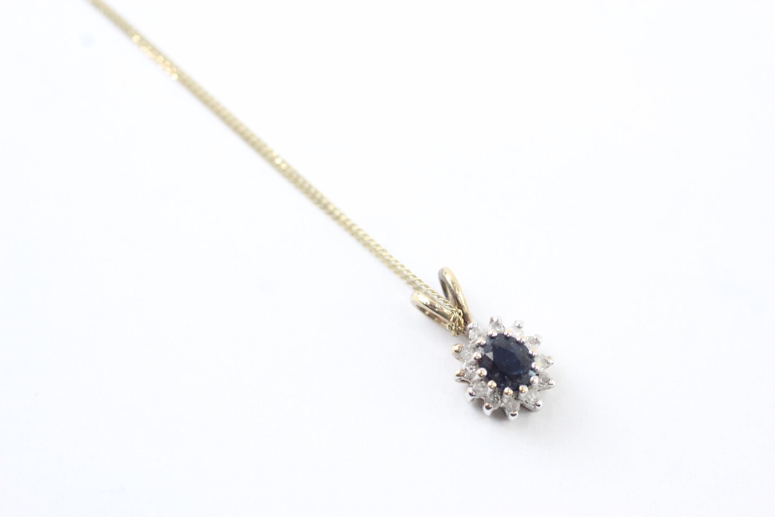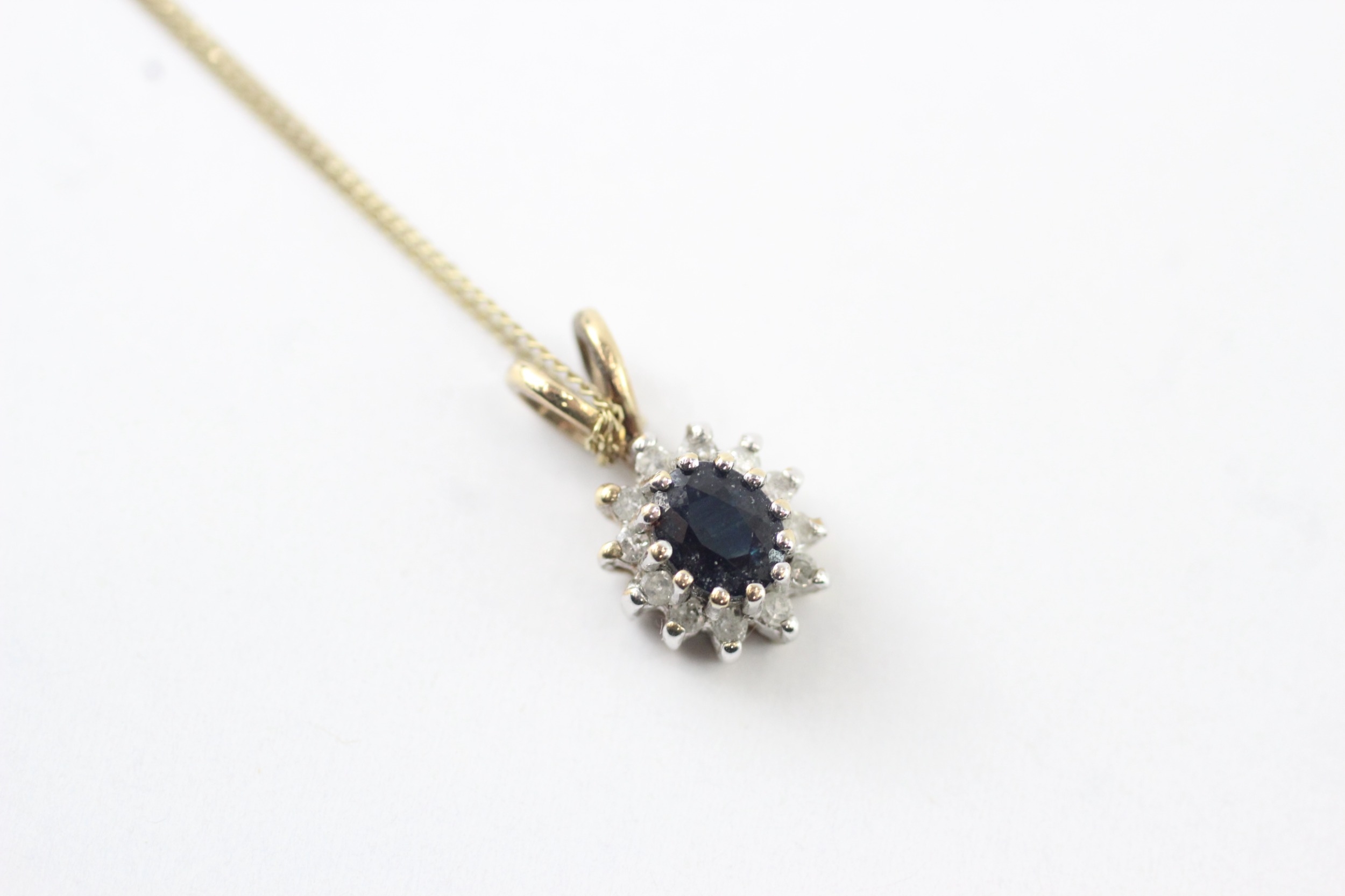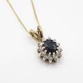 9ct gold sapphire & diamond cluster pendant necklace (1.4g)