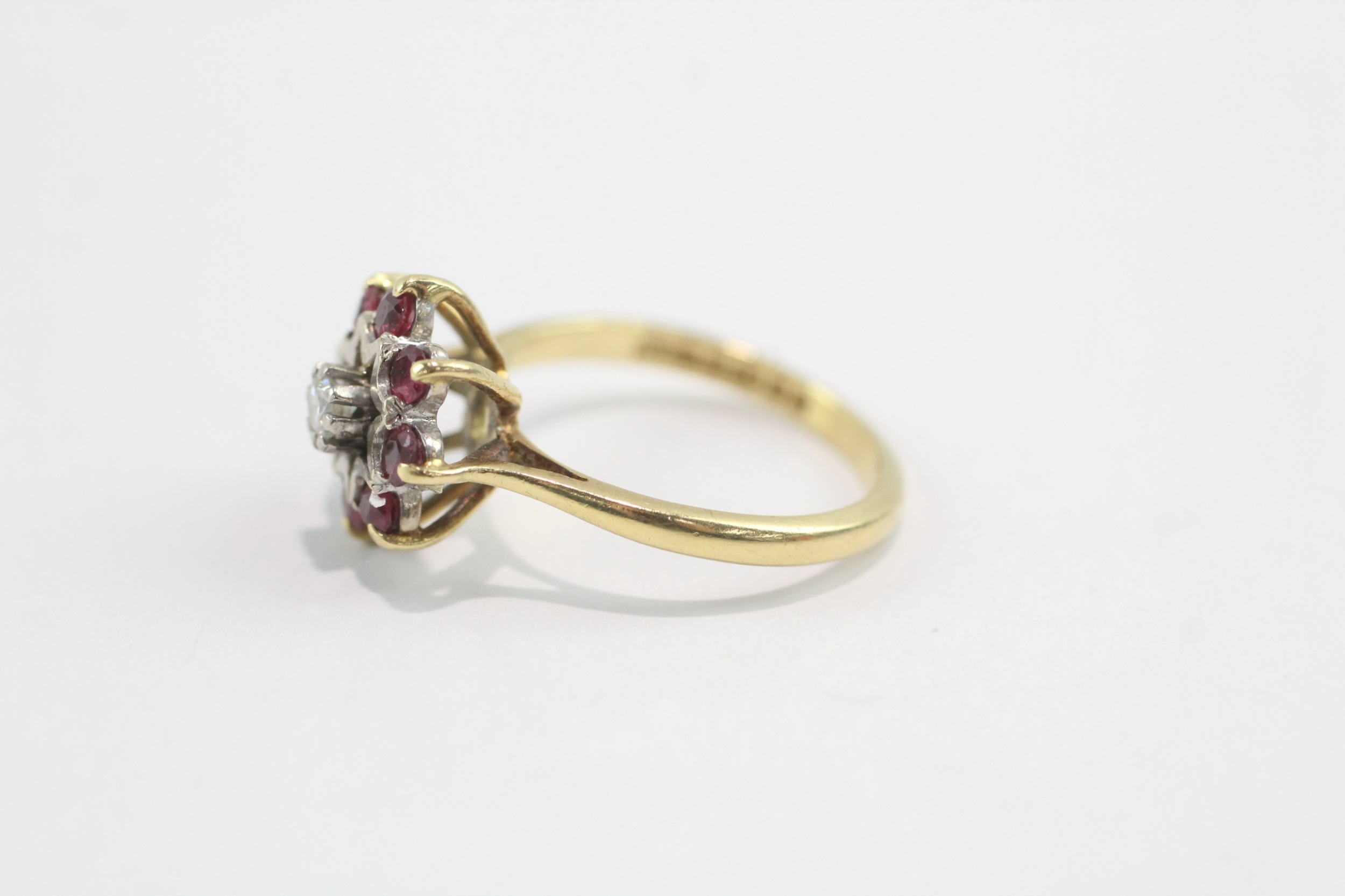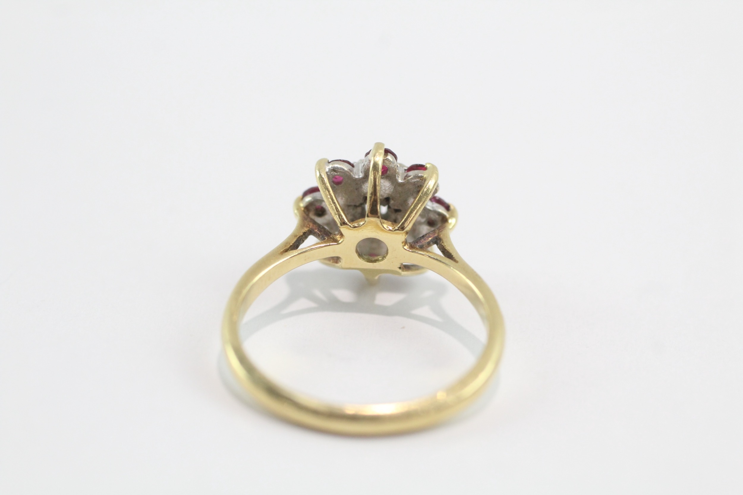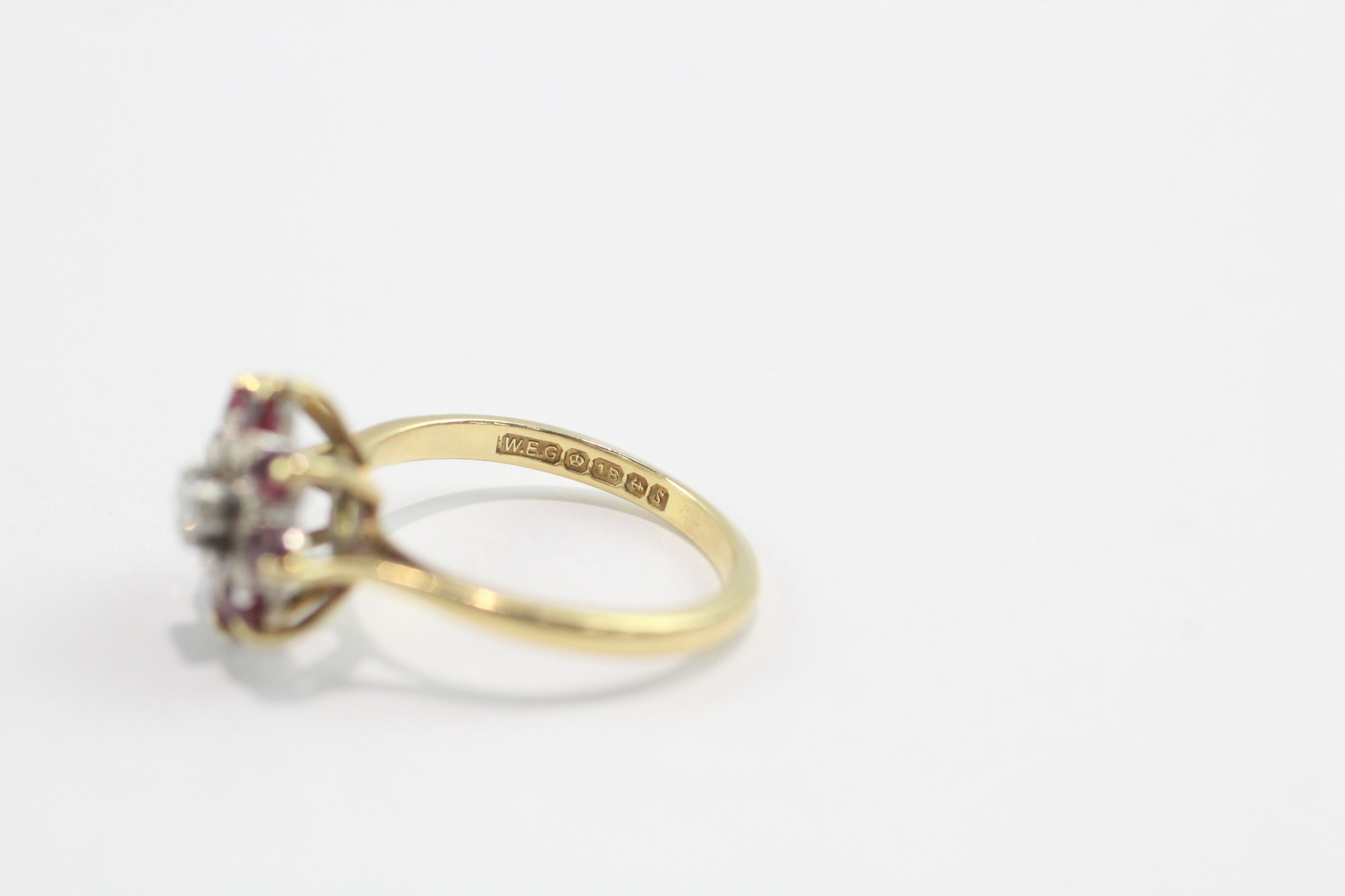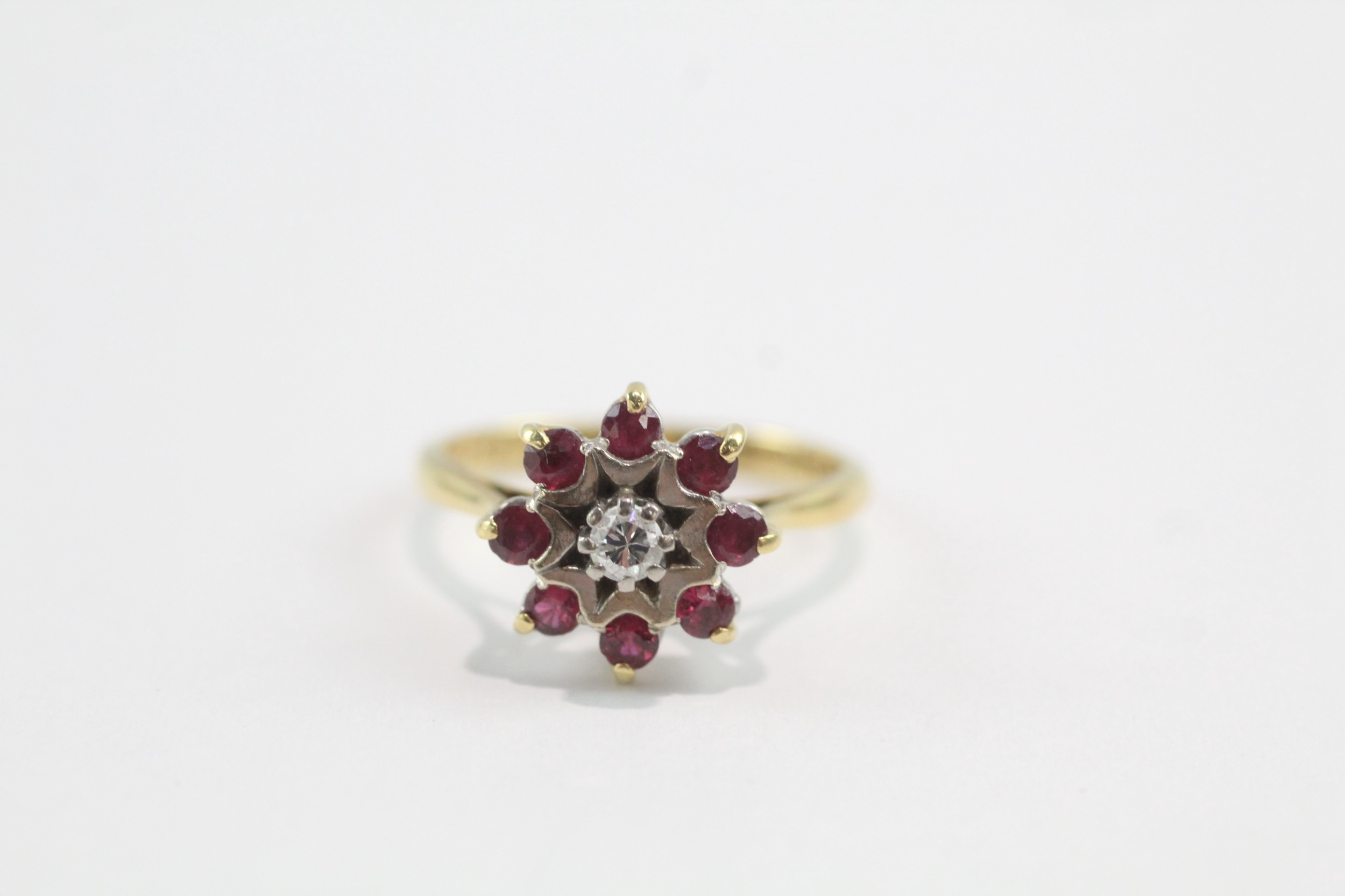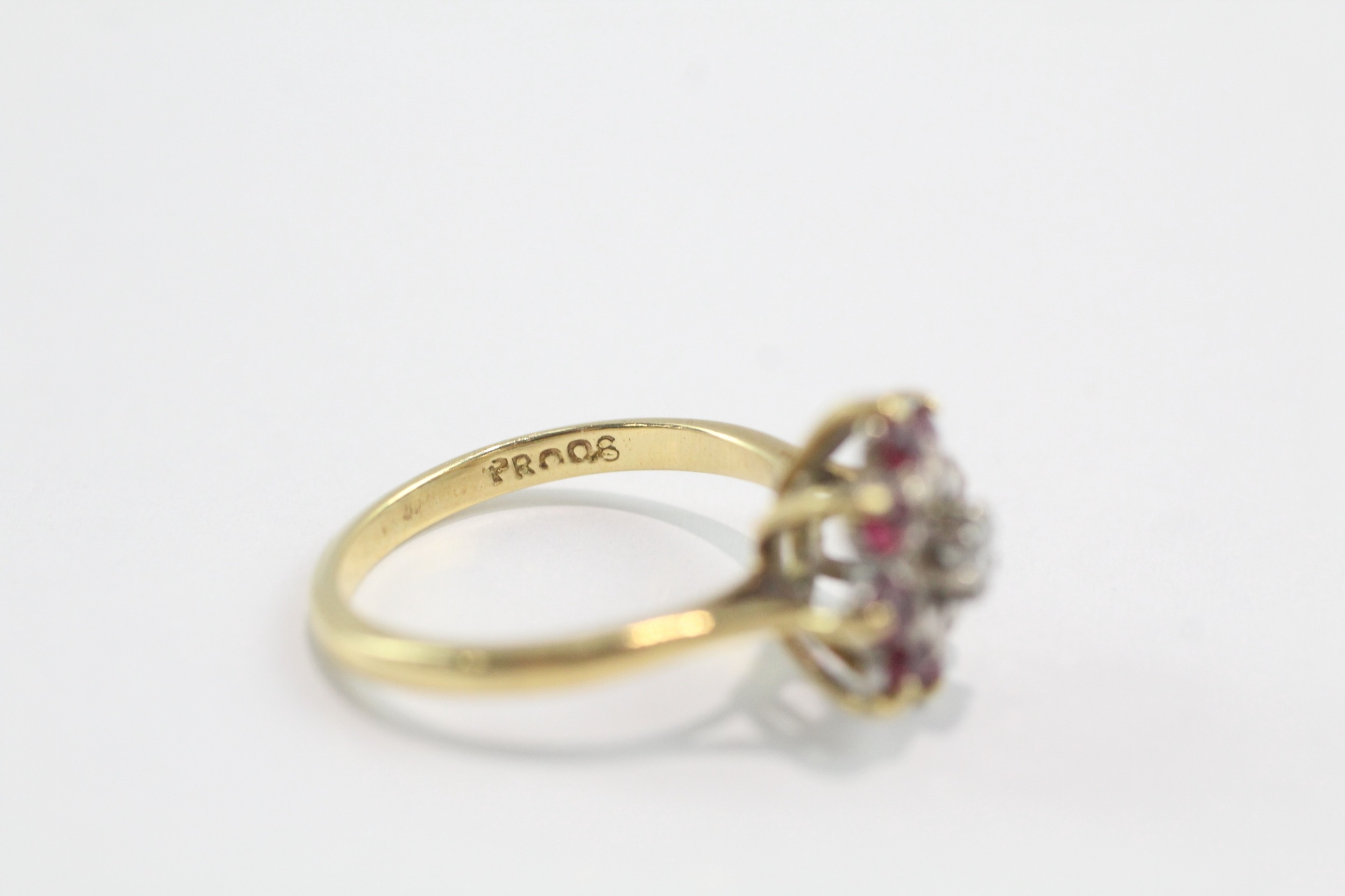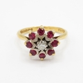 18ct gold diamond ruby cluster ring (3.9g) Size L