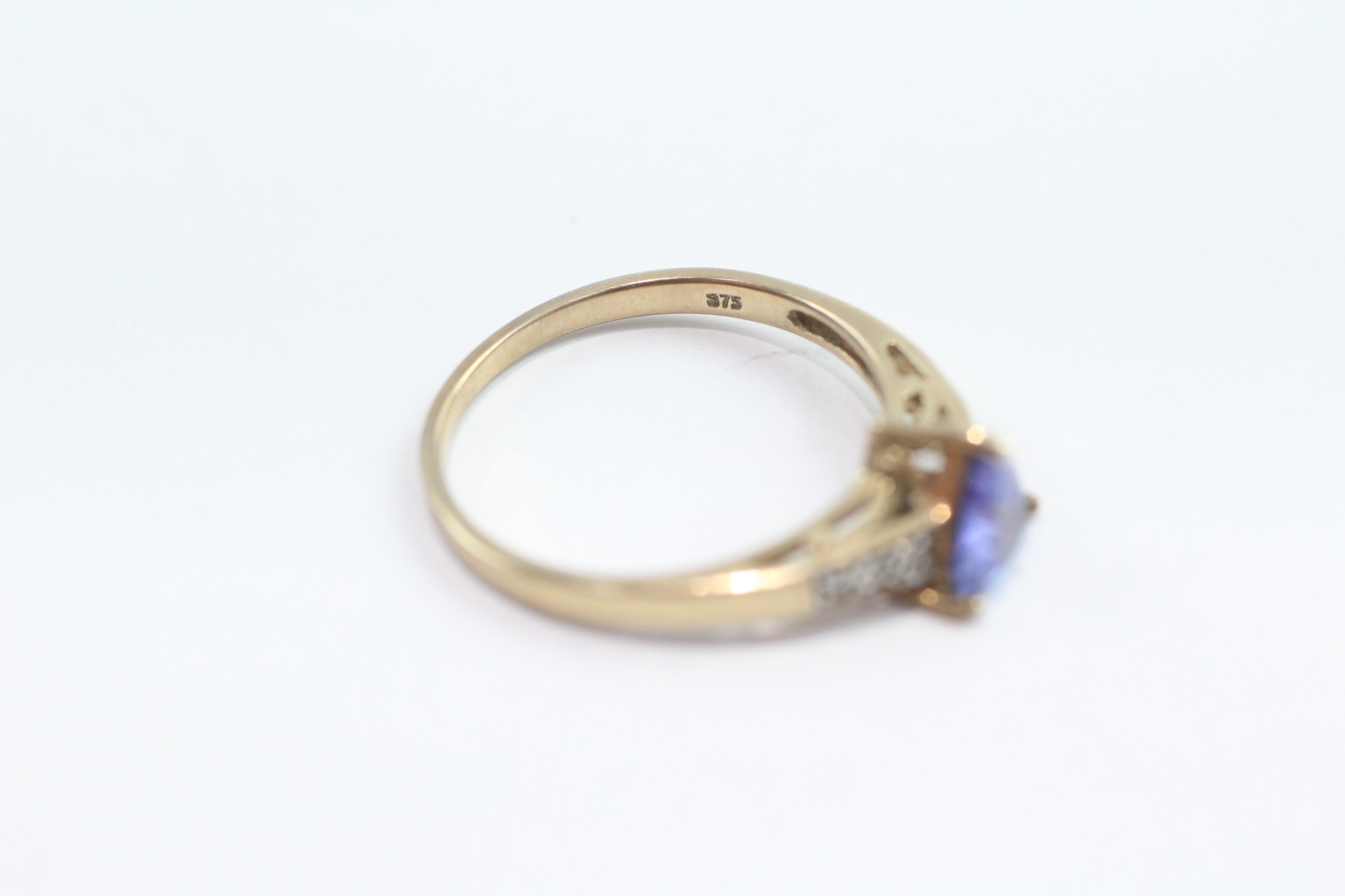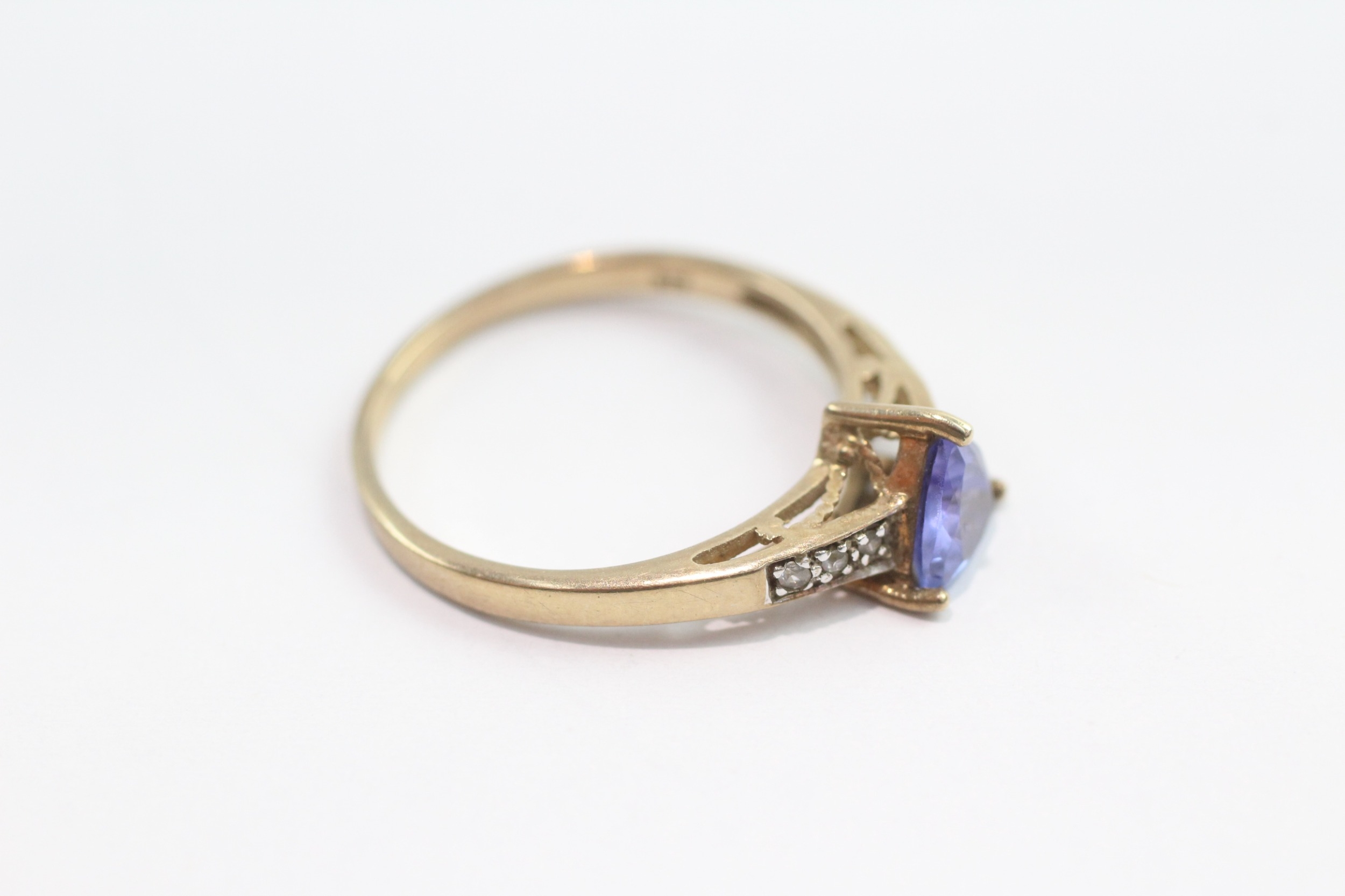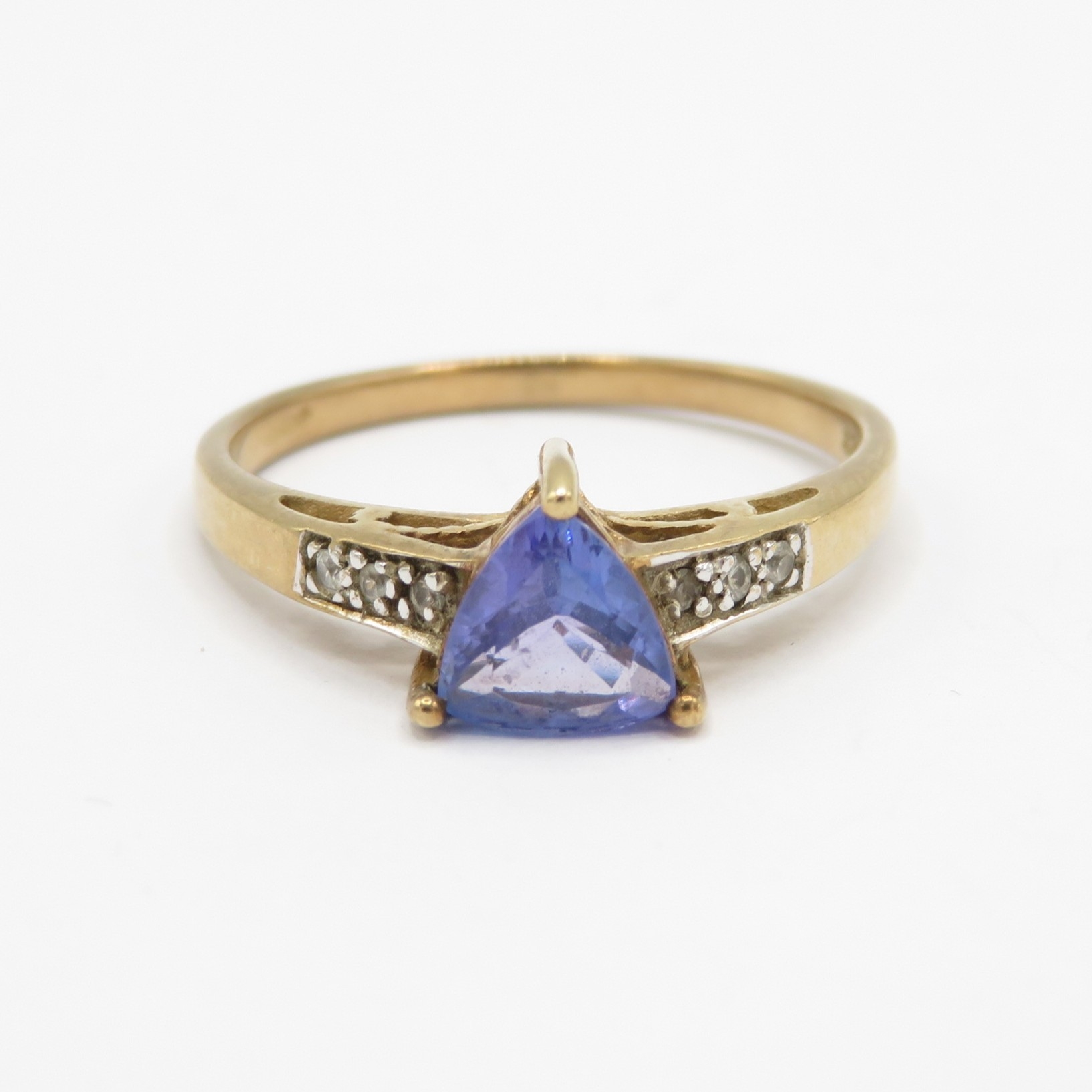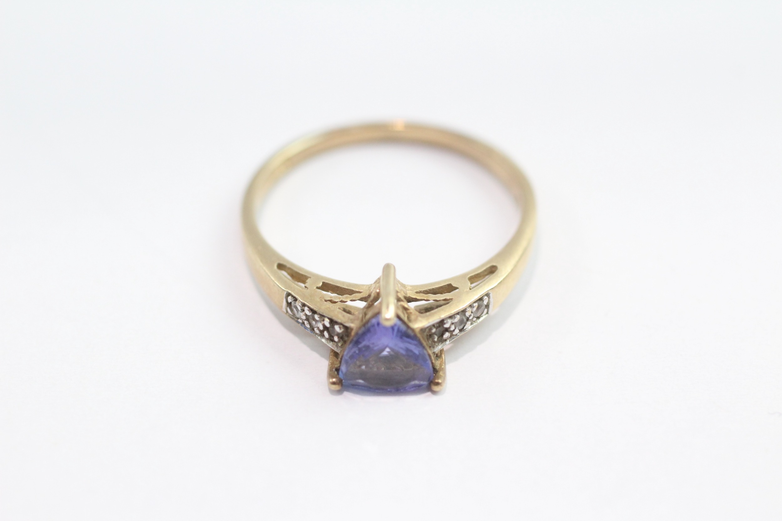 9ct gold tanzanite and white gemstone ring (1.8g) Size N