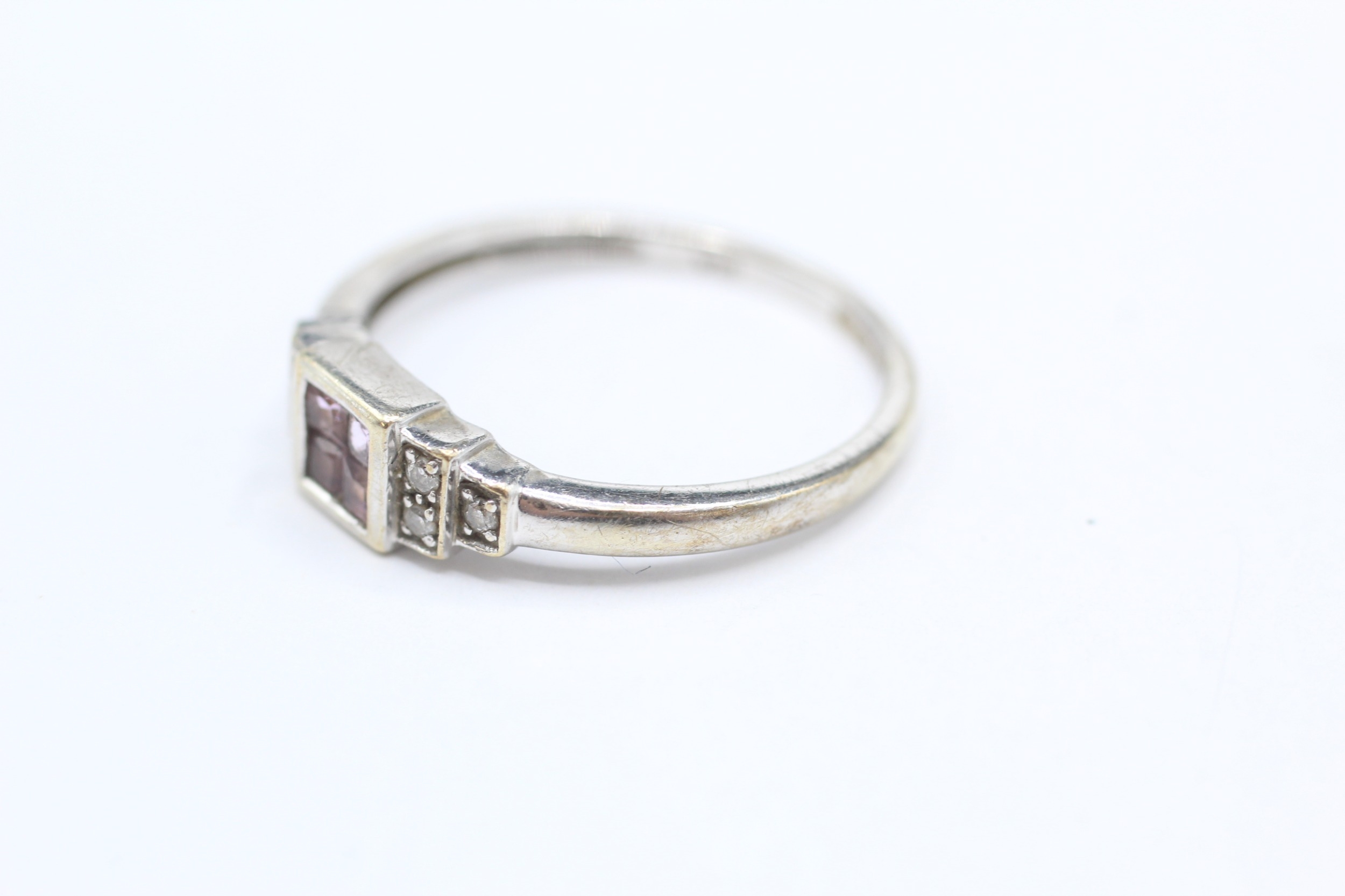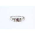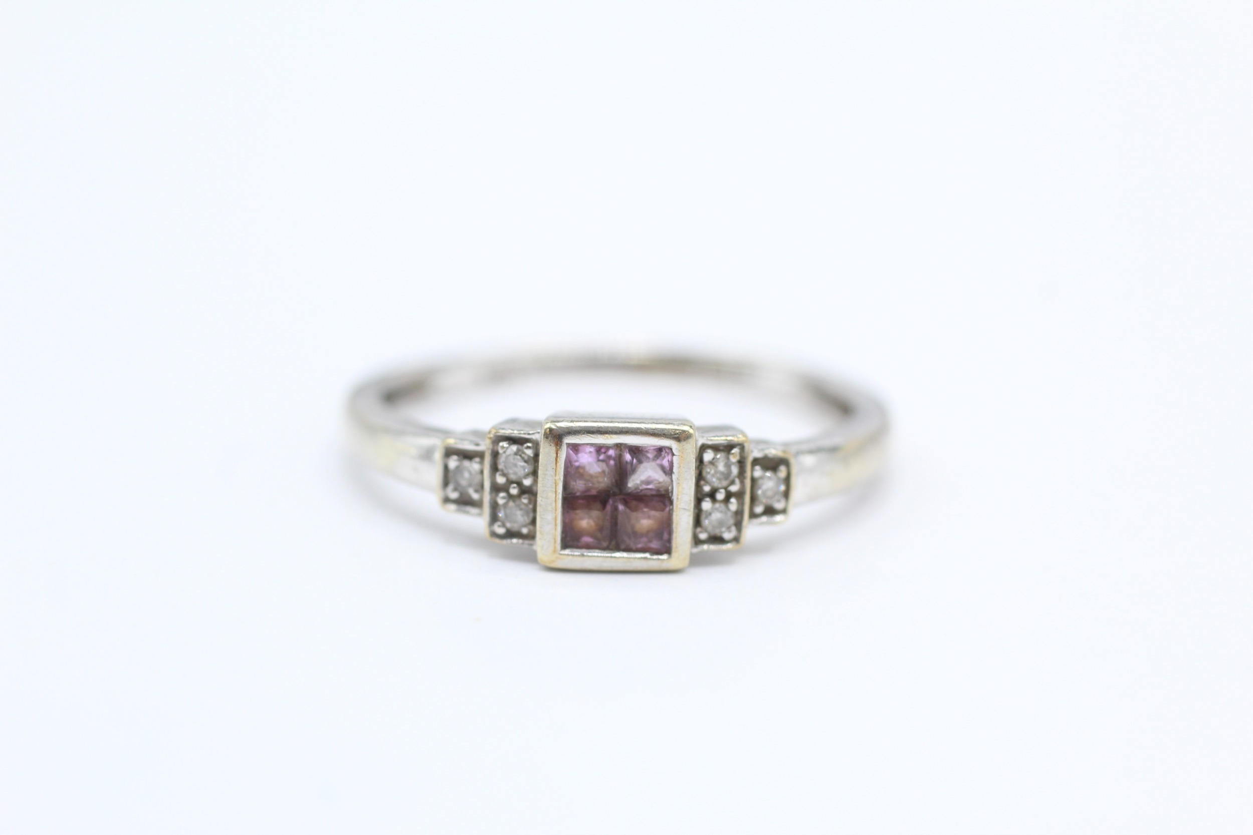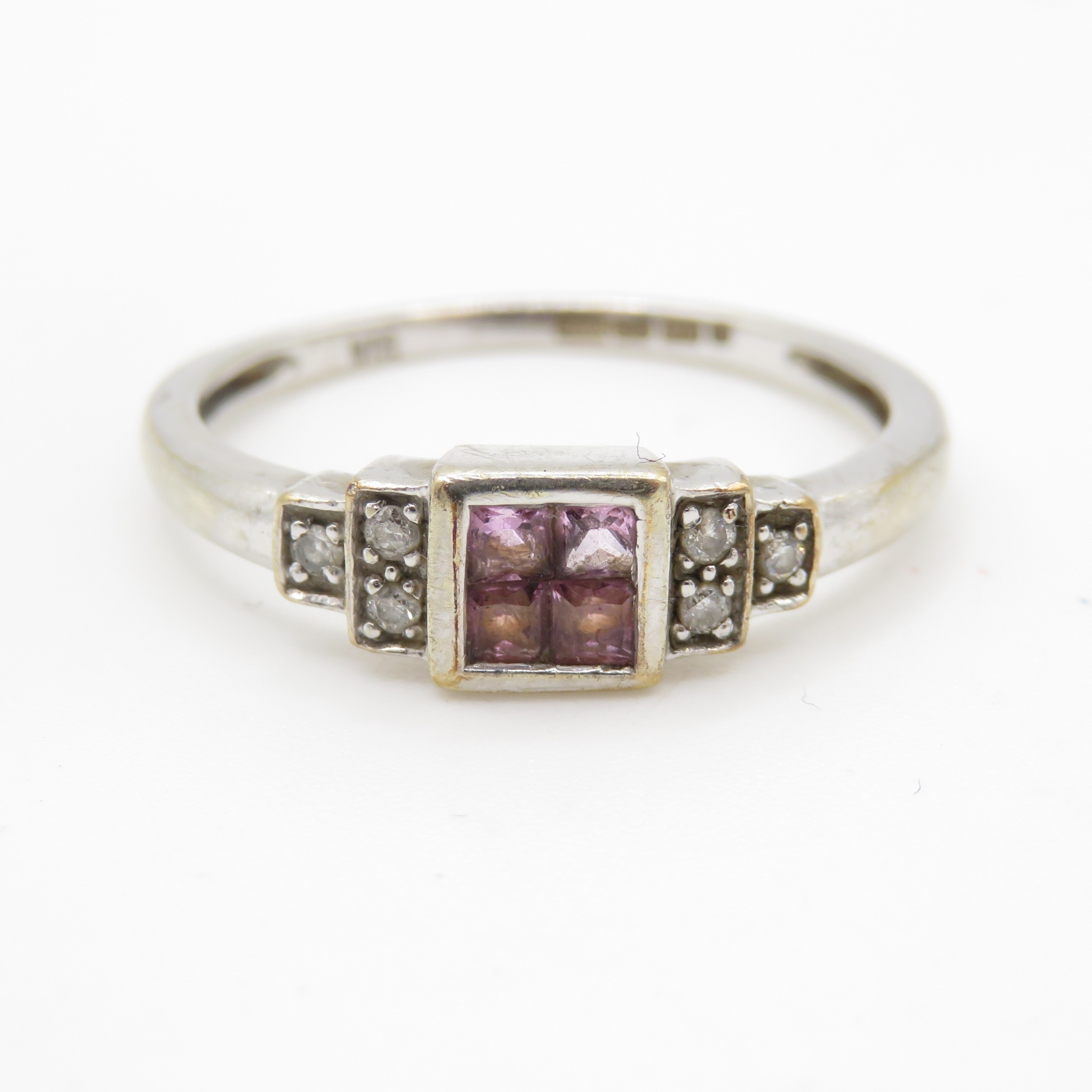 9ct white gold diamond and pink sapphire dress ring (2.3g) Size R