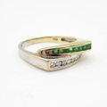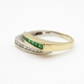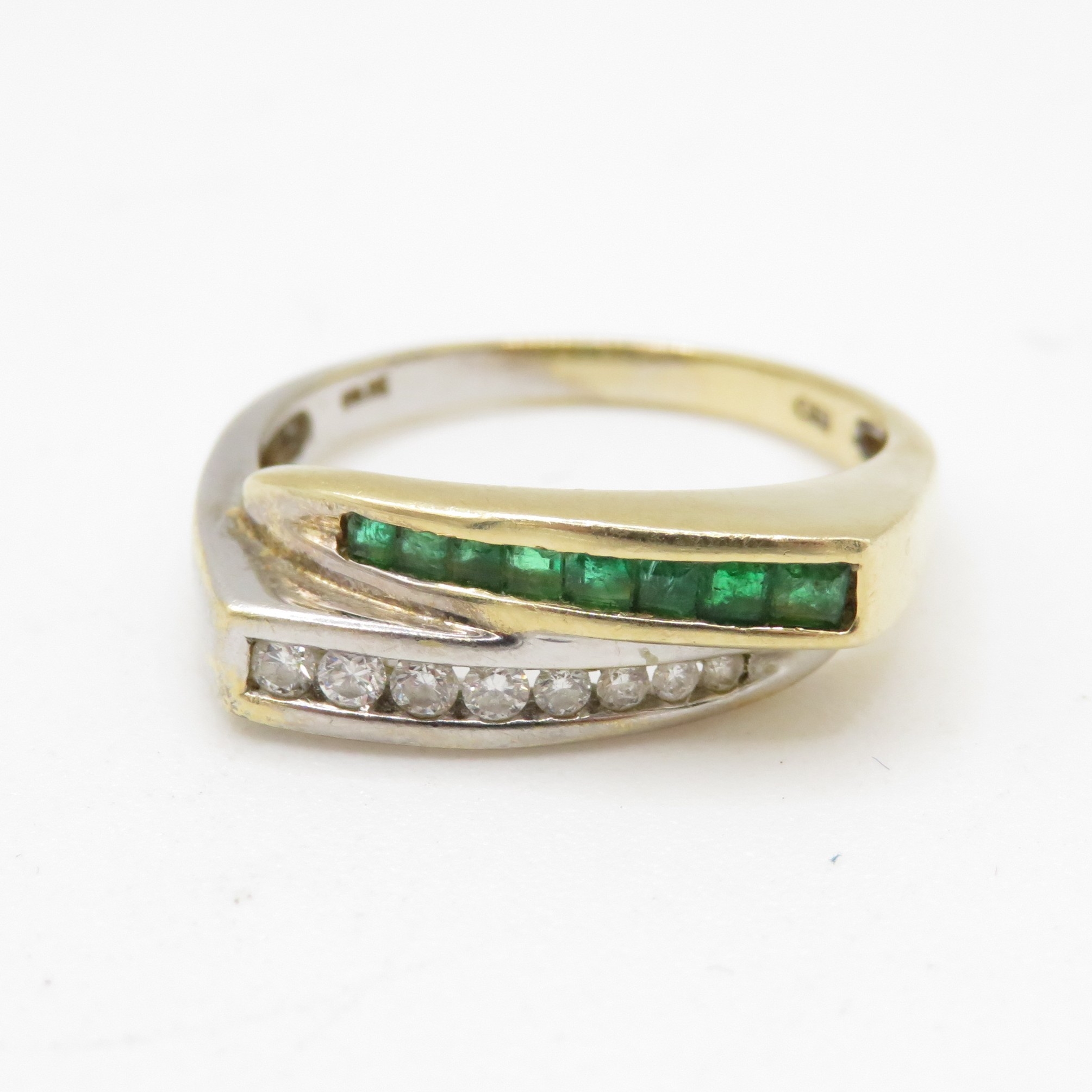 14ct vari-hue gold diamond and emerald ring (4.1g) Size Q