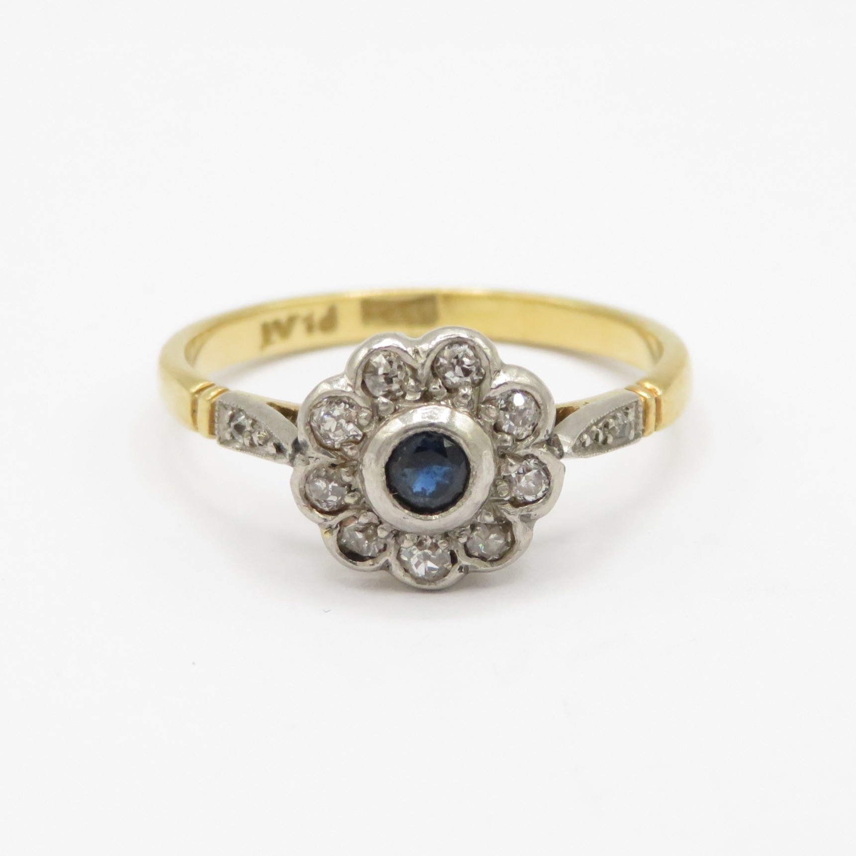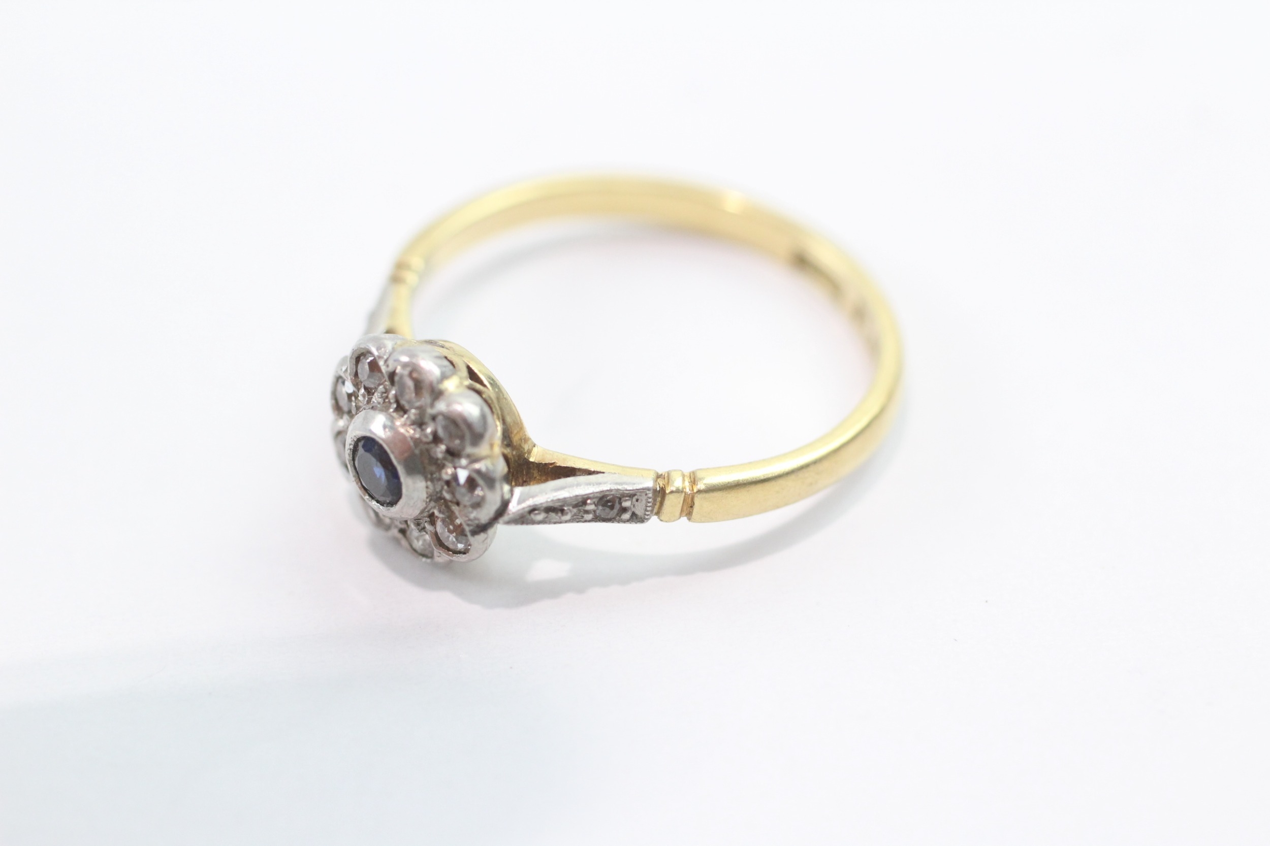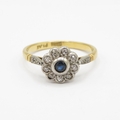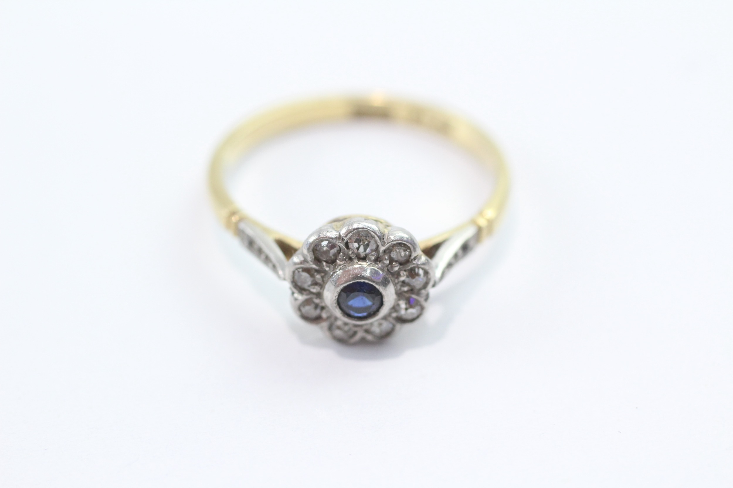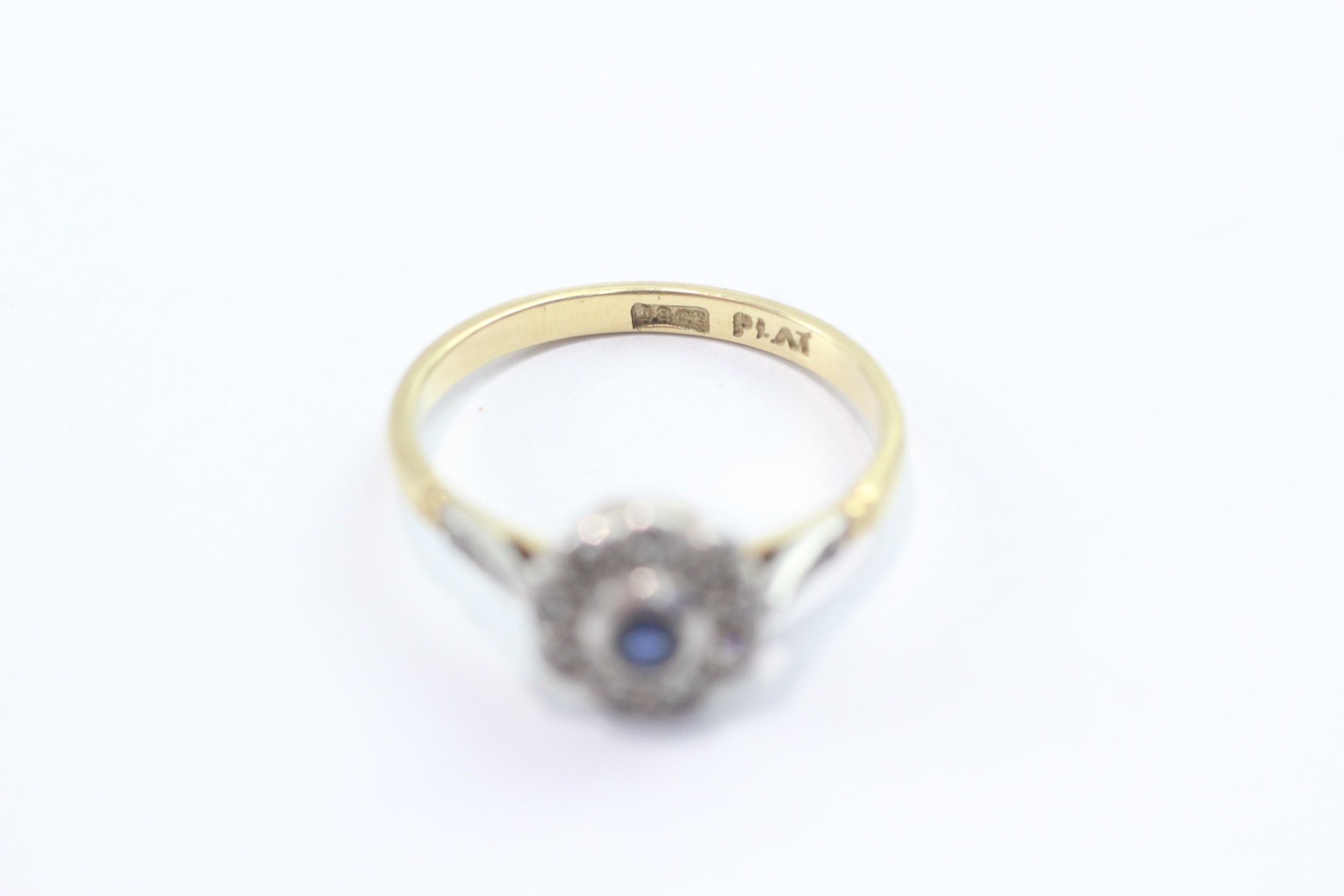 18ct gold platinum sapphire diamond cluster ring (2.8g) Size P