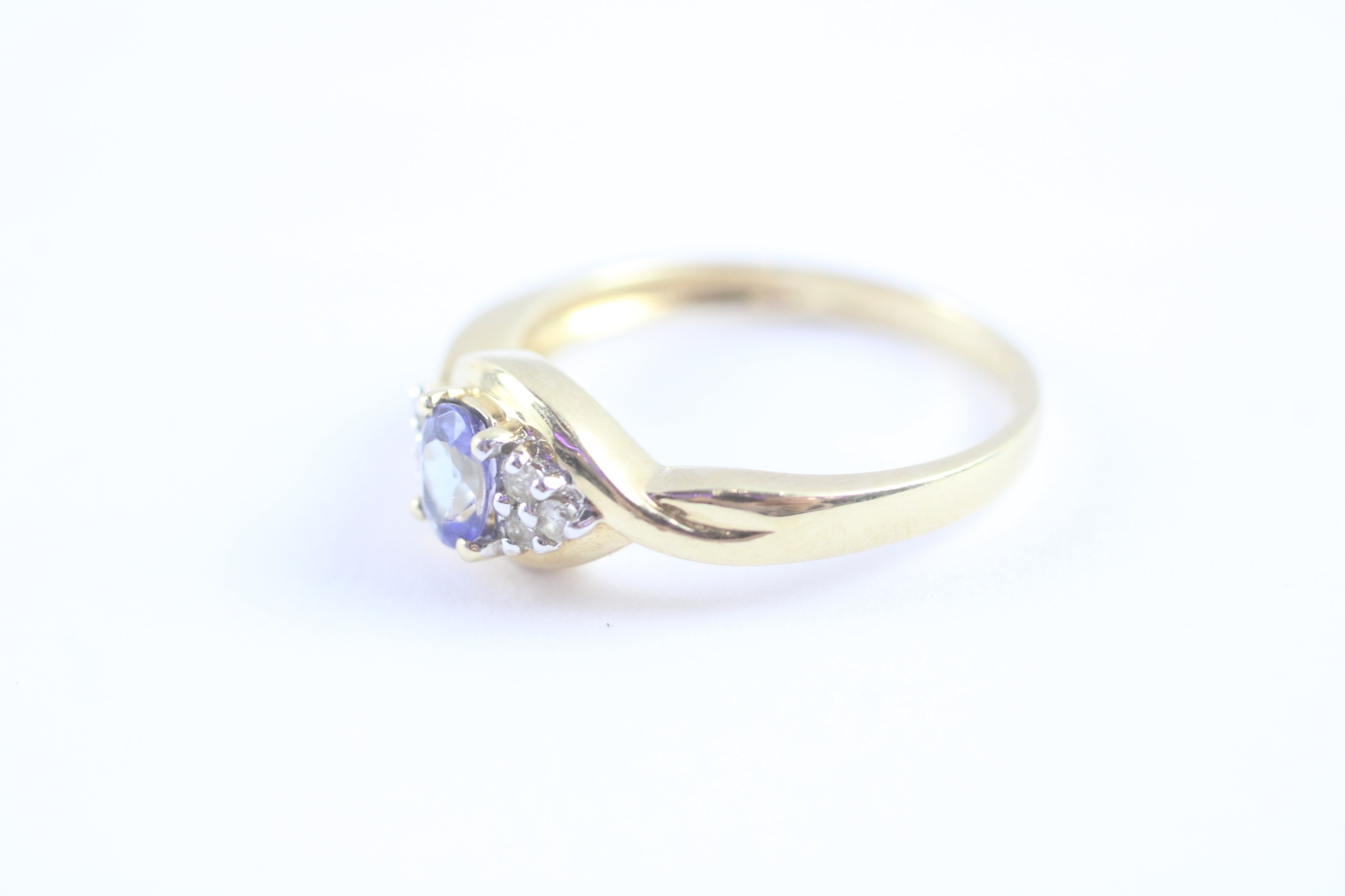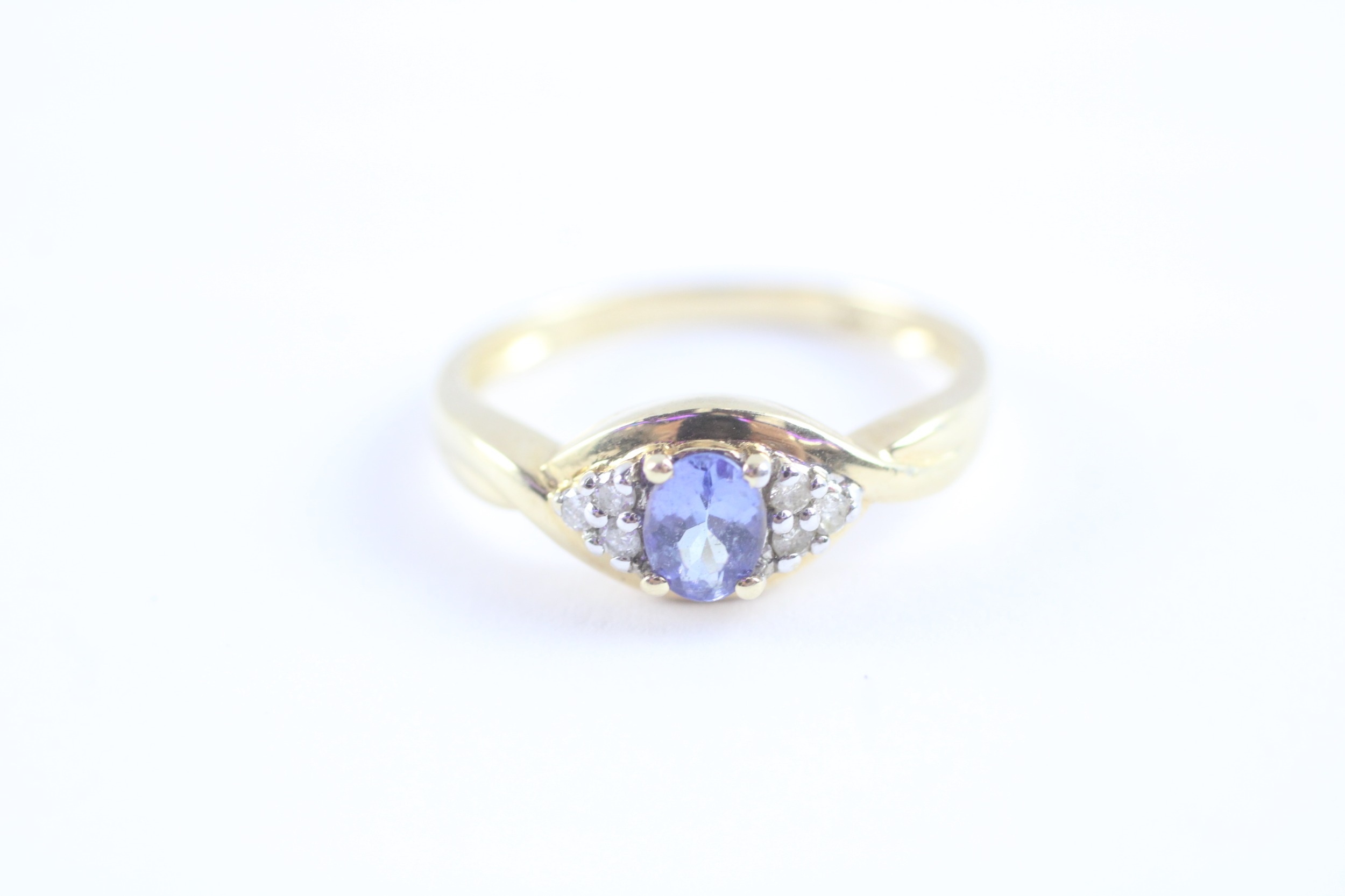 14ct gold tanzanite & diamond dress ring (2.8g) Size N