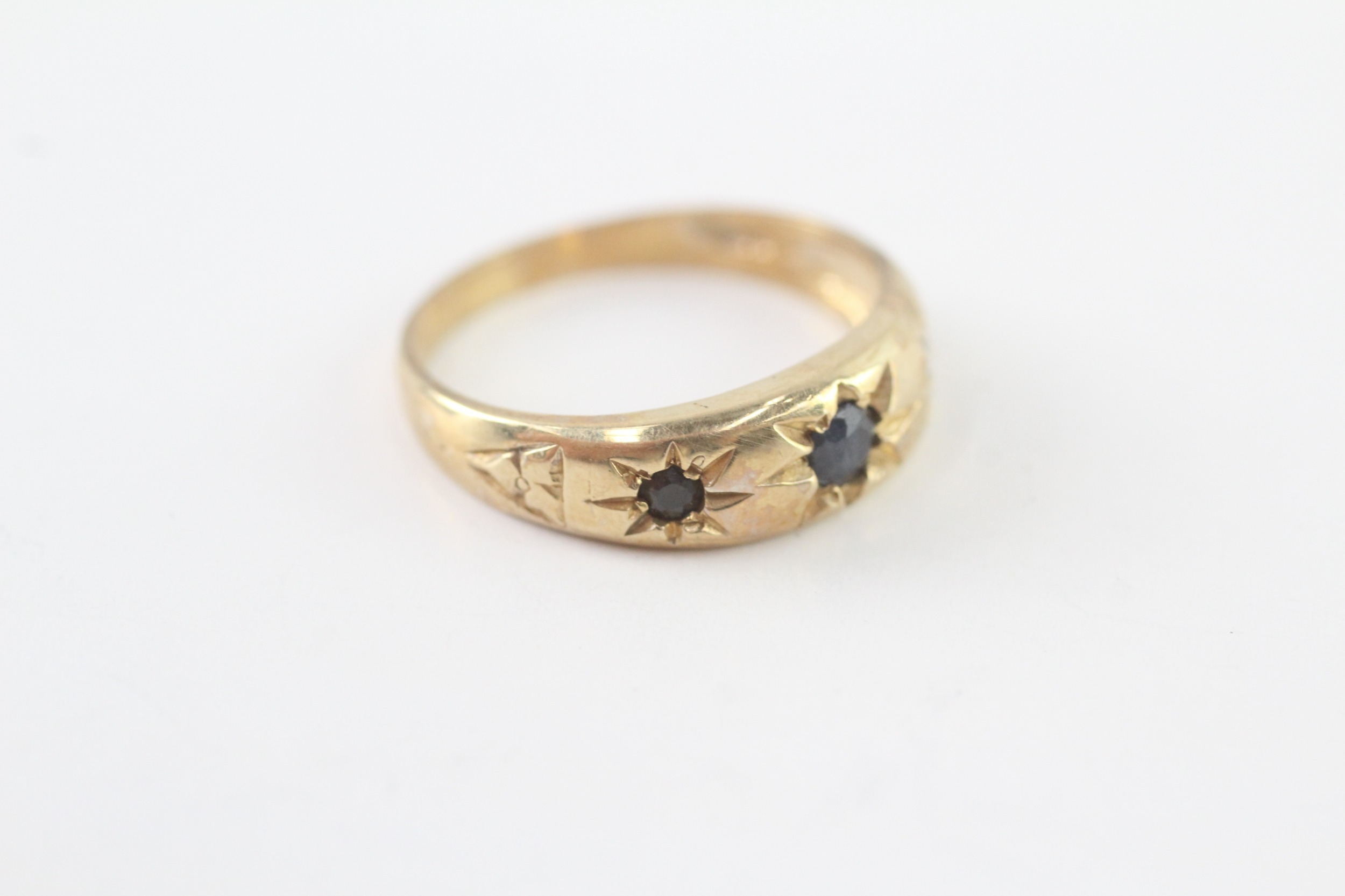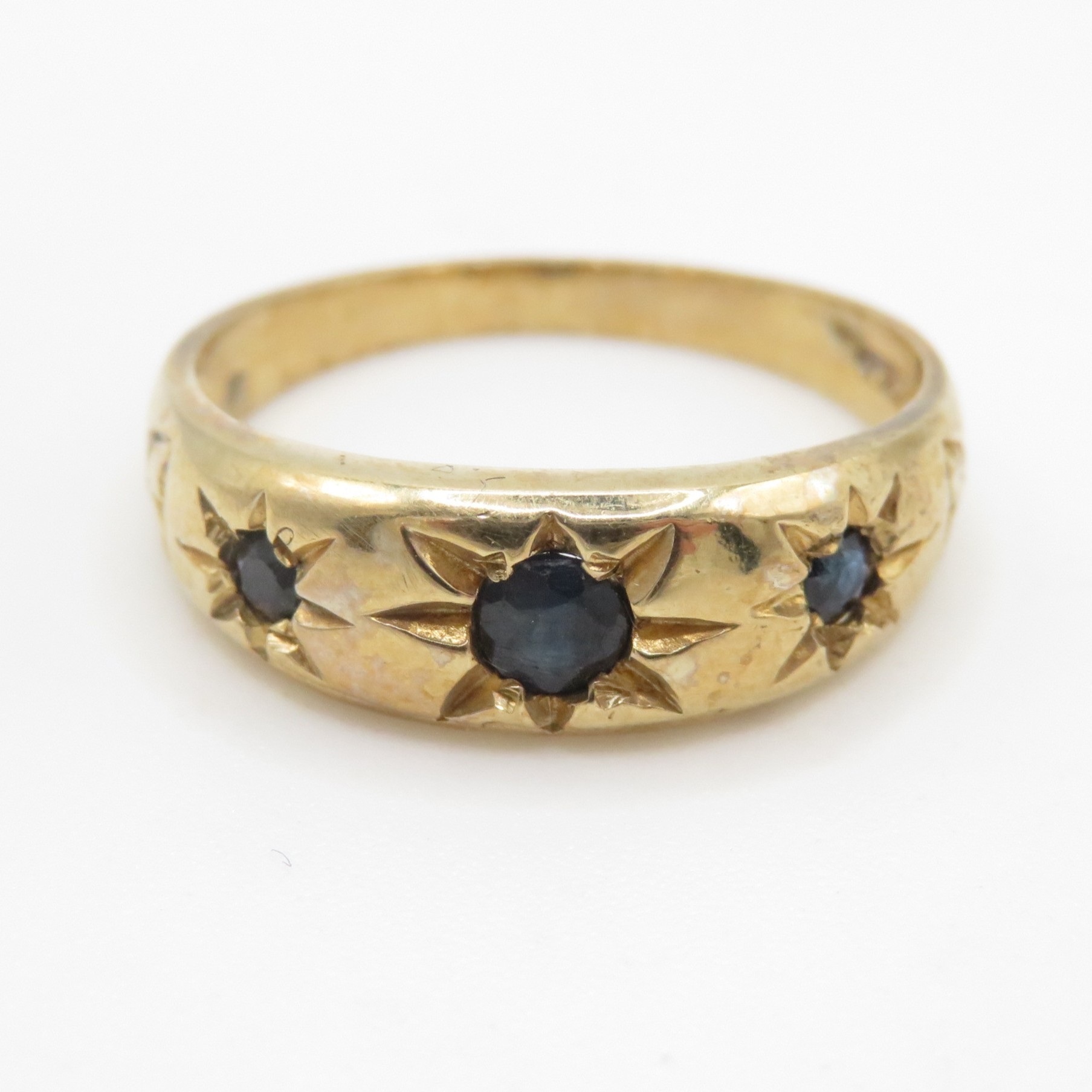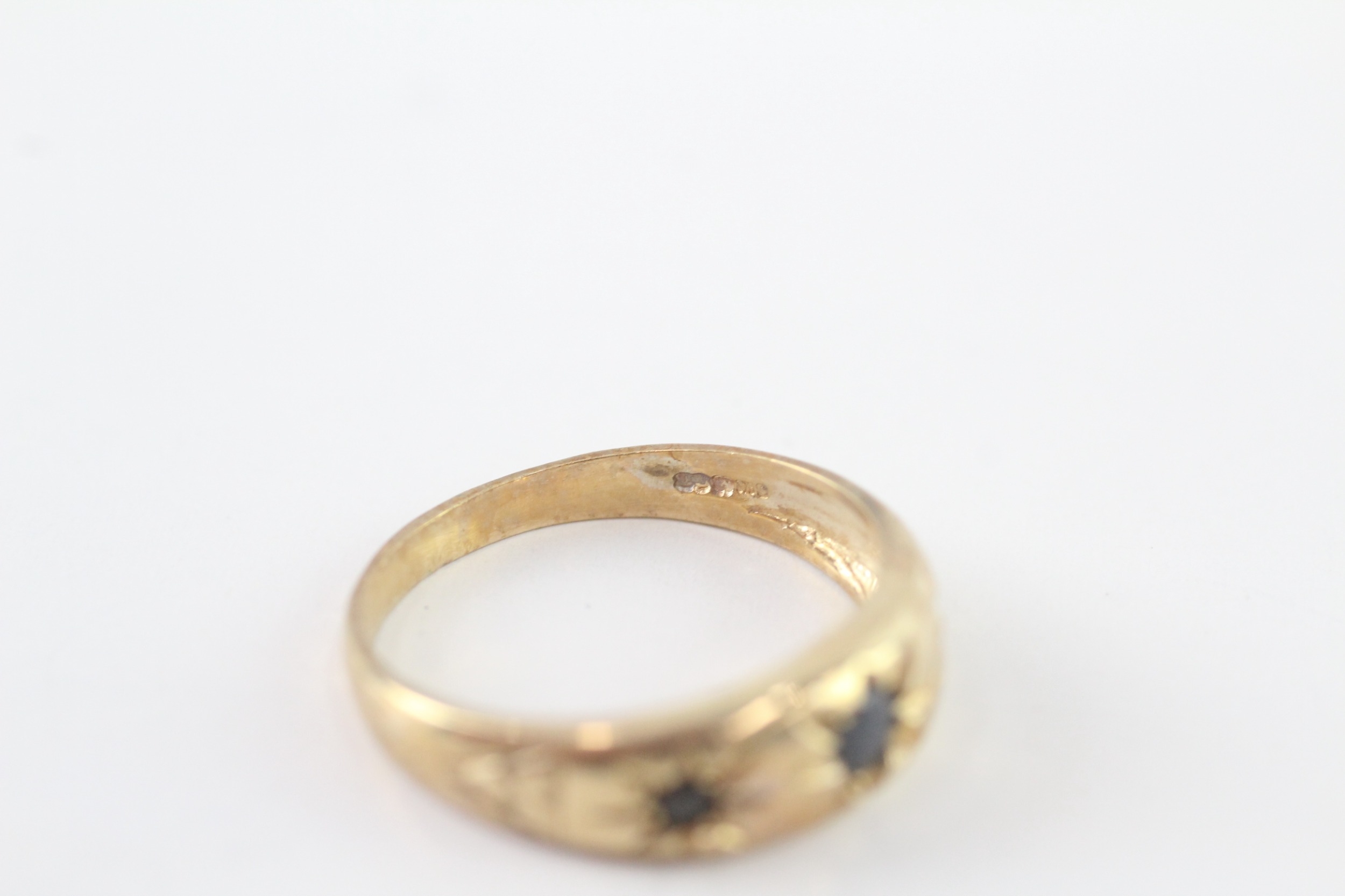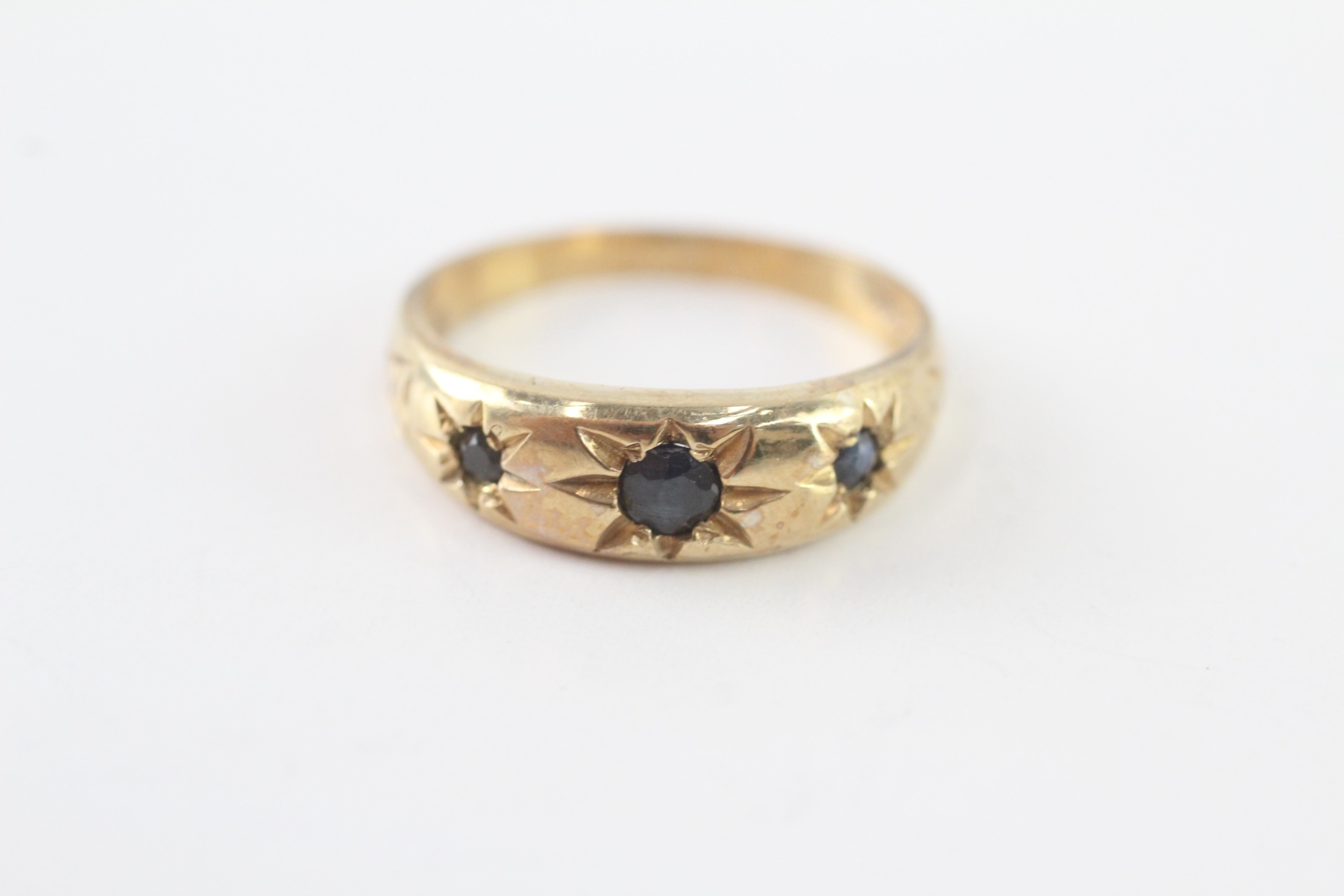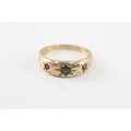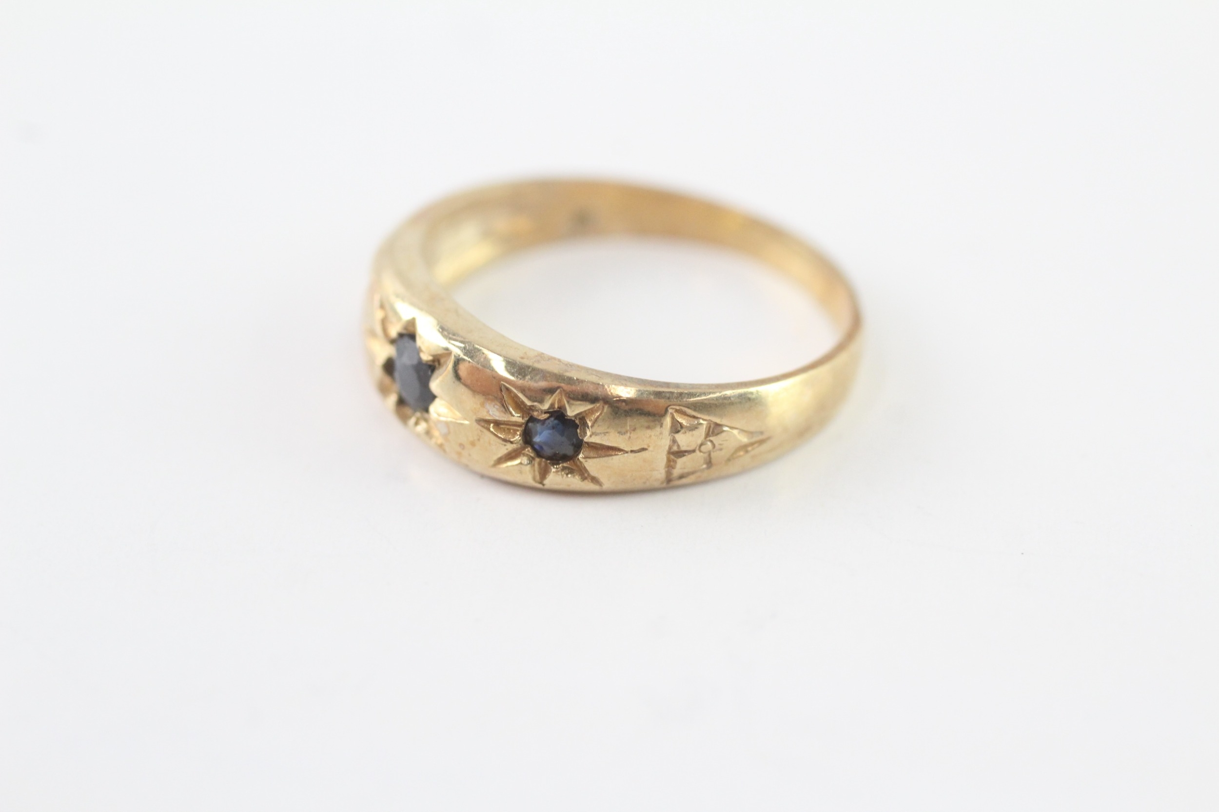 9ct gold sapphire three stone ring (2.8g) Size P