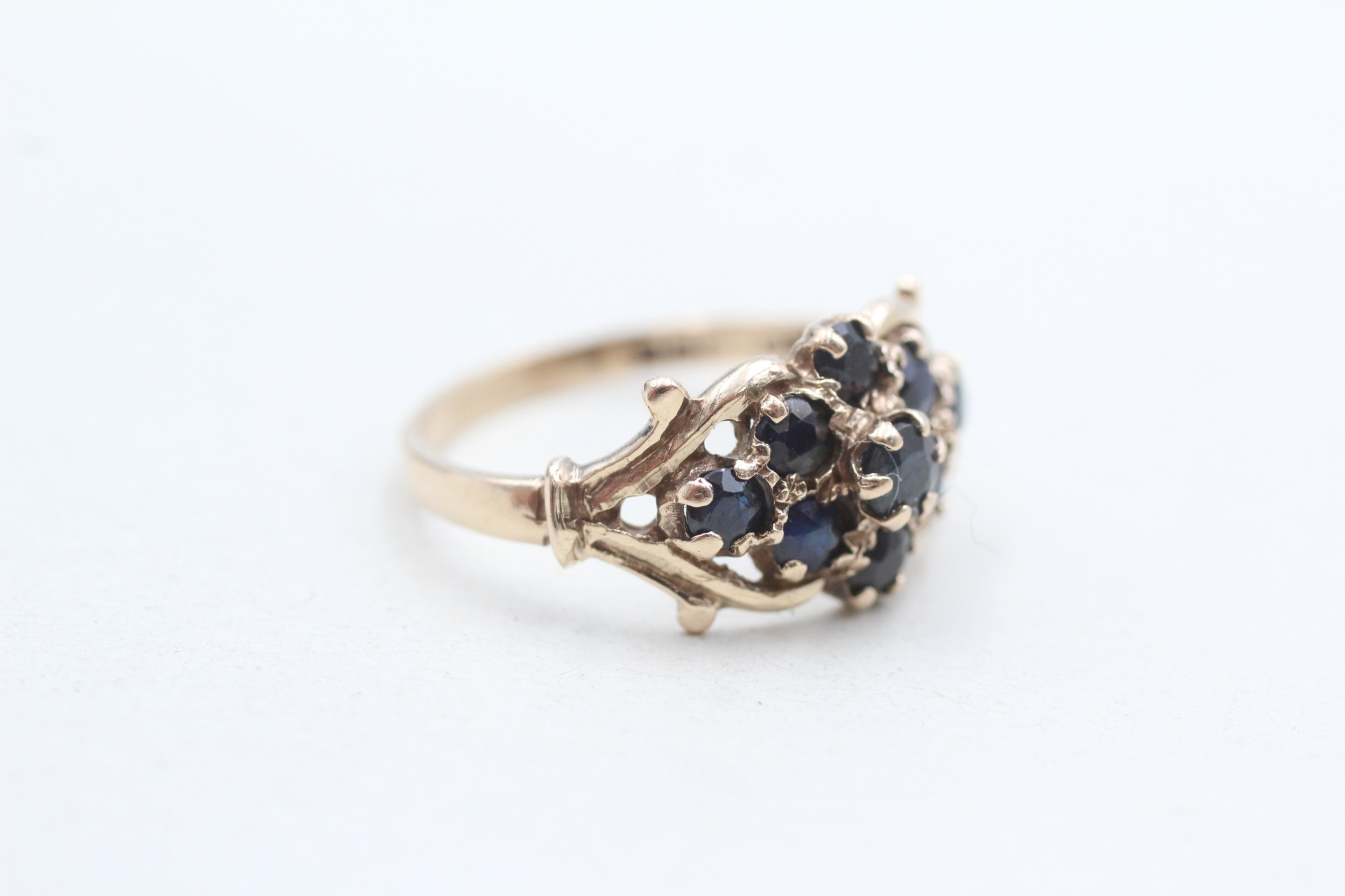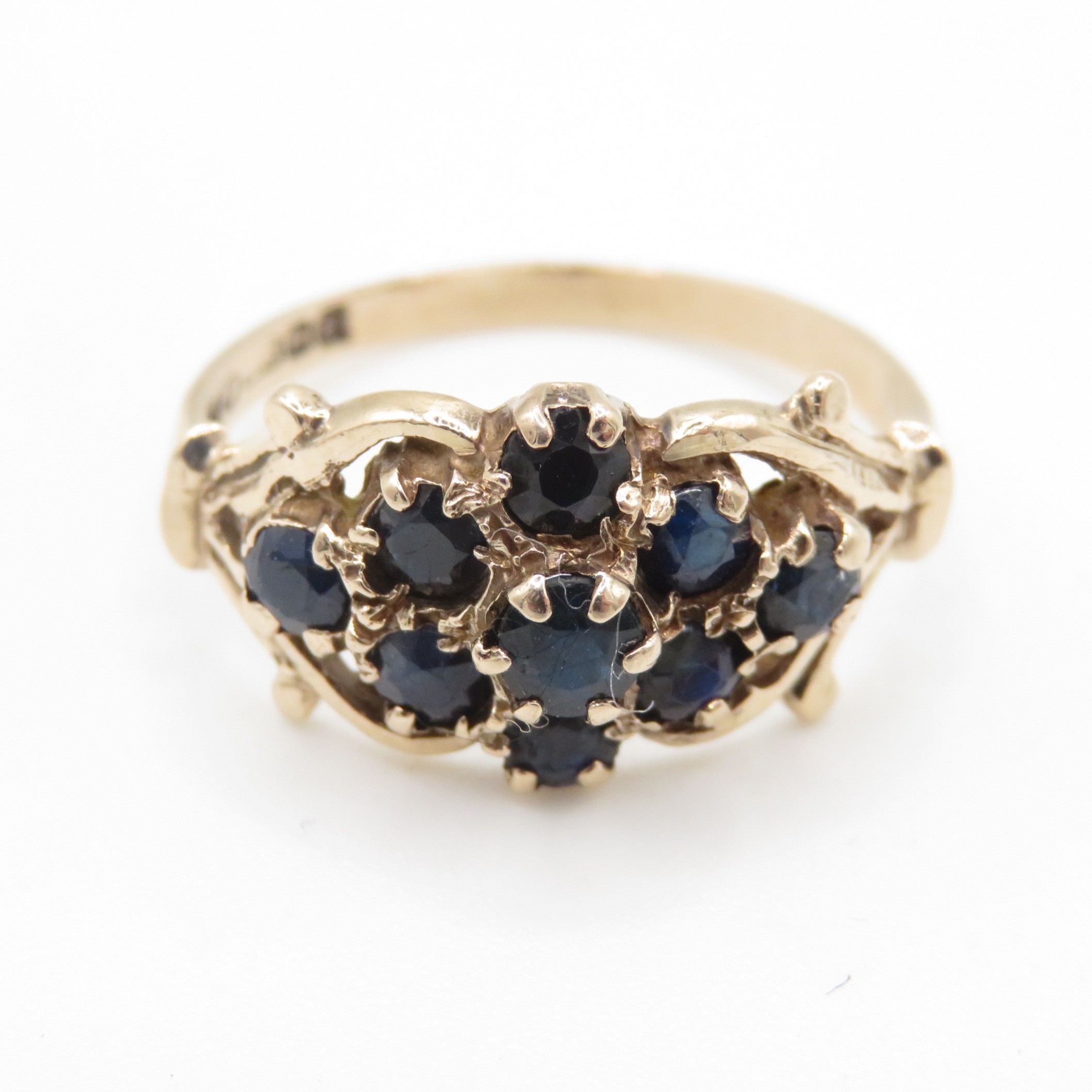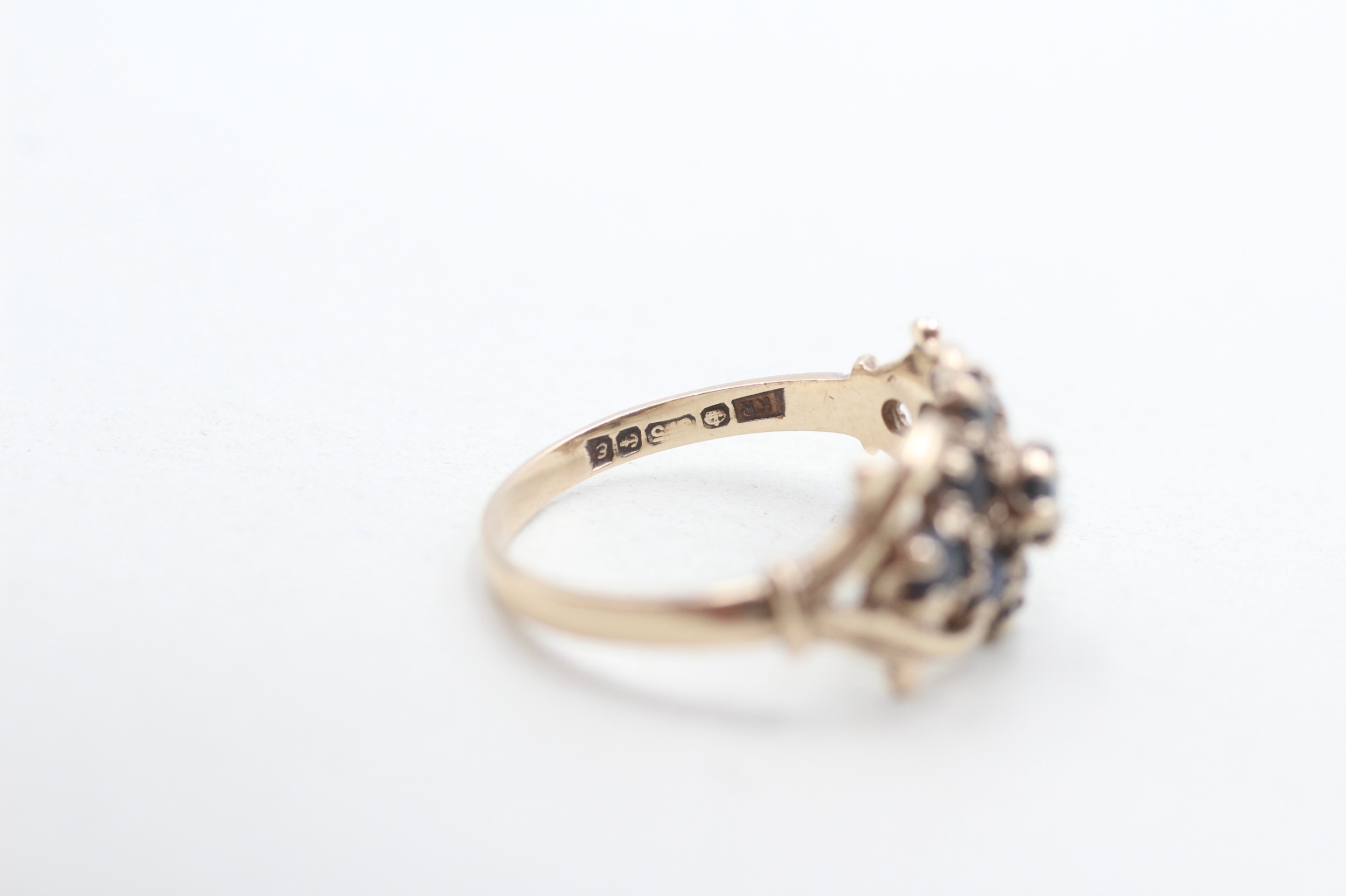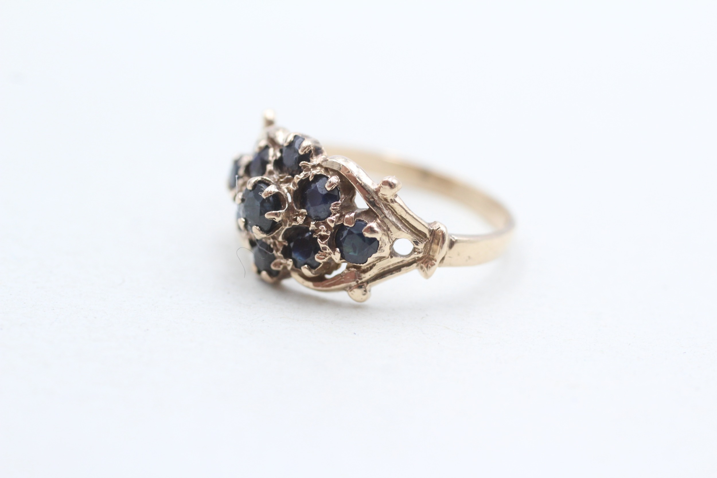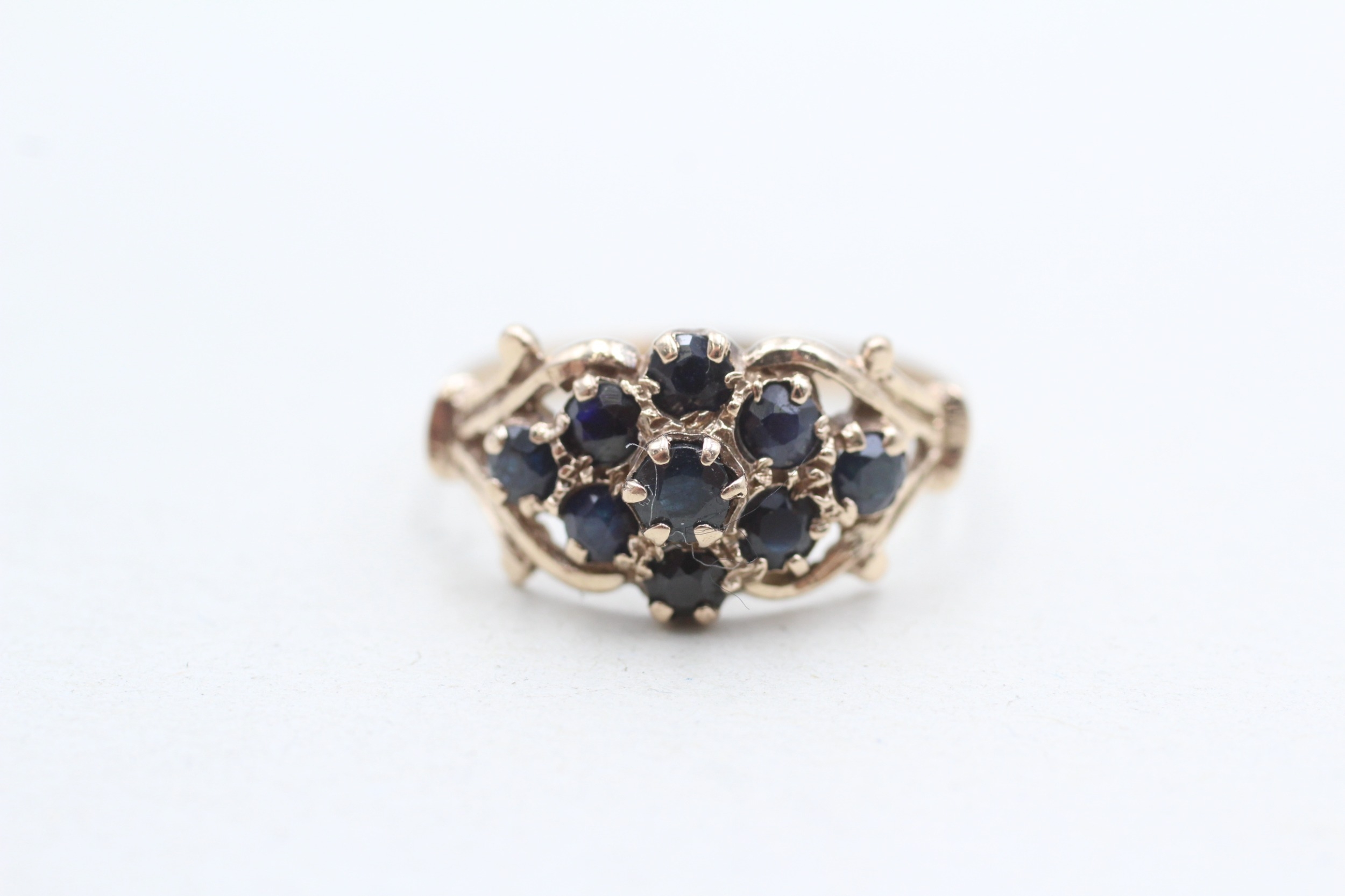 9ct gold sapphire cluster ring (2.1g) Size M