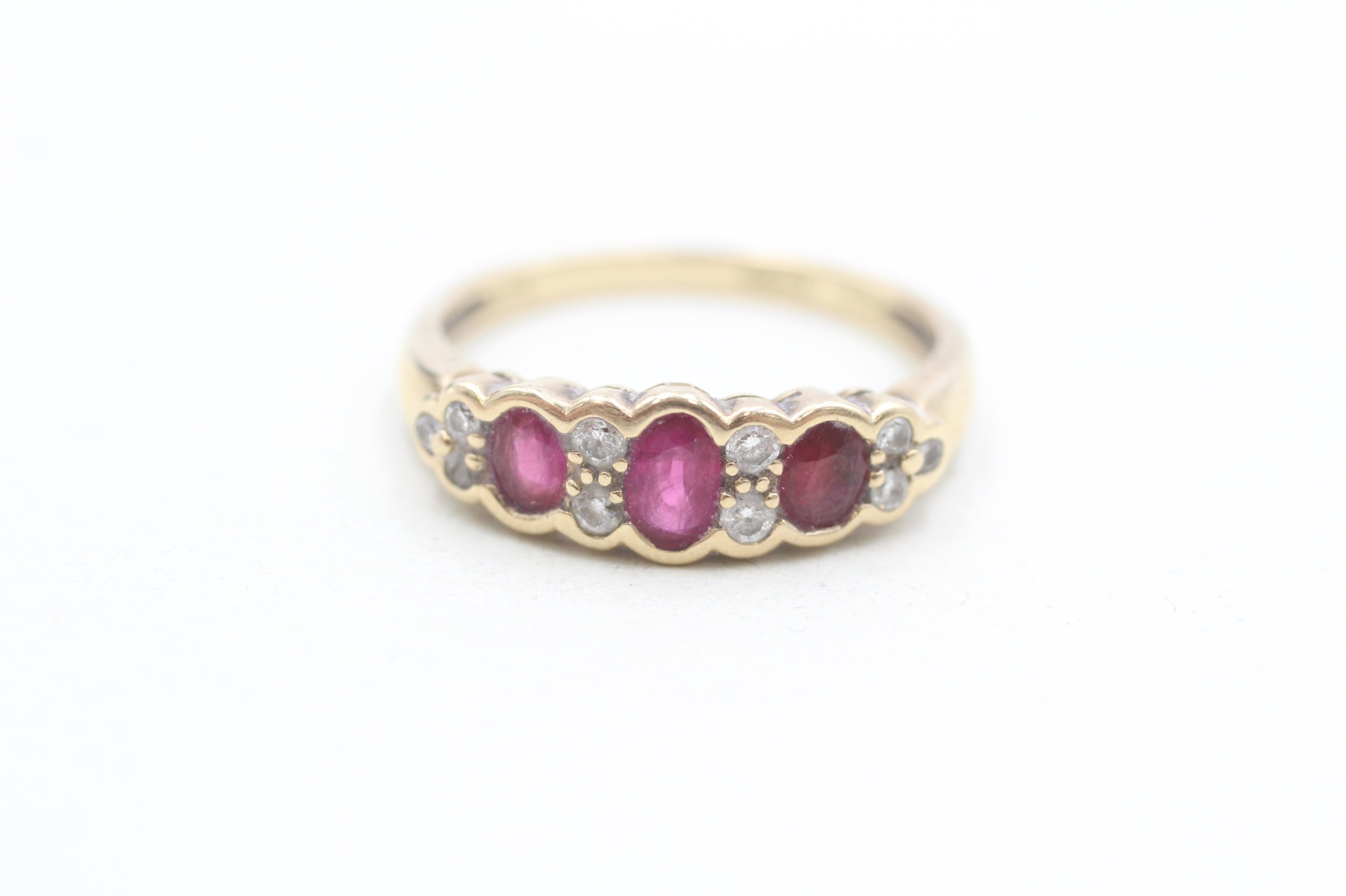 9ct gold ruby and diamond dress ring (2.4g) Size P