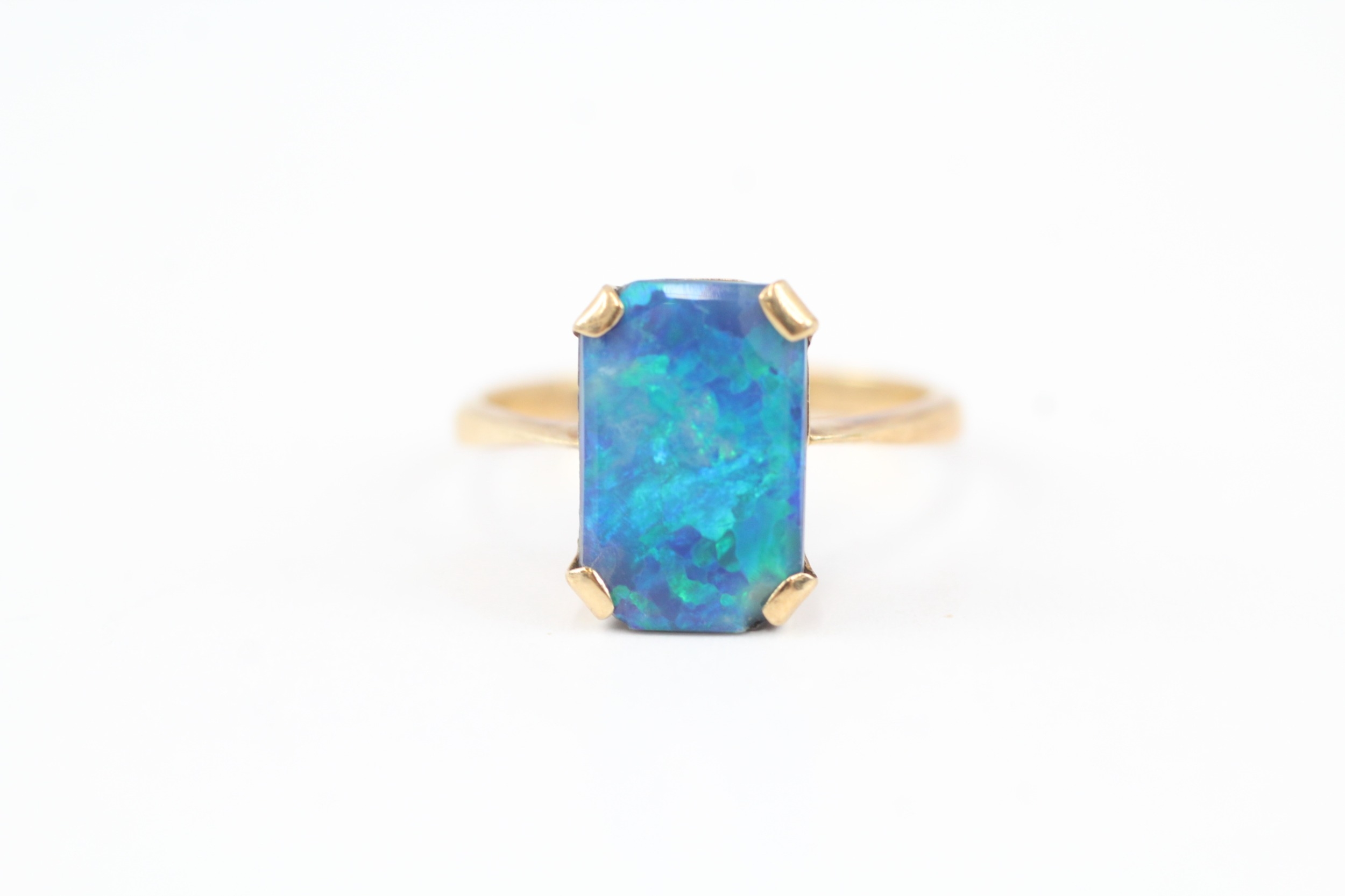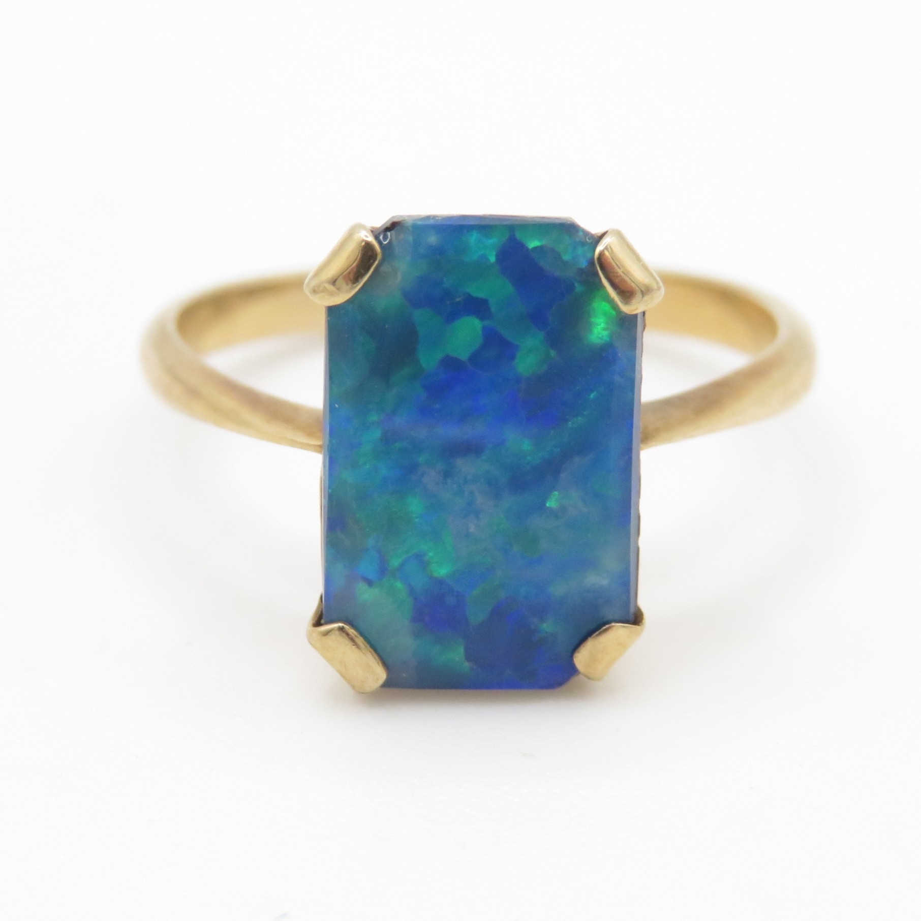 9ct gold vintage opal doublet dress ring (1.7g) Size K