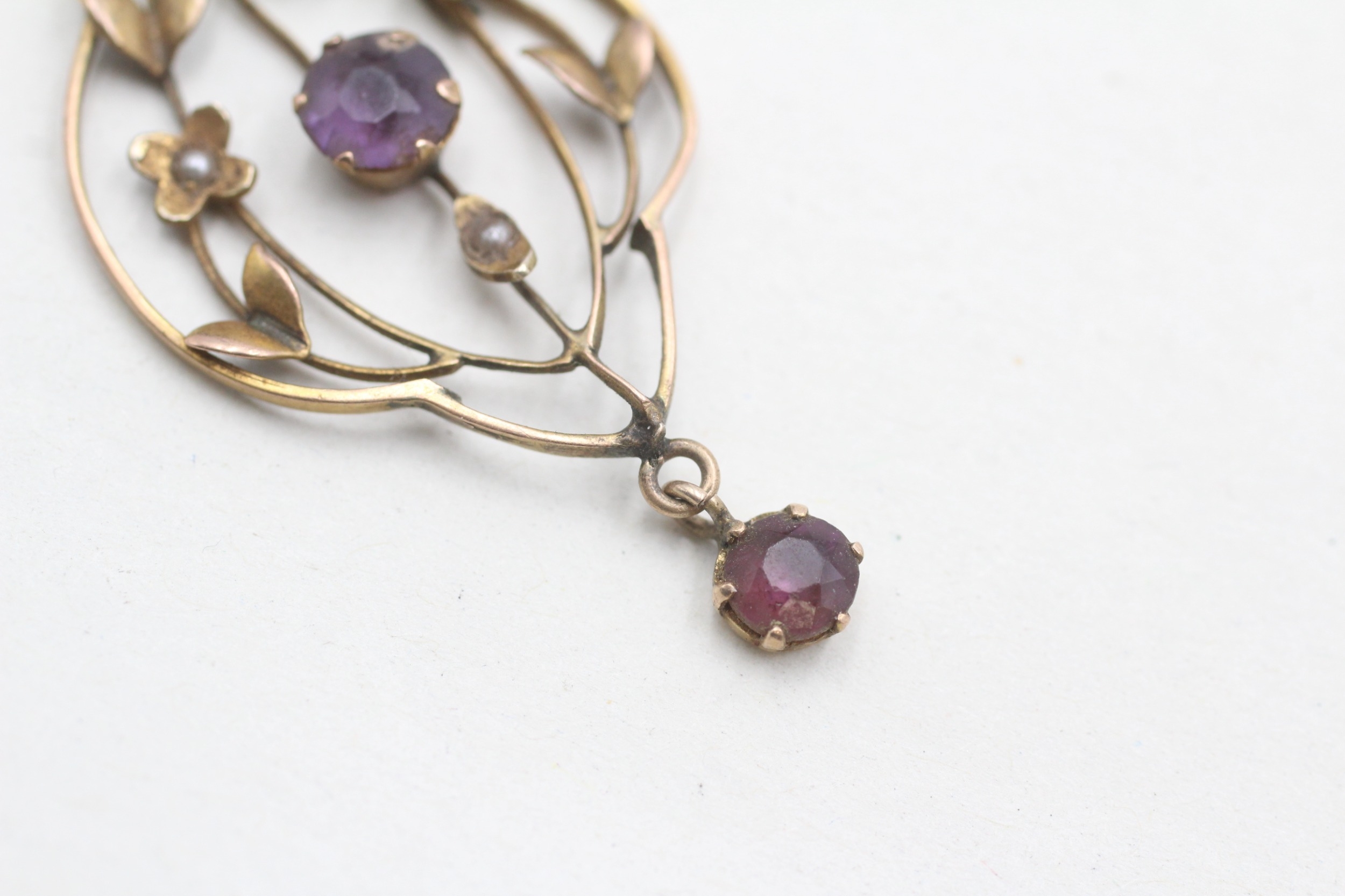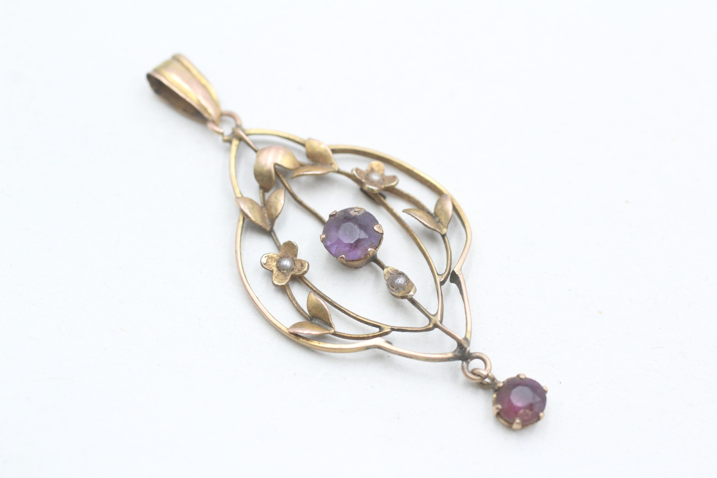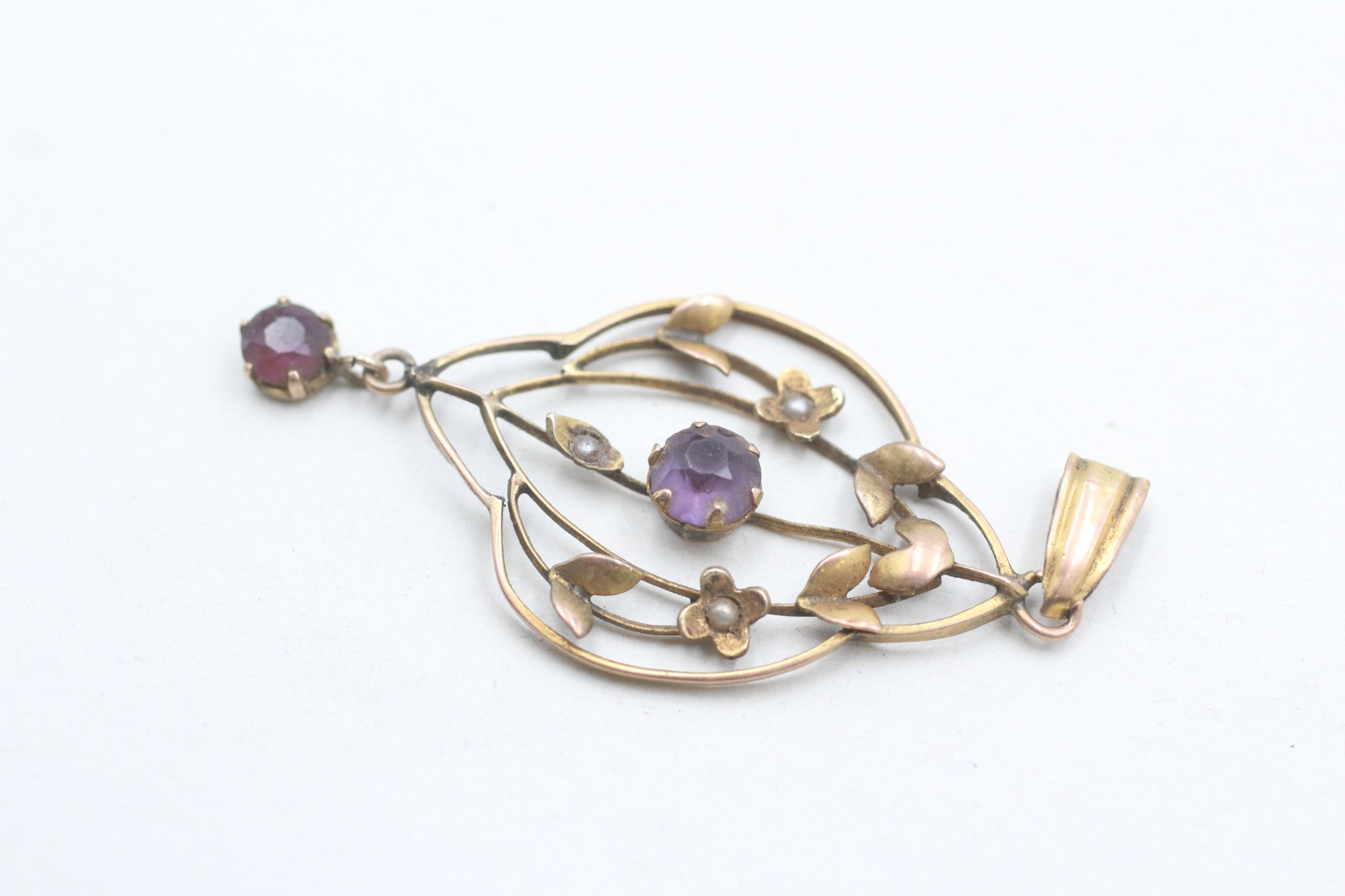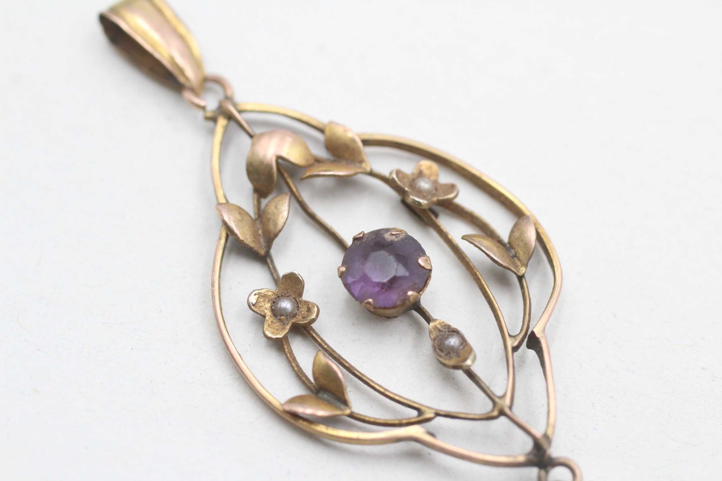 9ct gold Edwardian amethyst & seed pearl pendant (1.8g)
