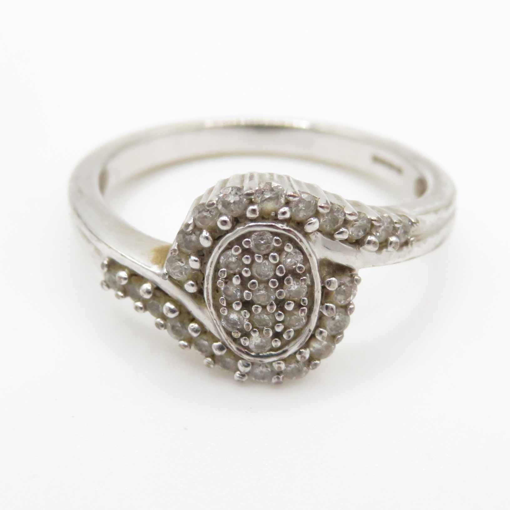 9ct white gold diamond cluster dress ring (2.9g) Size O